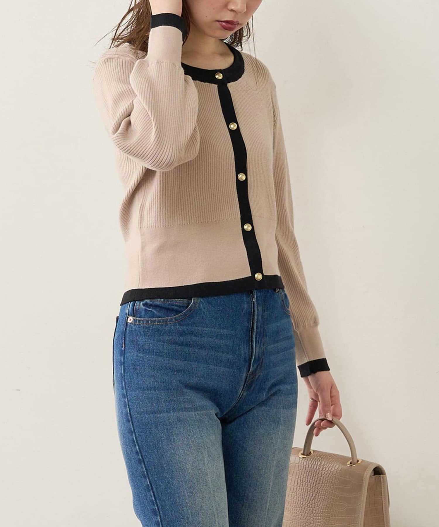 TOP > NICE CLAUP / OLIVE des OLIVE OUTLET > レディース > トップス > カーディガン/ボレロ > 【natural couture】バイカラーレトロショートカーデ
