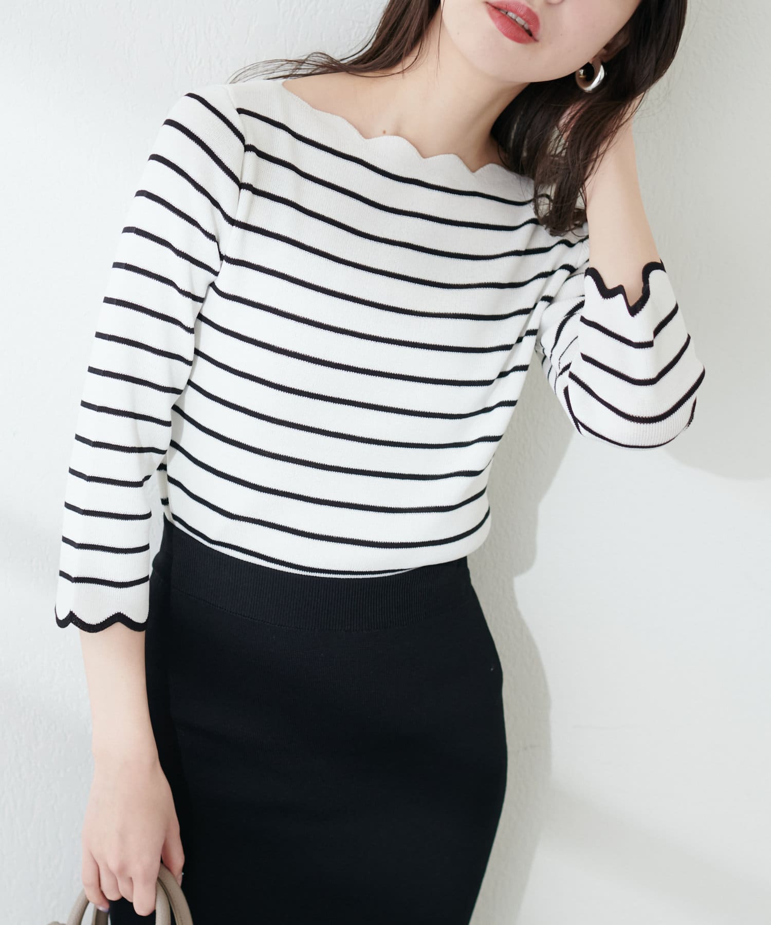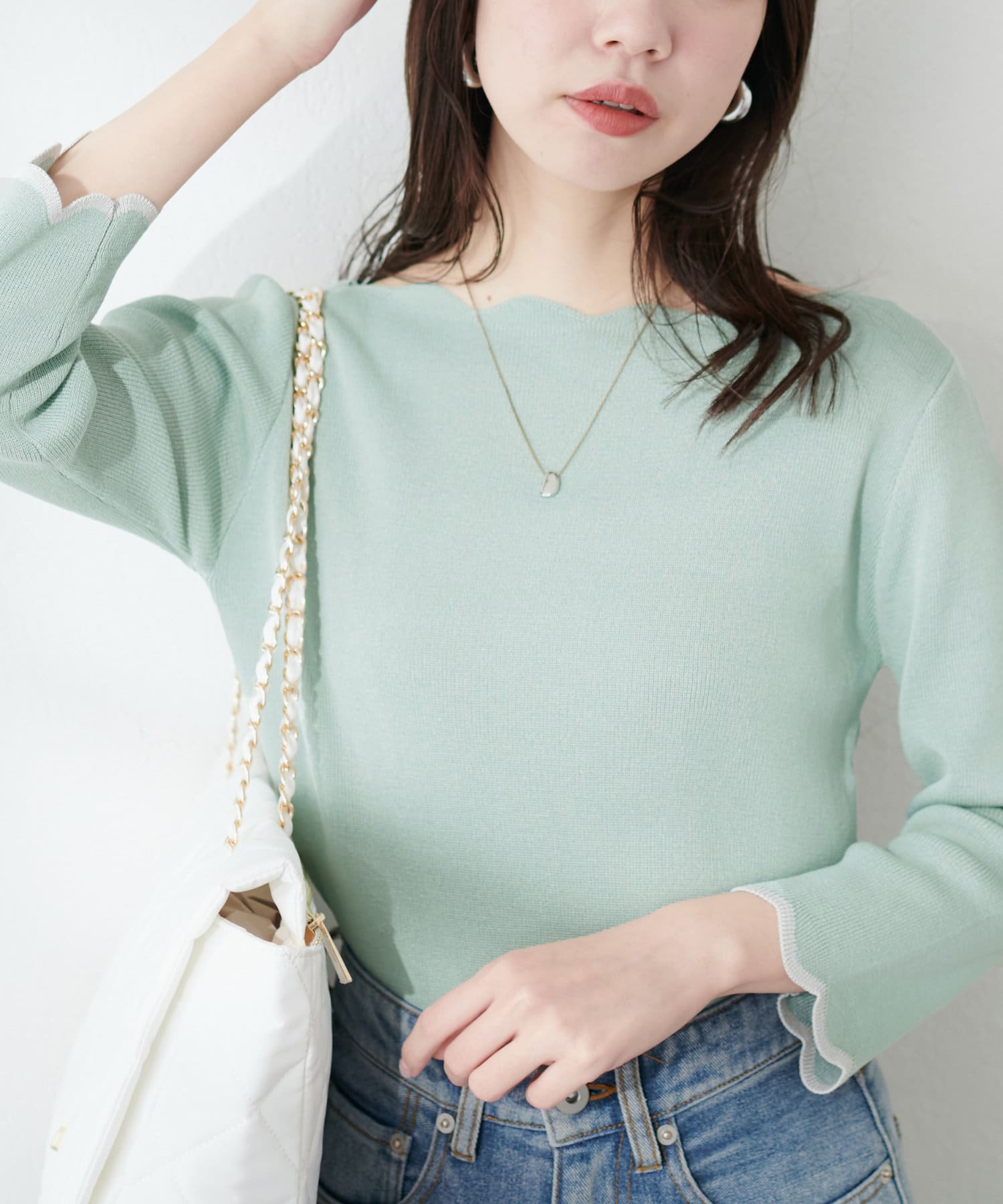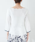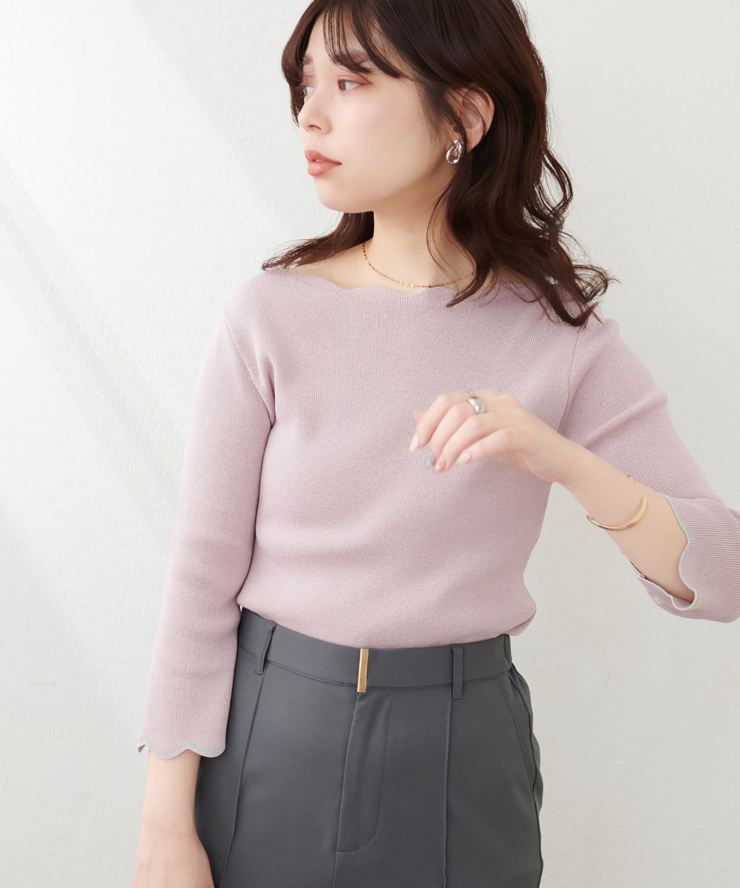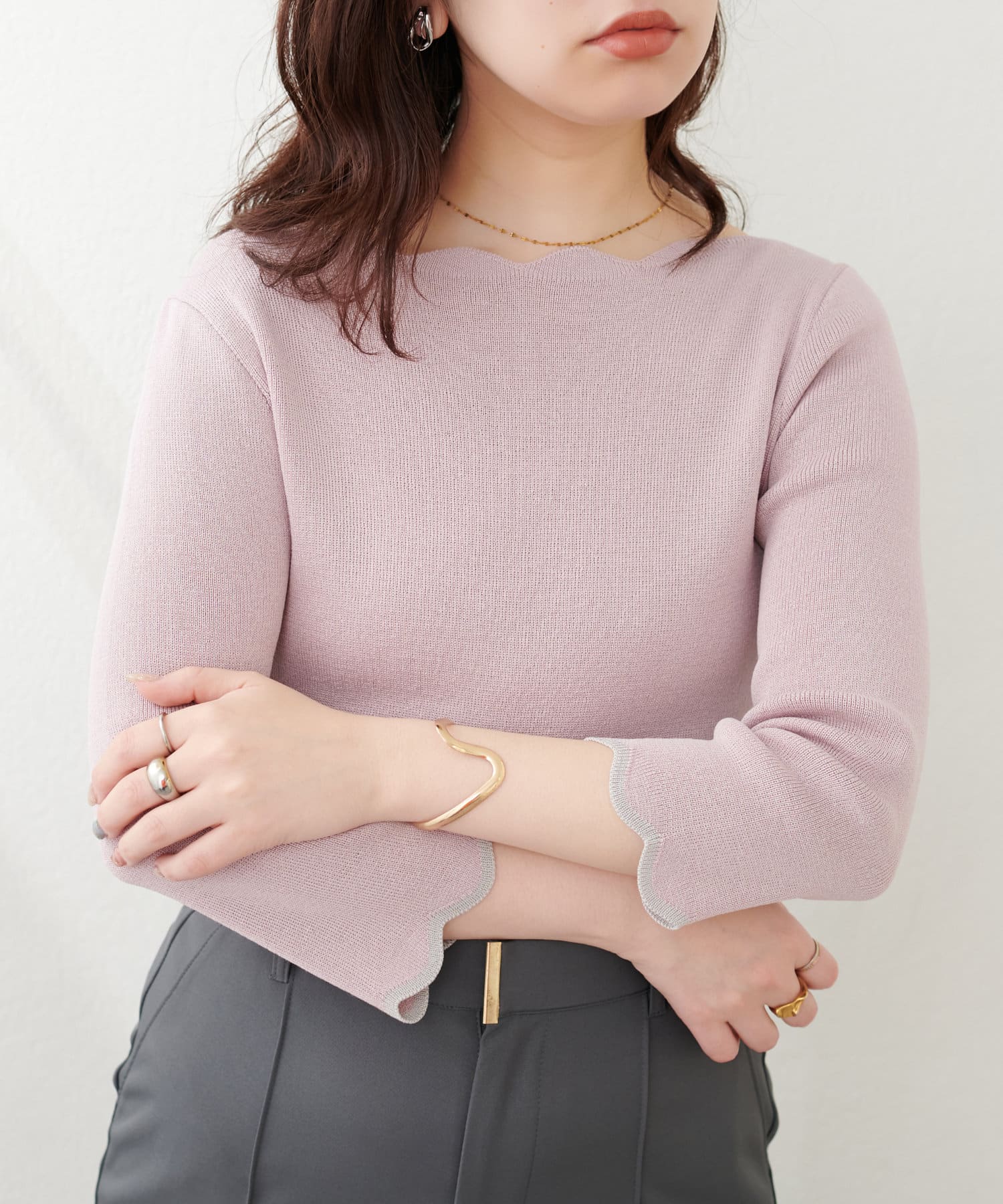 首元、袖口はスカラップデザインを採用しているのでデコルテラインをキレイに見せてくれ、
