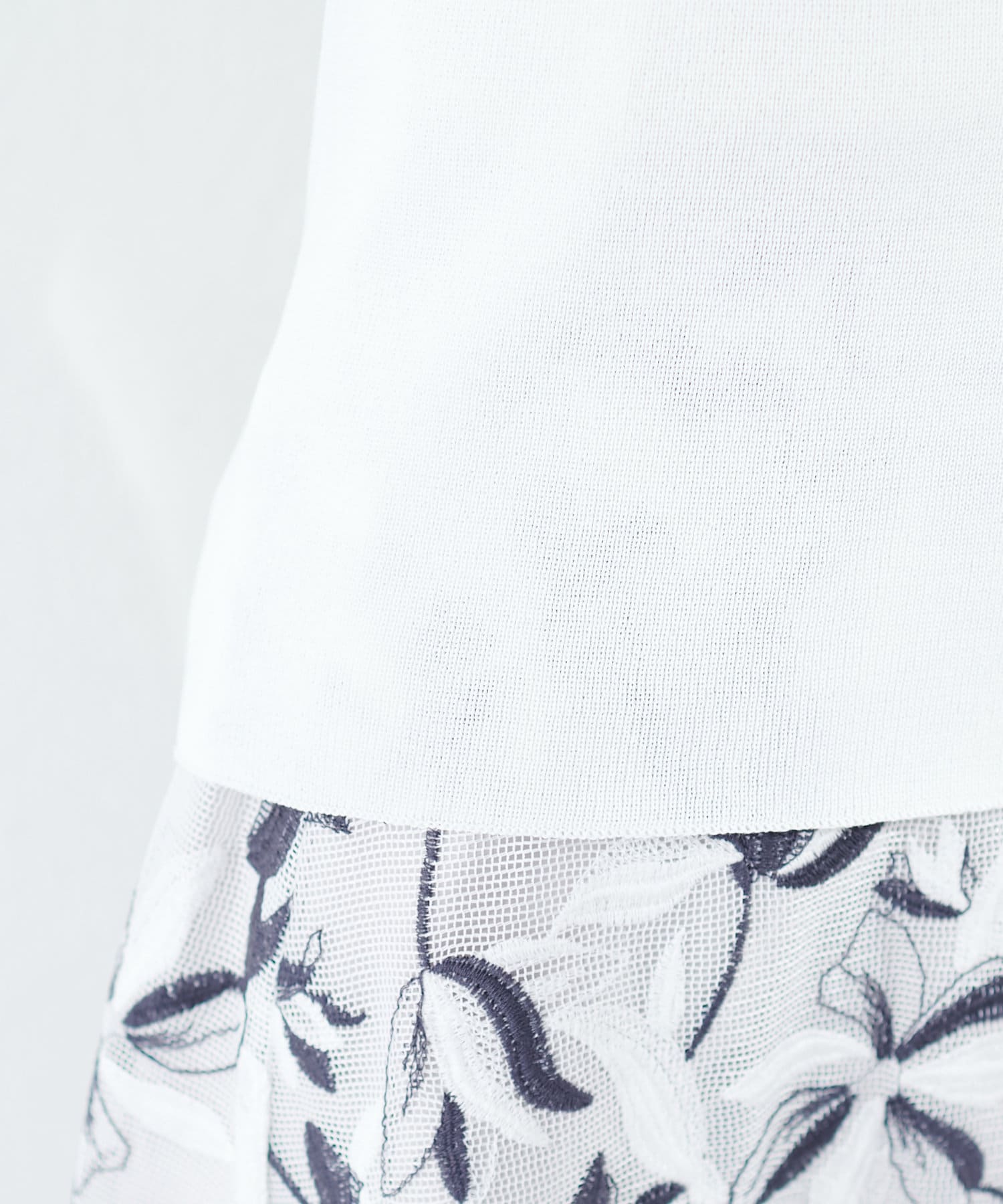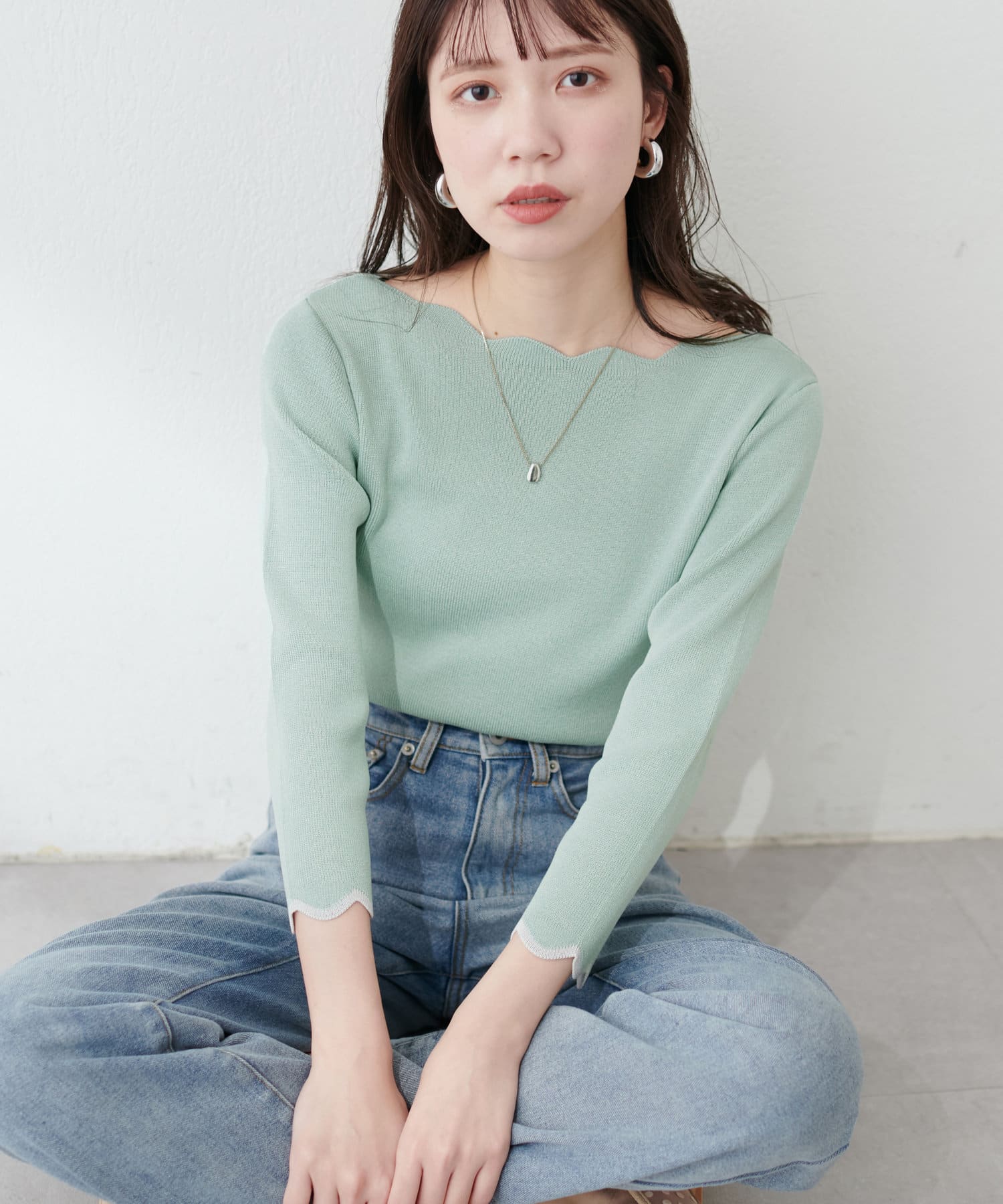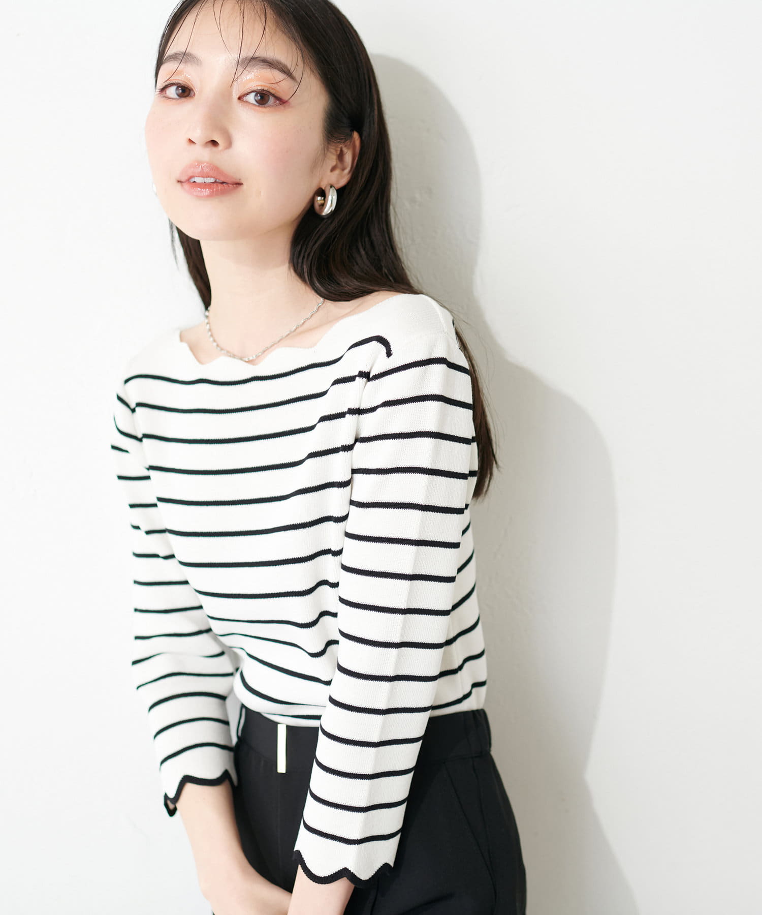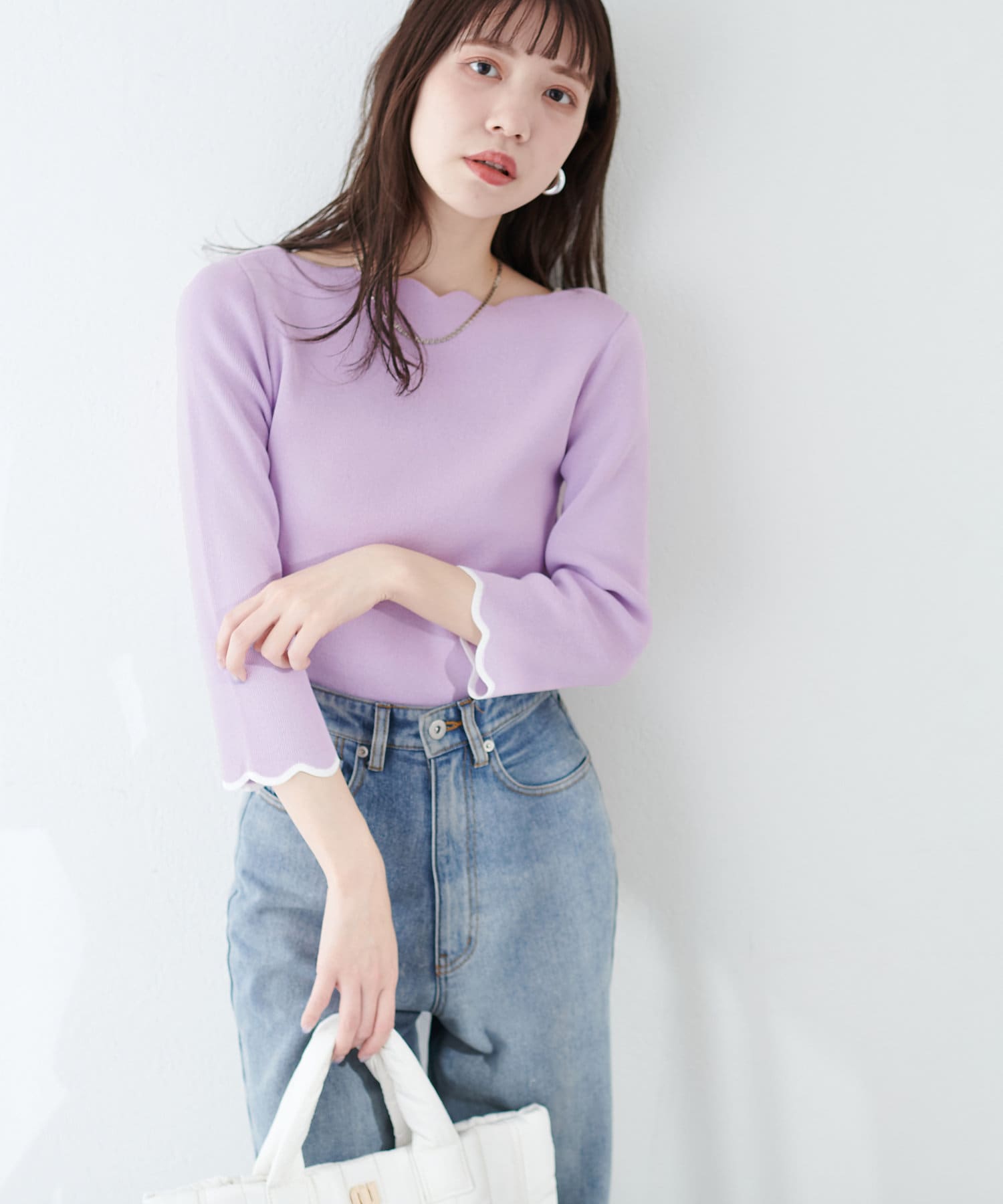 首元、袖口はスカラップデザインを採用しているのでデコルテラインをキレイに見せてくれ、