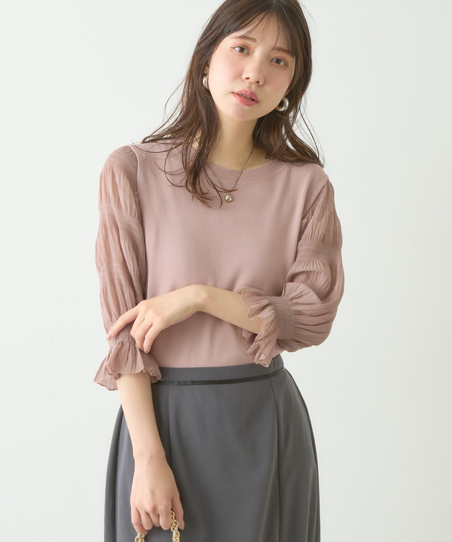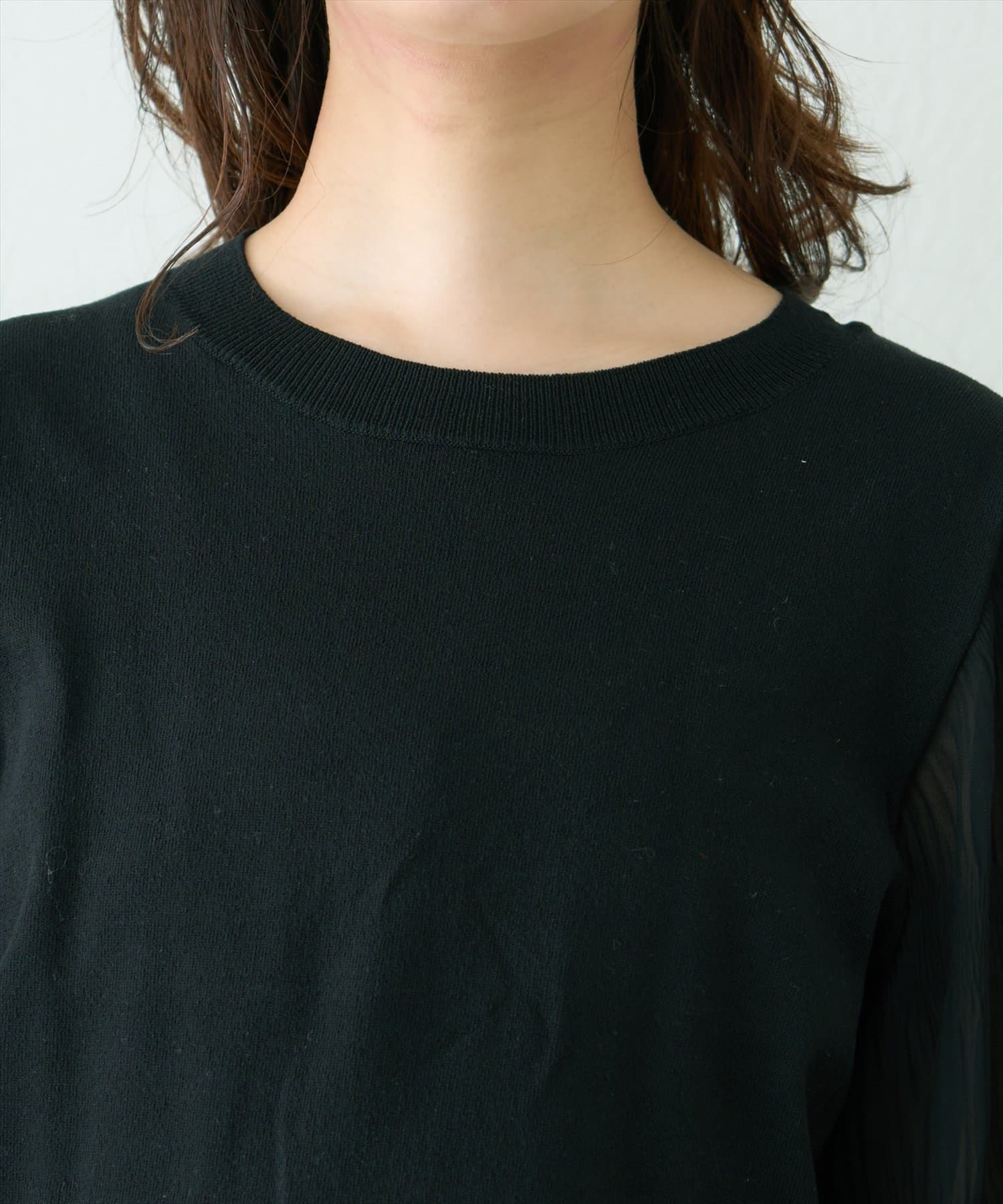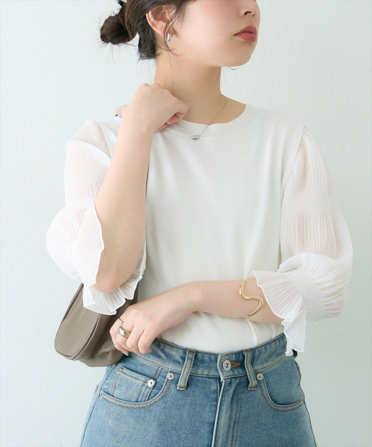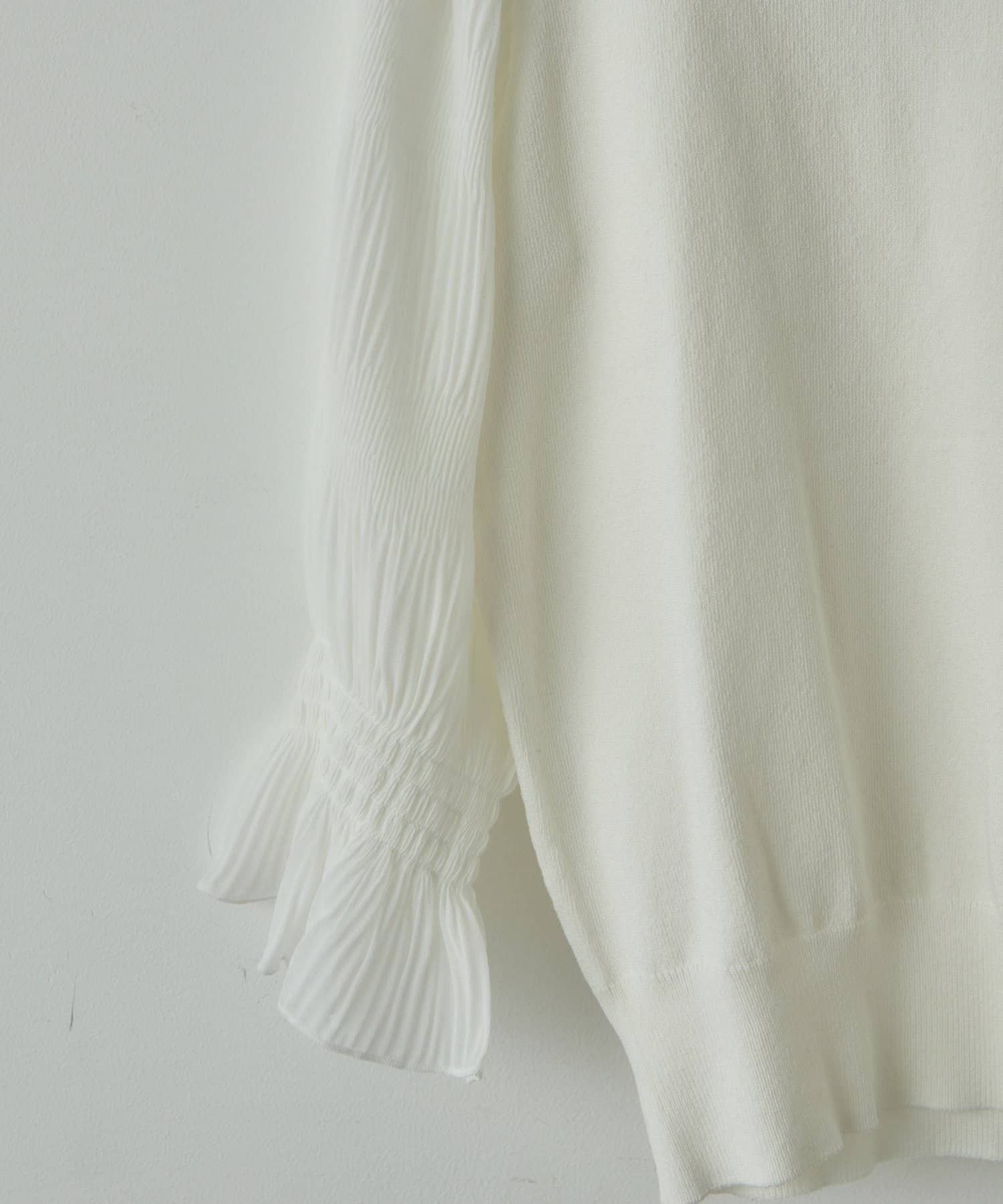 さらっとした着心地の良いニット地を採用し、袖部分をマジョリカプリーツにすることで