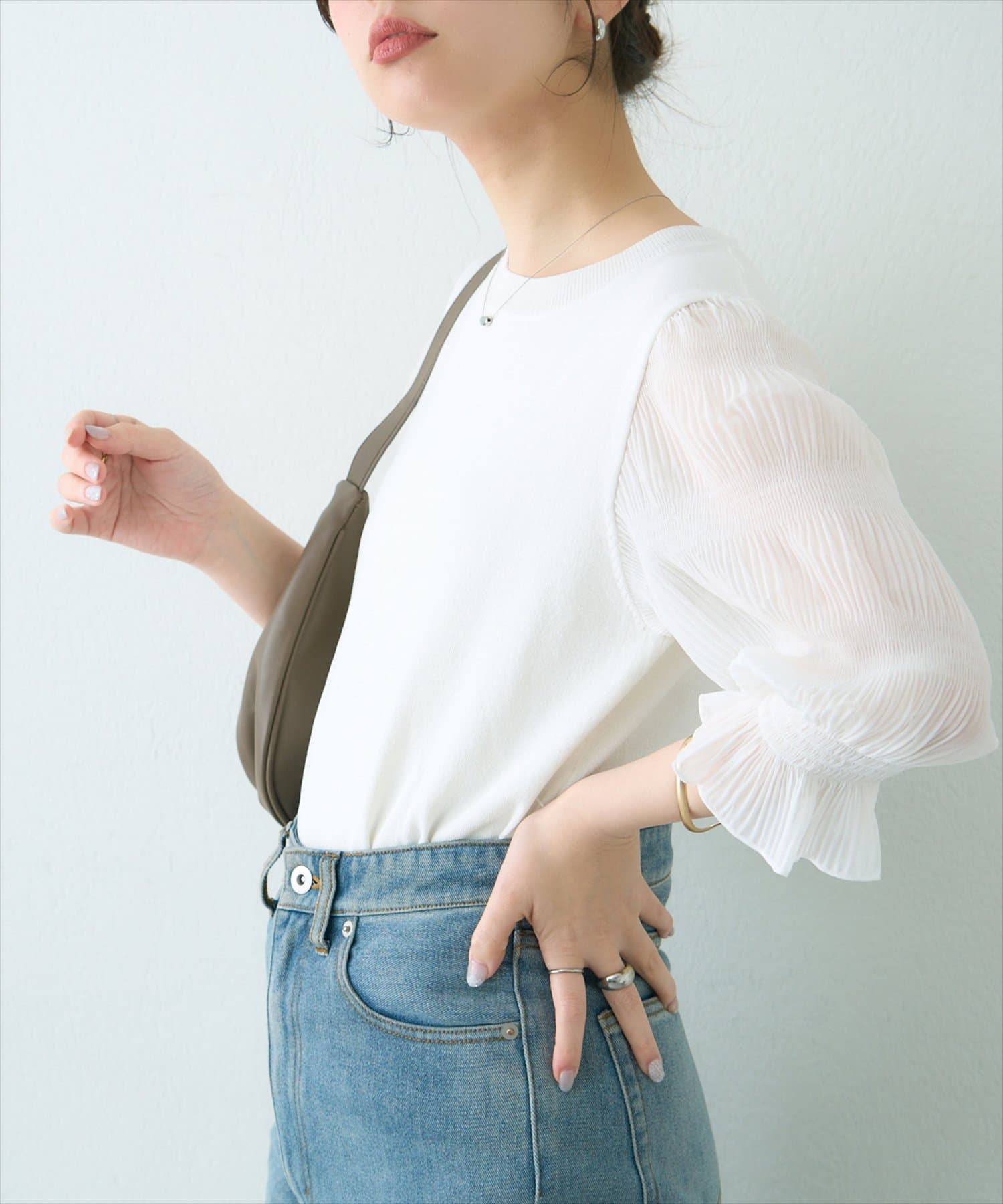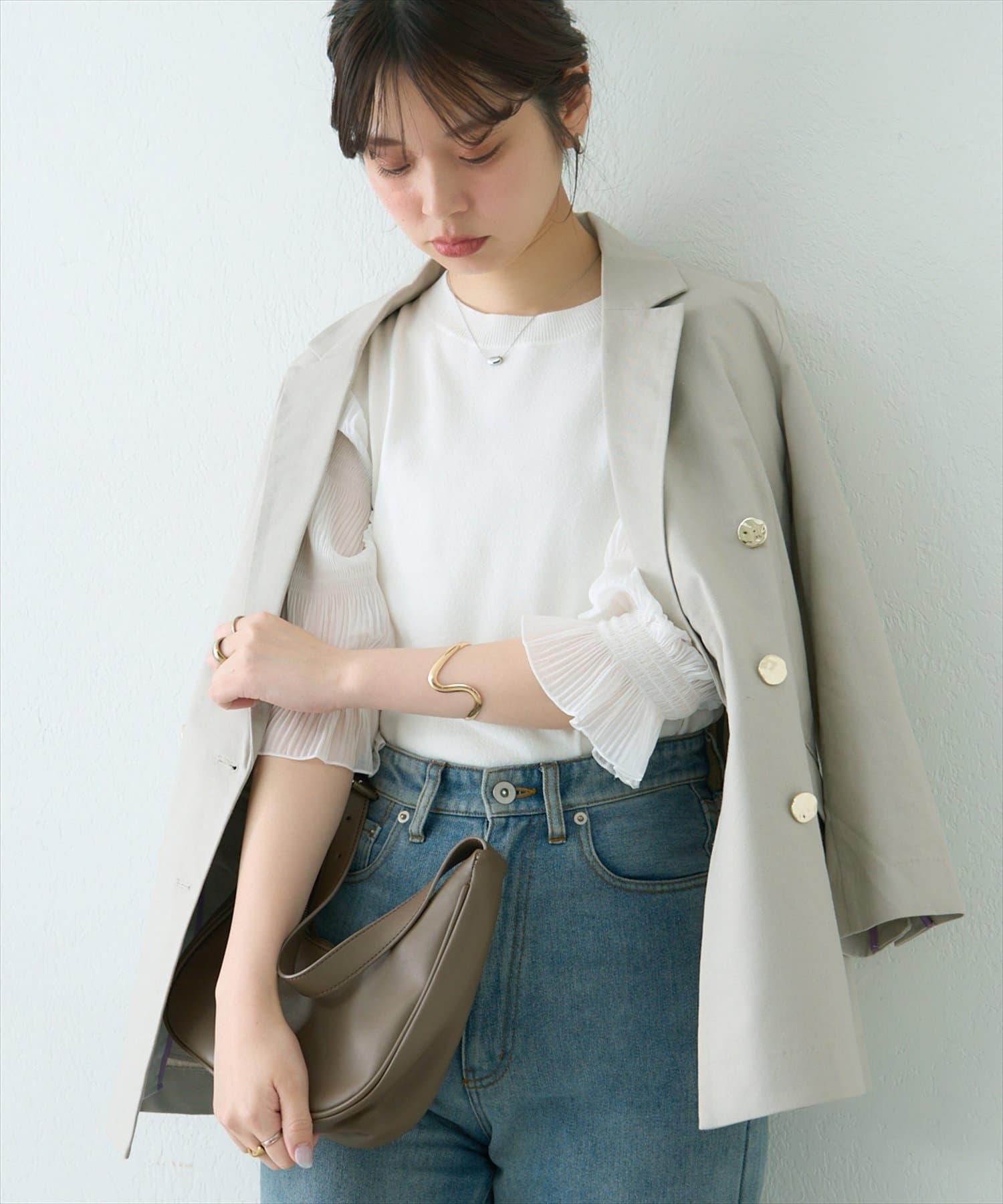 袖のディテールでポイントを効かせた、こだわりの1着。