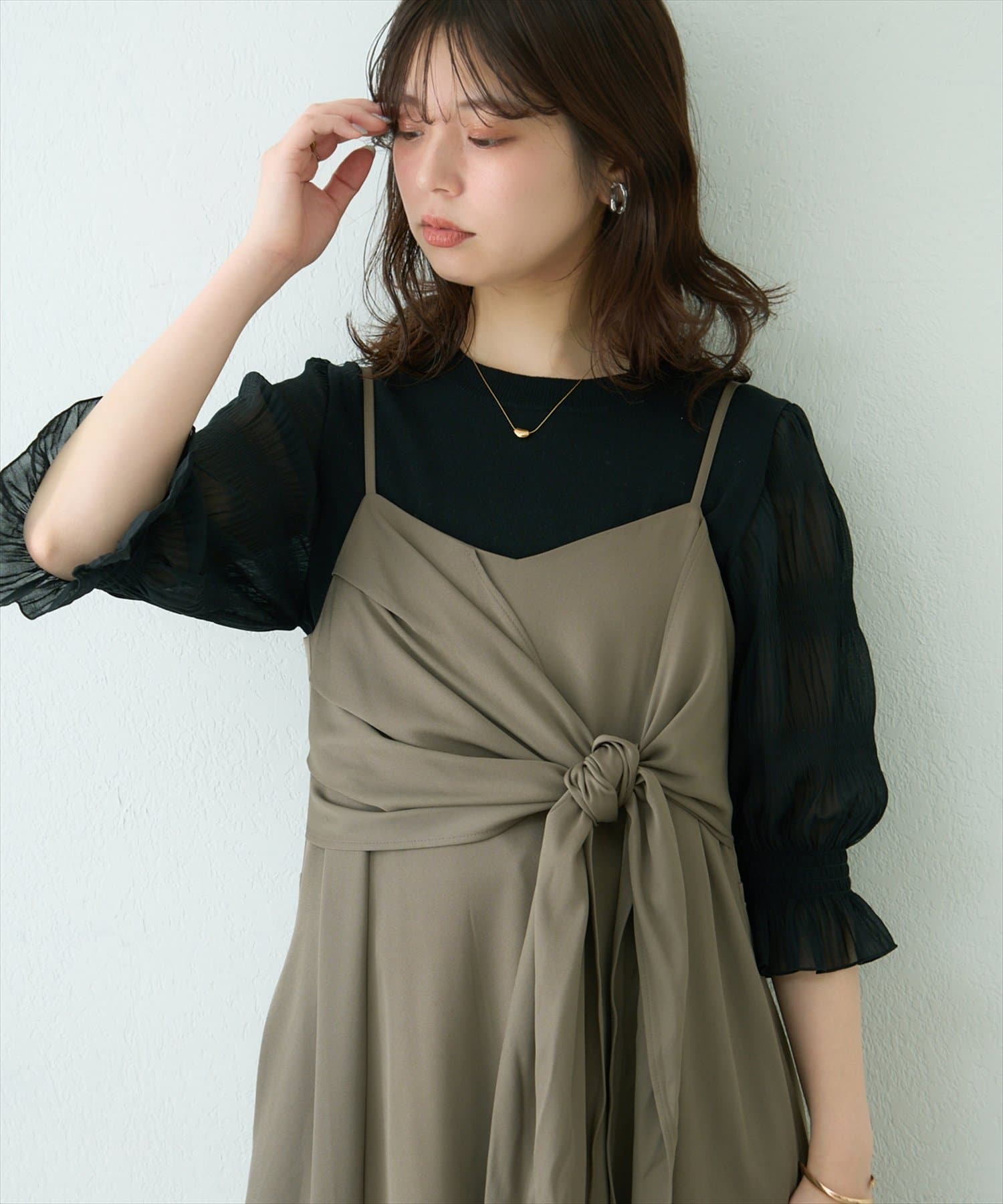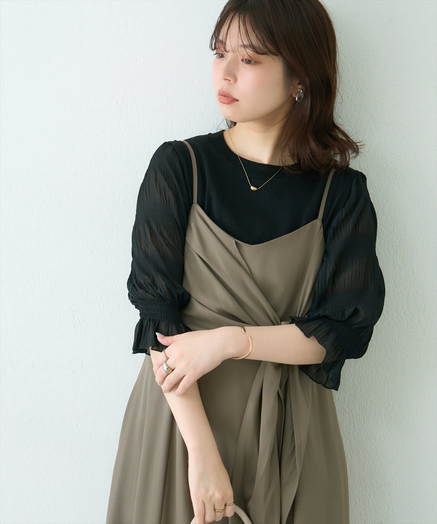 お好みでキャミワンピースやサロペットのインナーとして、袖のディテールをポイント見せしても◎