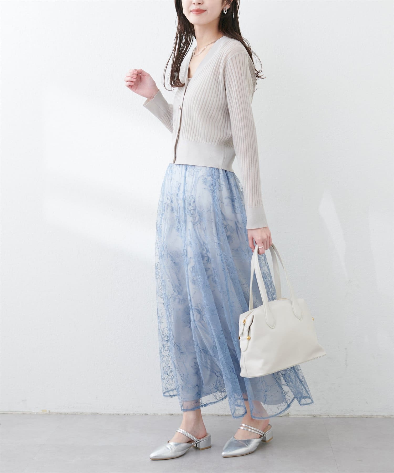 レディなフレアスカートはもちろん、シンプルなデニム合わせも華やかにきまります。