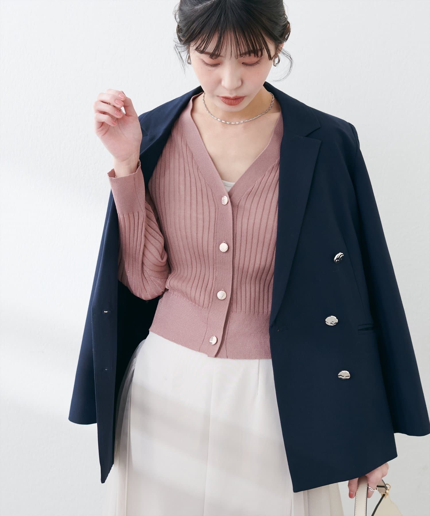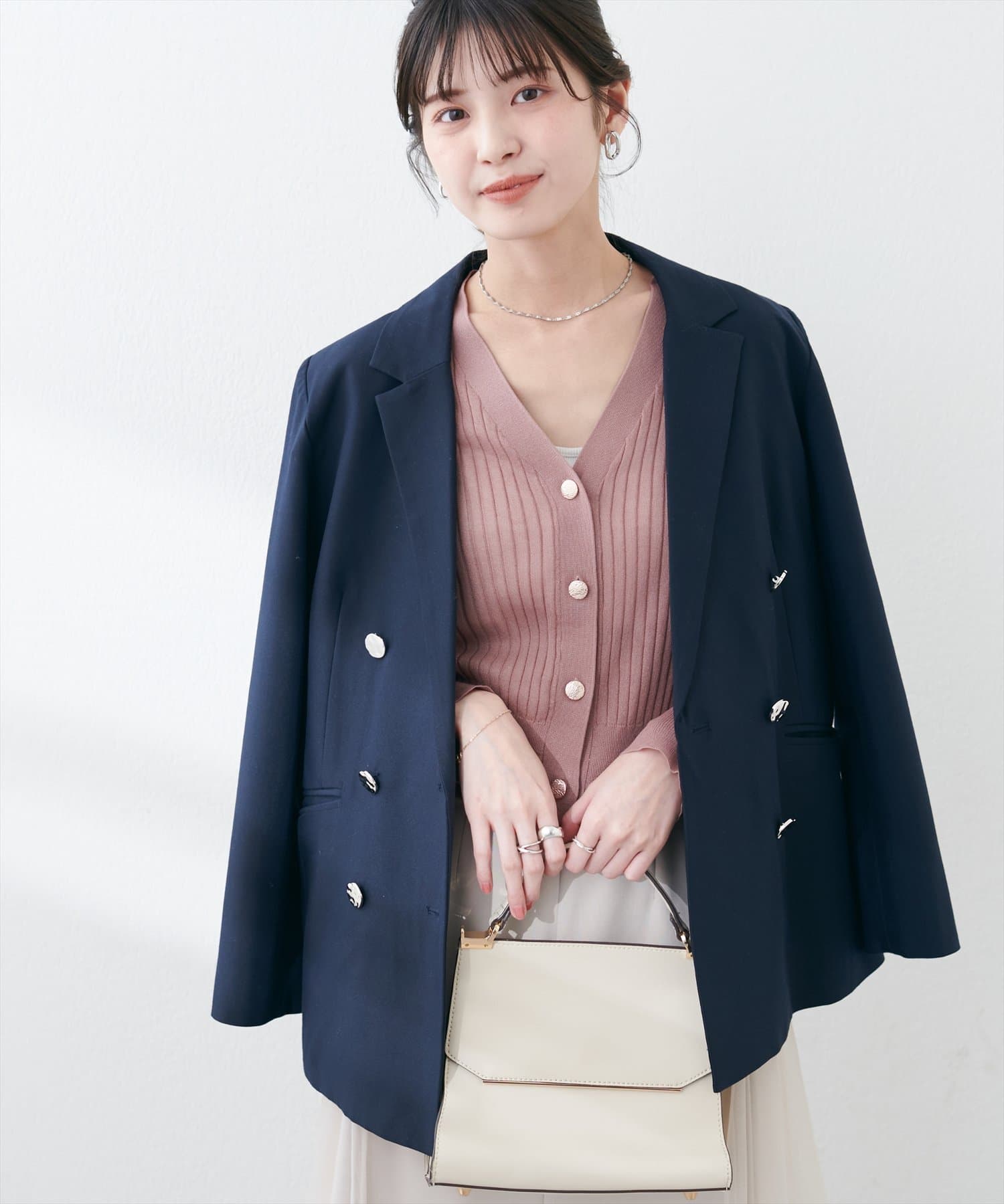 羽織としてはもちろん、釦を留めてショートトップスとしてお召し頂くとこなれ感のあるスタイリングが完成します。