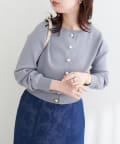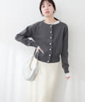 ころんとしたパール釦がコーデのポイントになるカーディガン。
