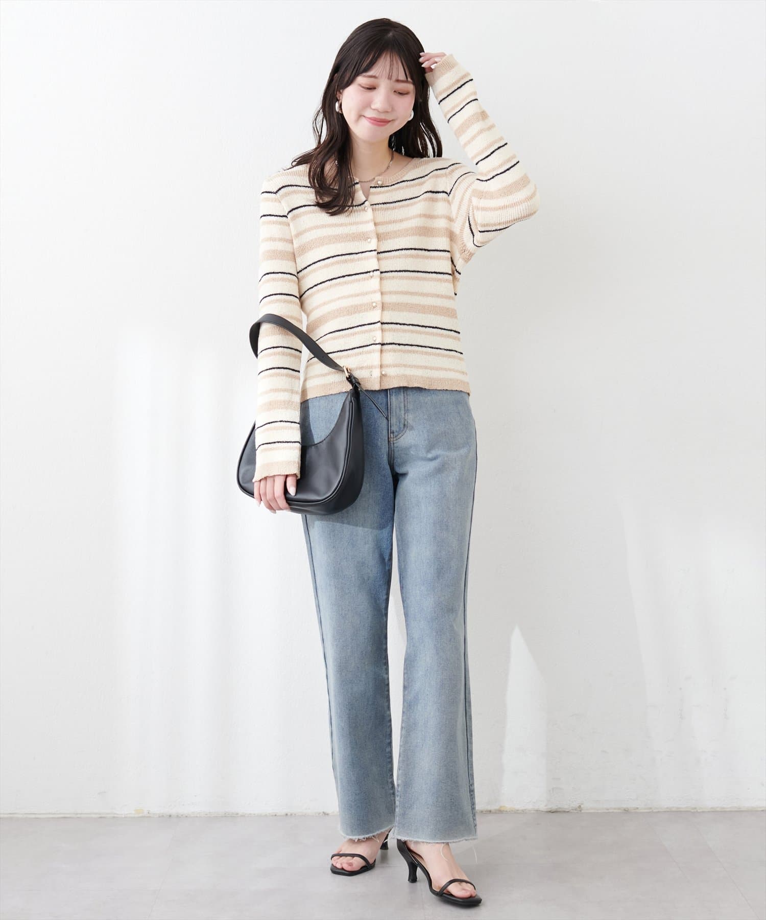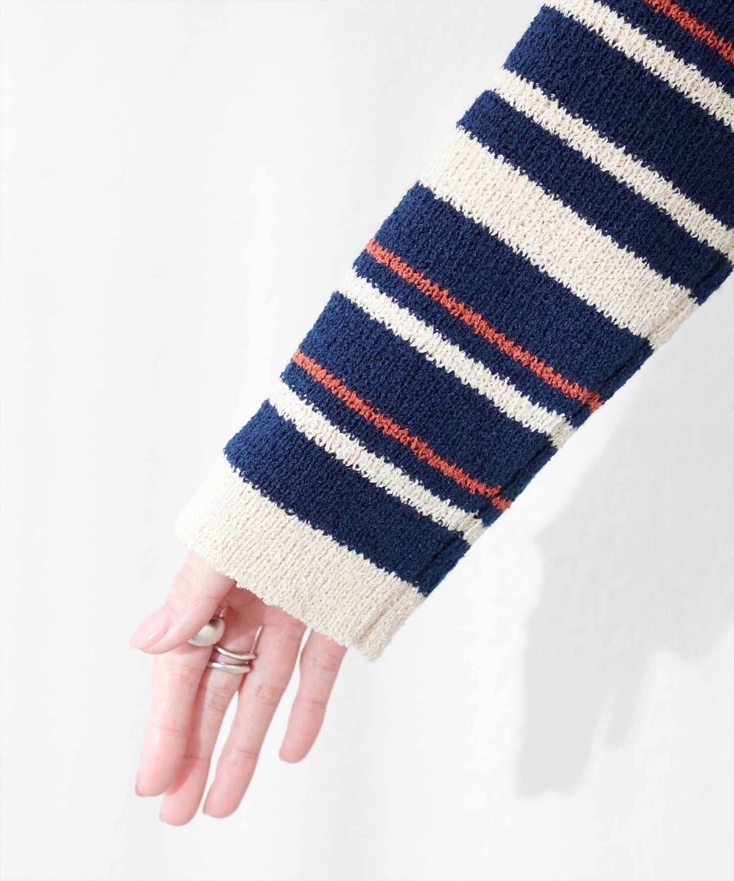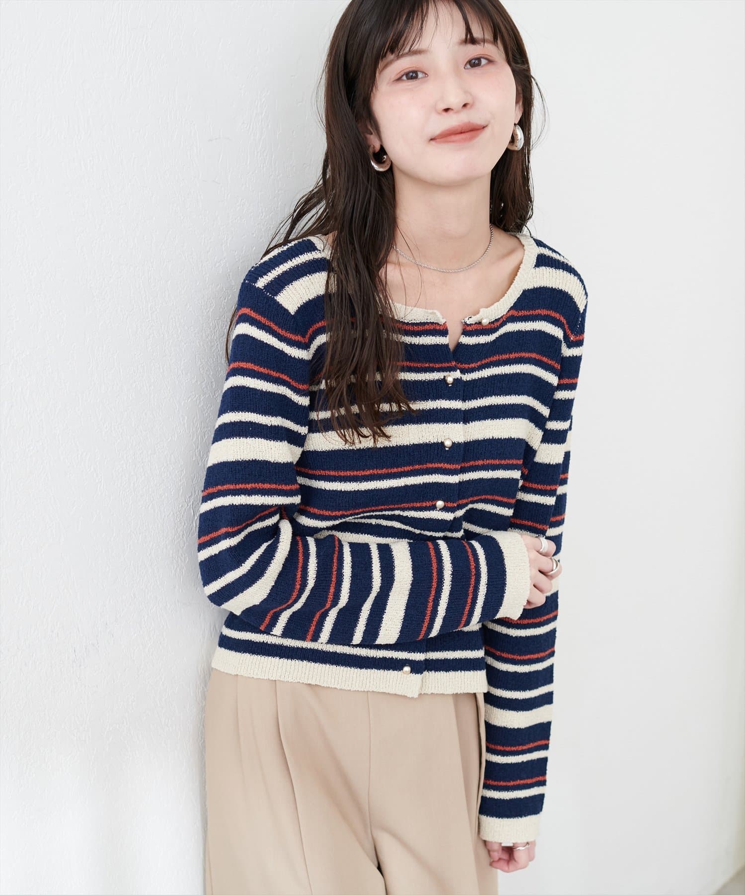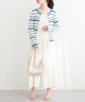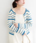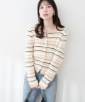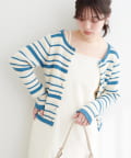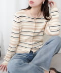 マルチボーダーが目を引くニットカーディガン。