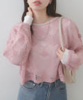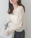 【WEB限定】シアーリーフ柄ニットプルオーバー