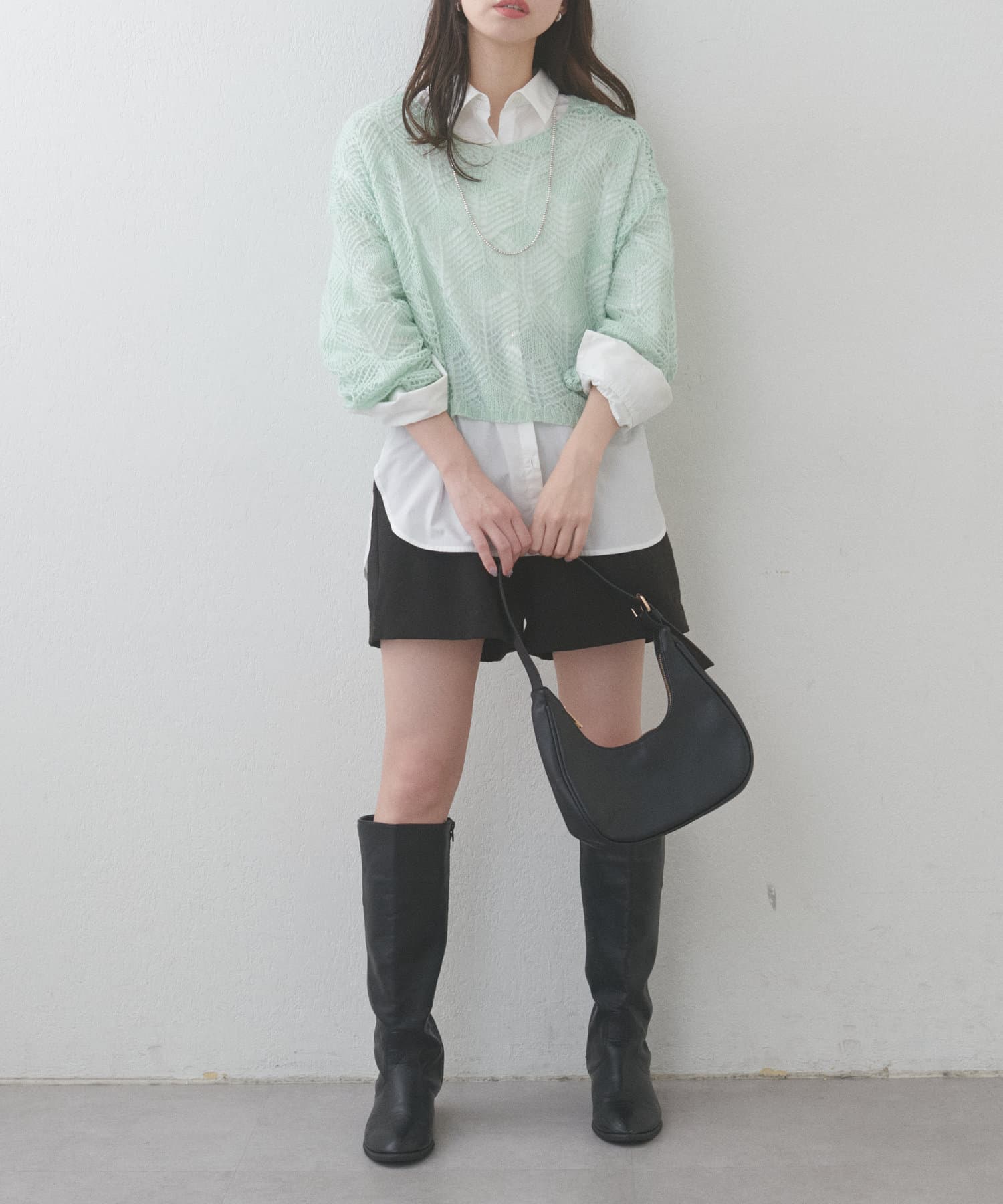 コンパクトなクロップド丈なので、ハイウエストボトムスやワンピースとも相性抜群。