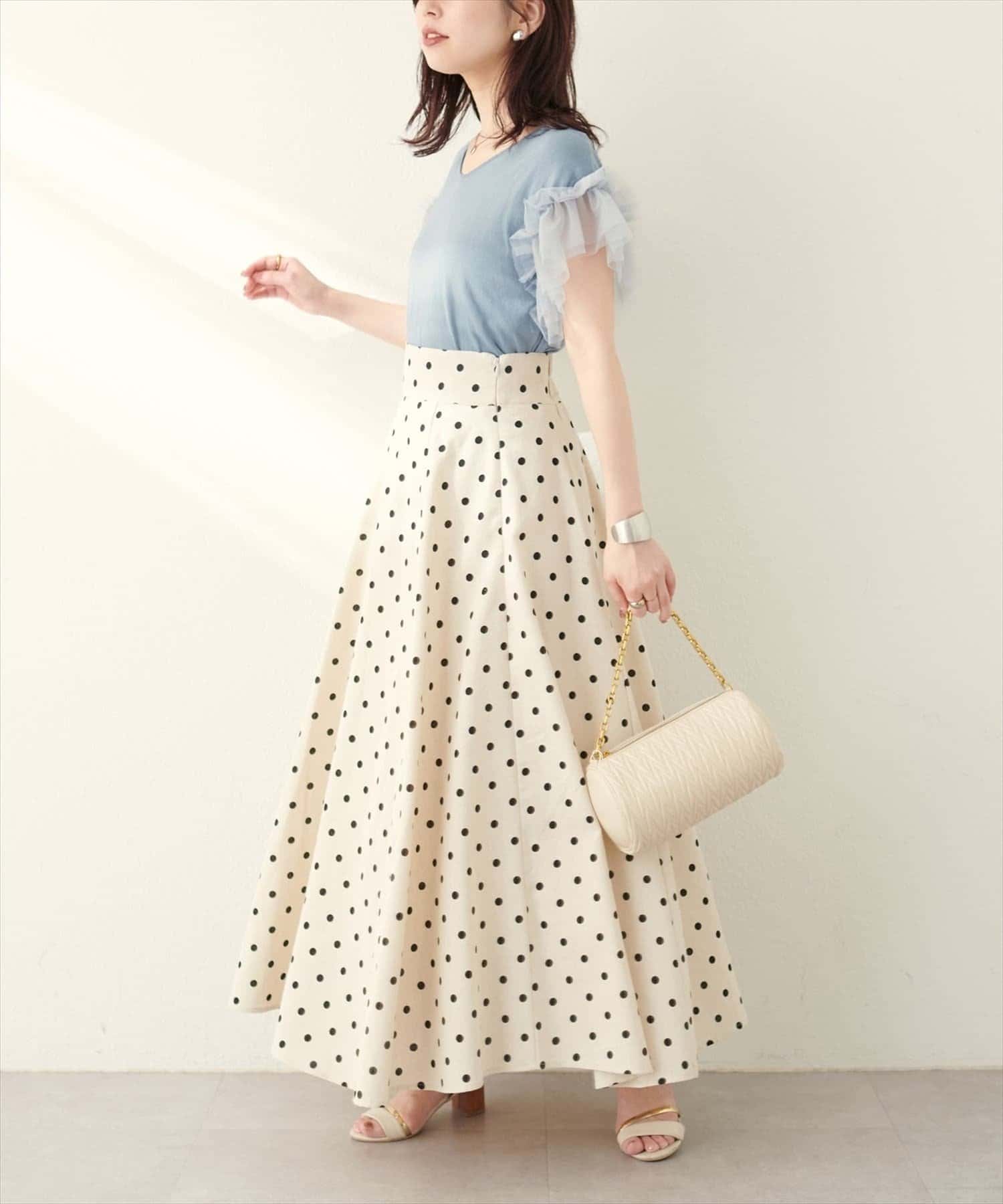 落ち感のあるナロースカートやマーメイドシルエットのスカートを合わせると、落ち着いた大人の雰囲気に。