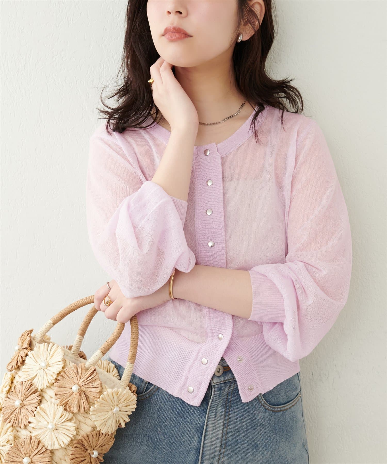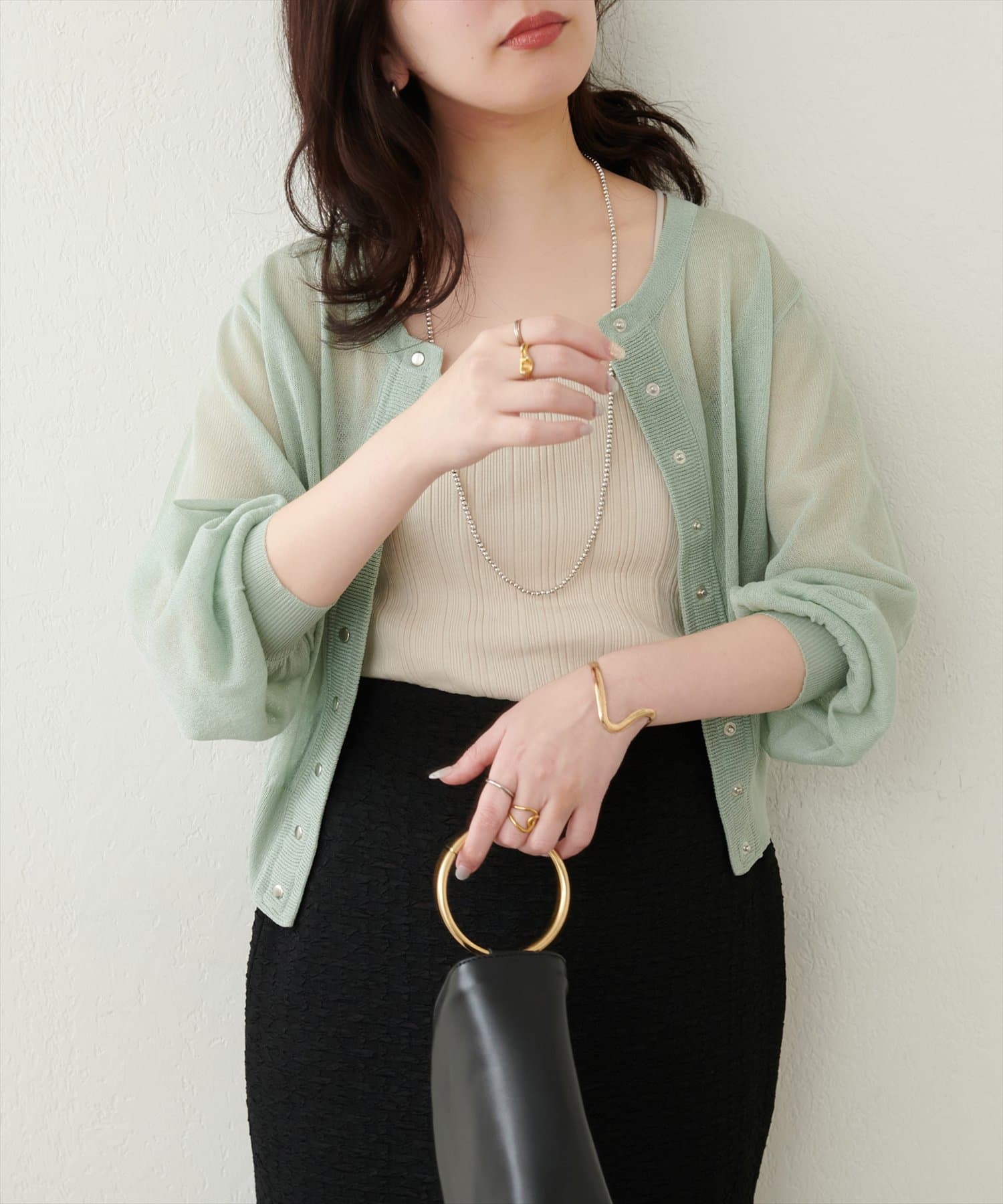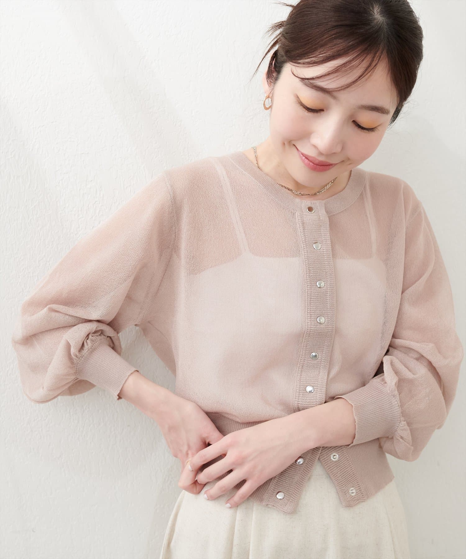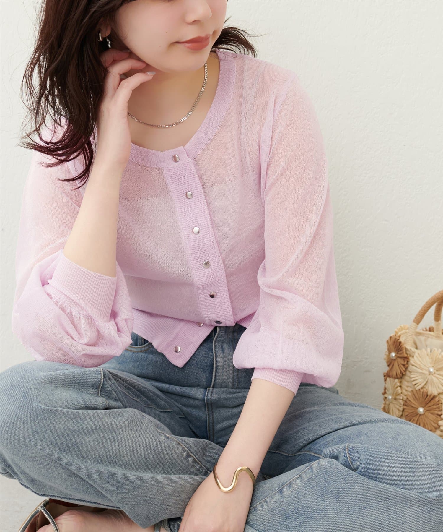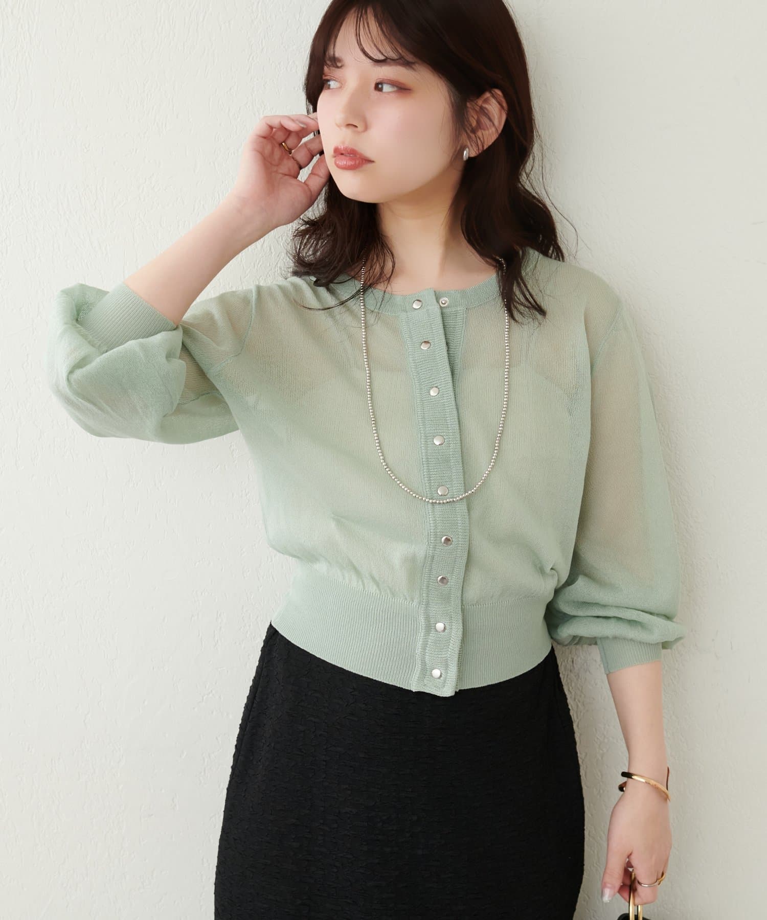 涼し気なシアー感とクリアな発色がポイントのクルーネックカーディガン