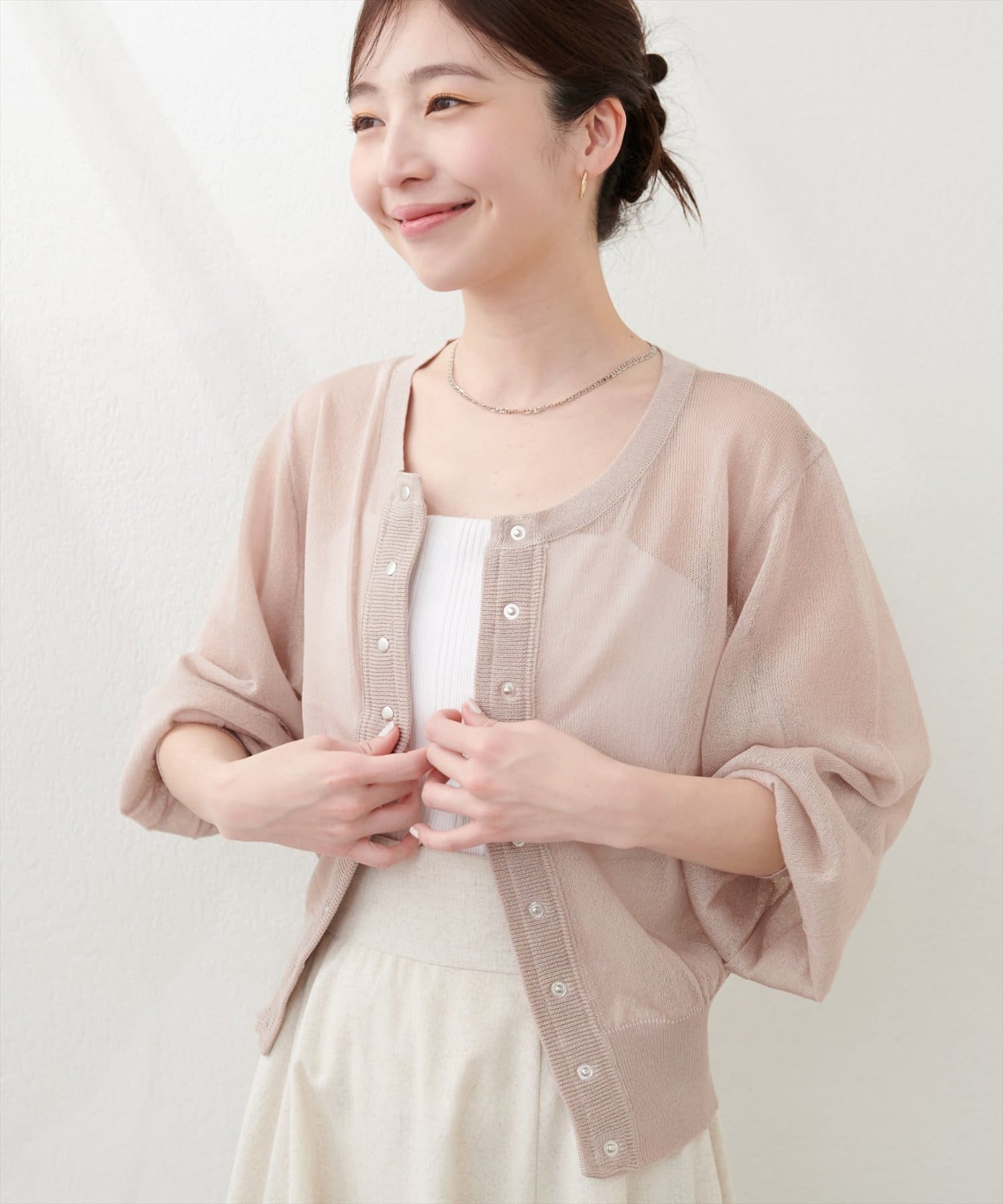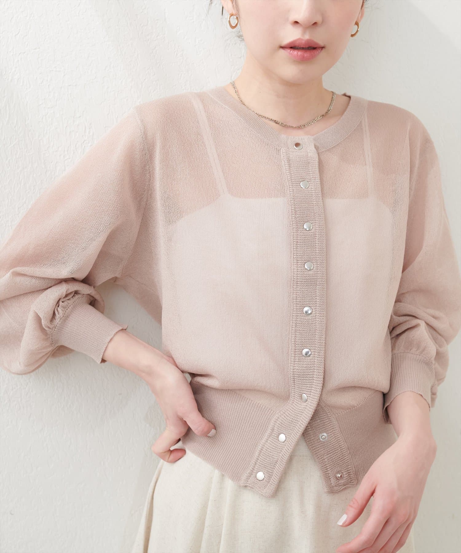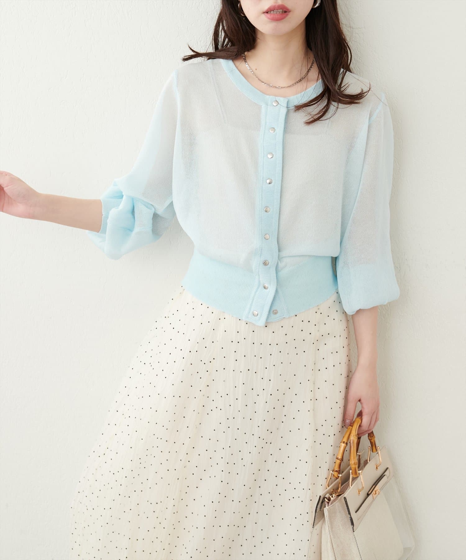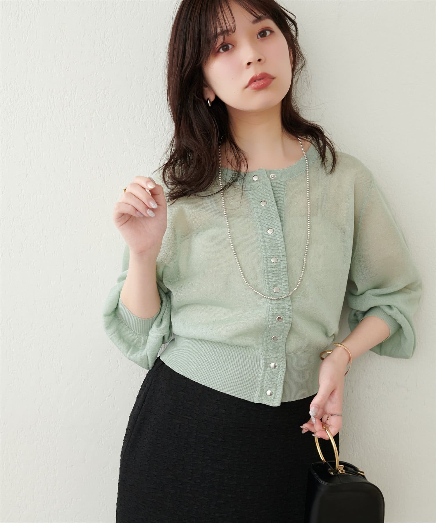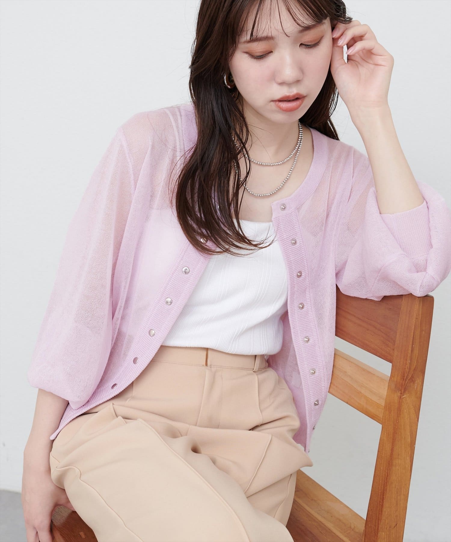 涼し気なシアー感とクリアな発色がポイントのクルーネックカーディガン