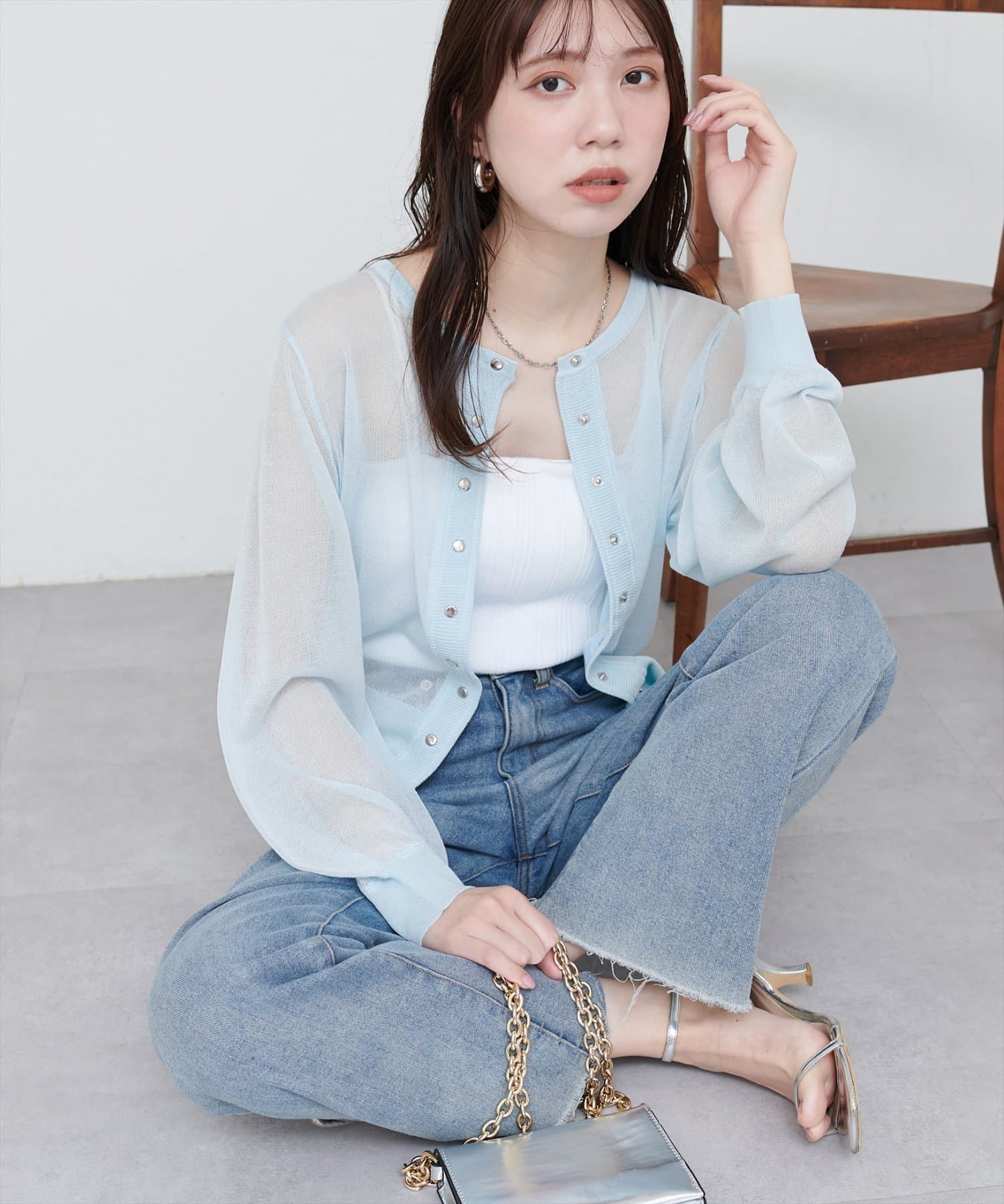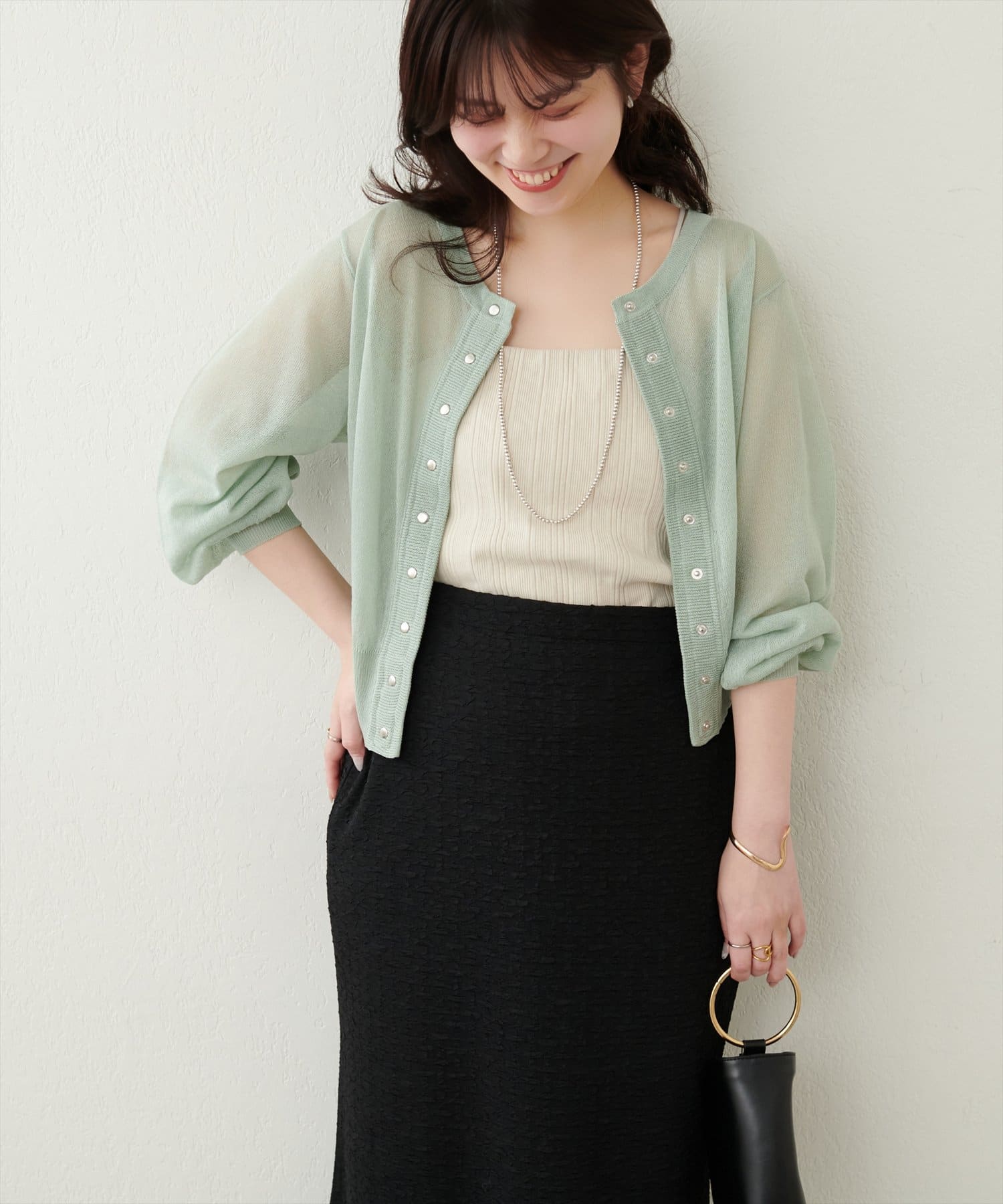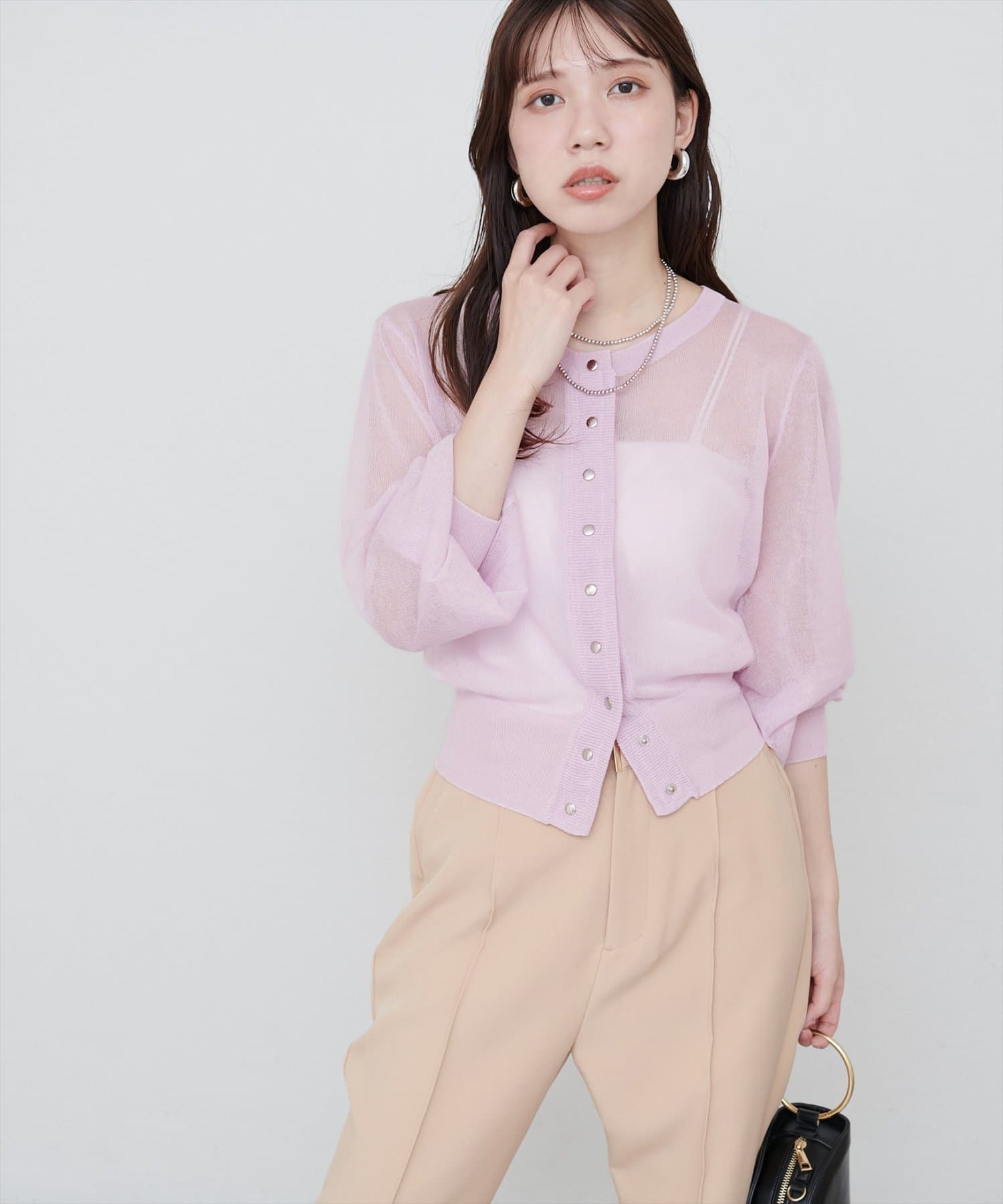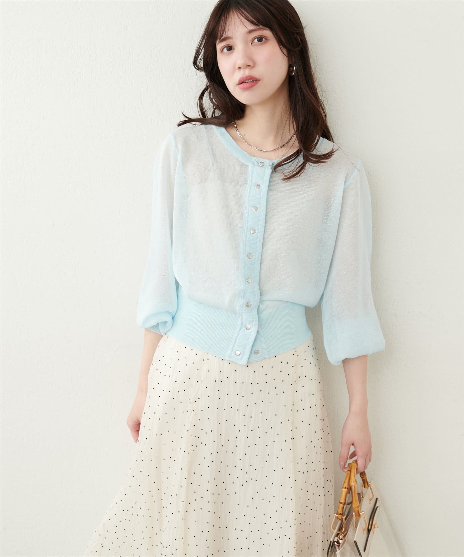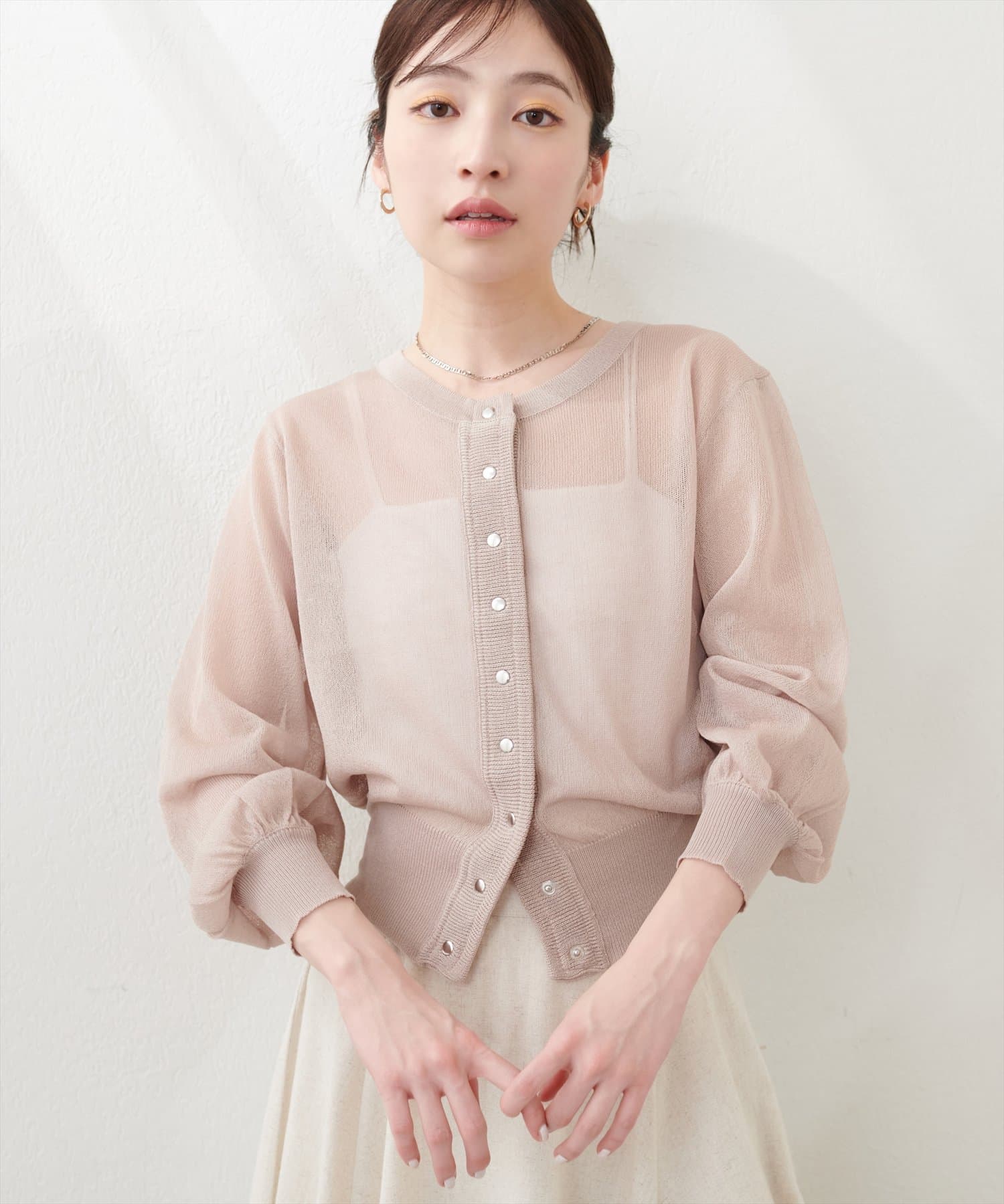 涼し気なシアー感とクリアな発色がポイントのクルーネックカーディガン