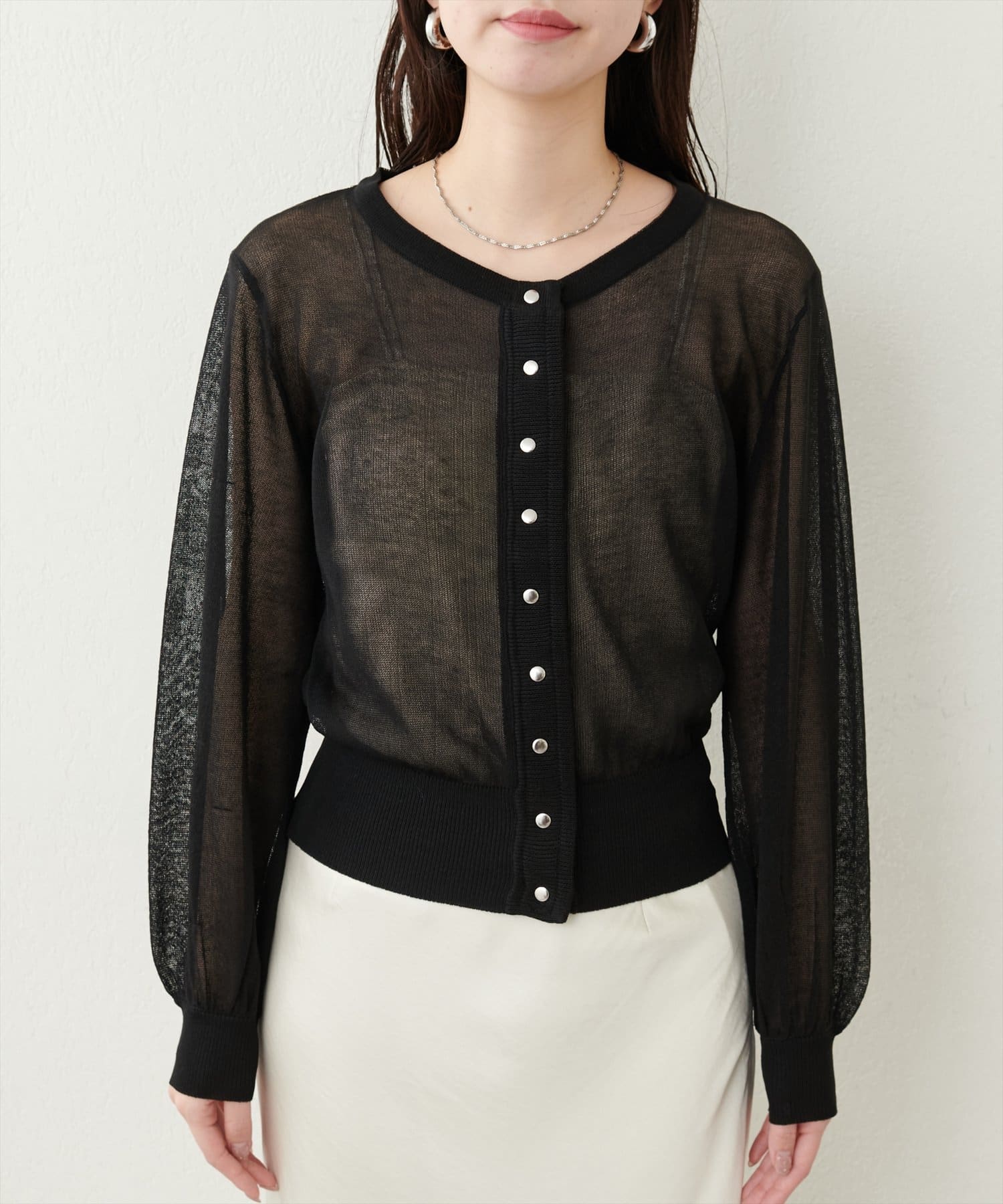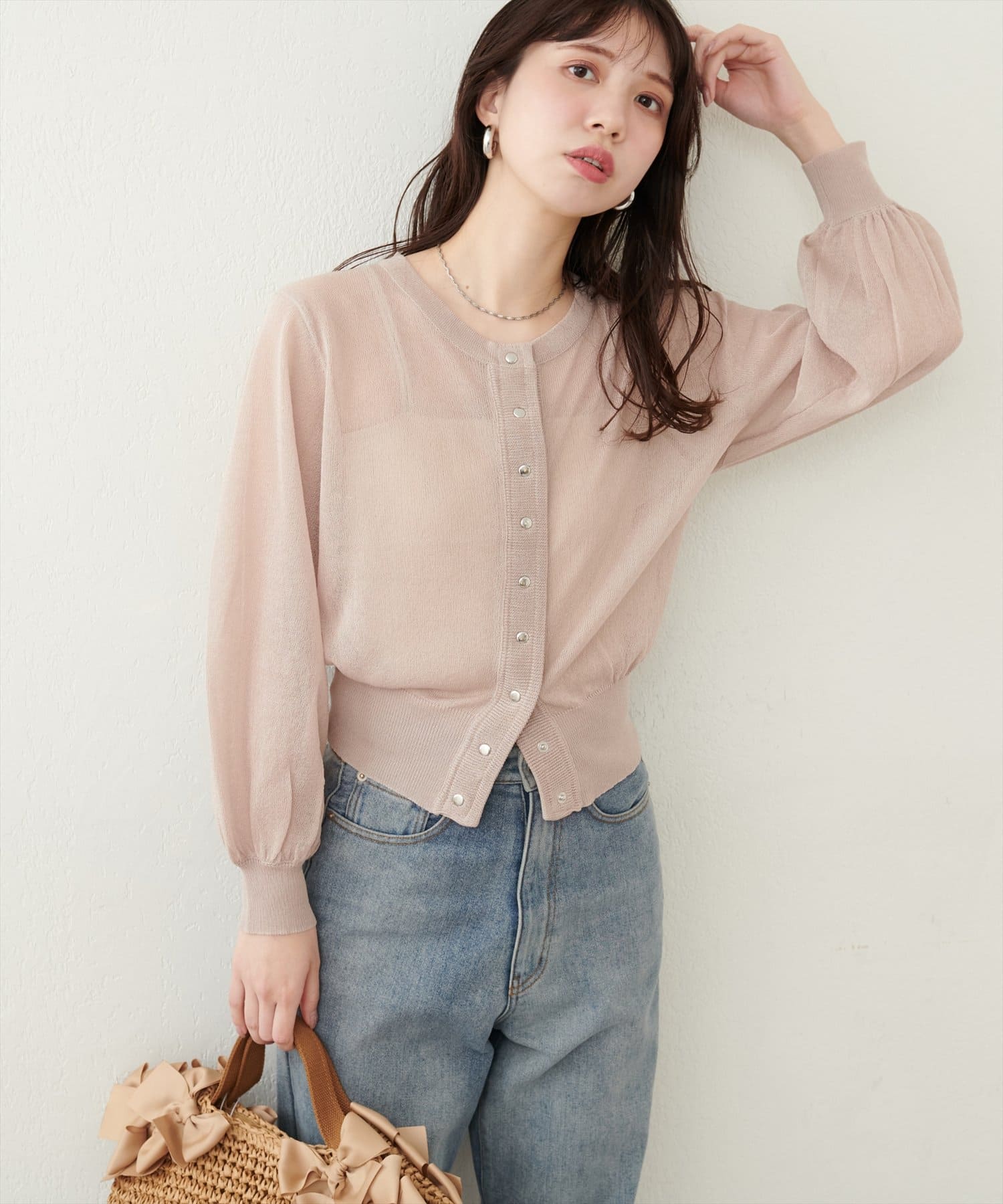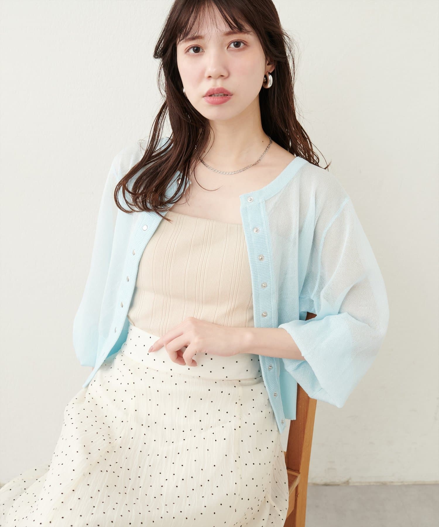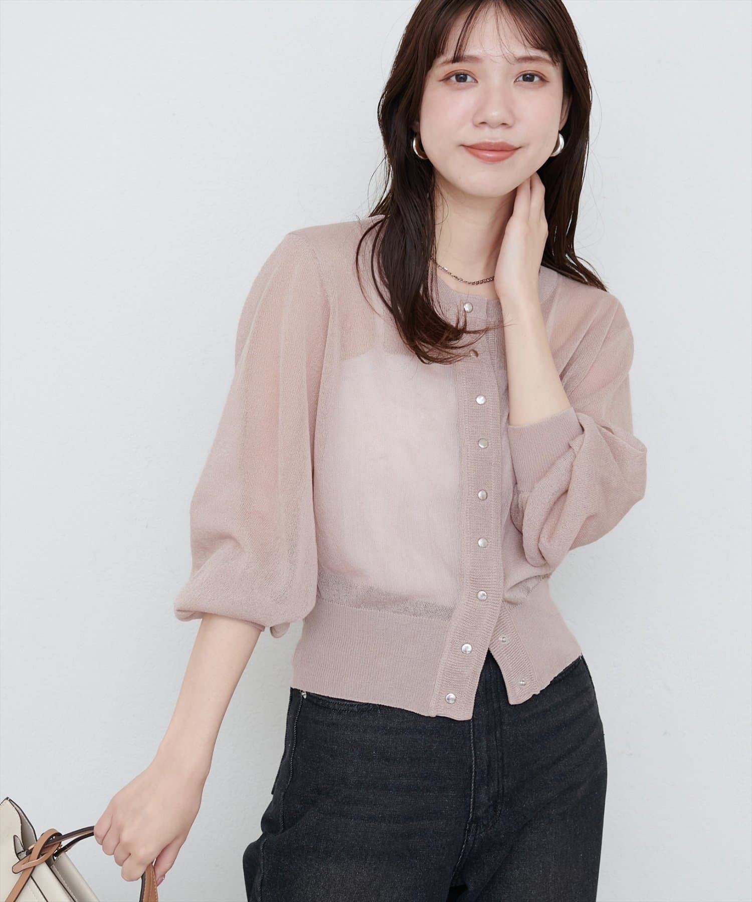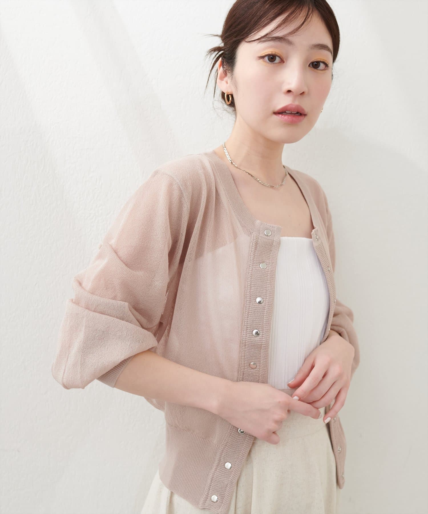 涼し気なシアー感とクリアな発色がポイントのクルーネックカーディガン