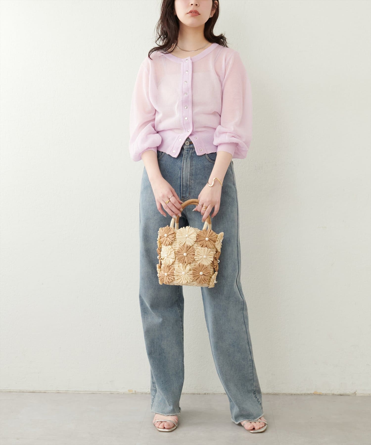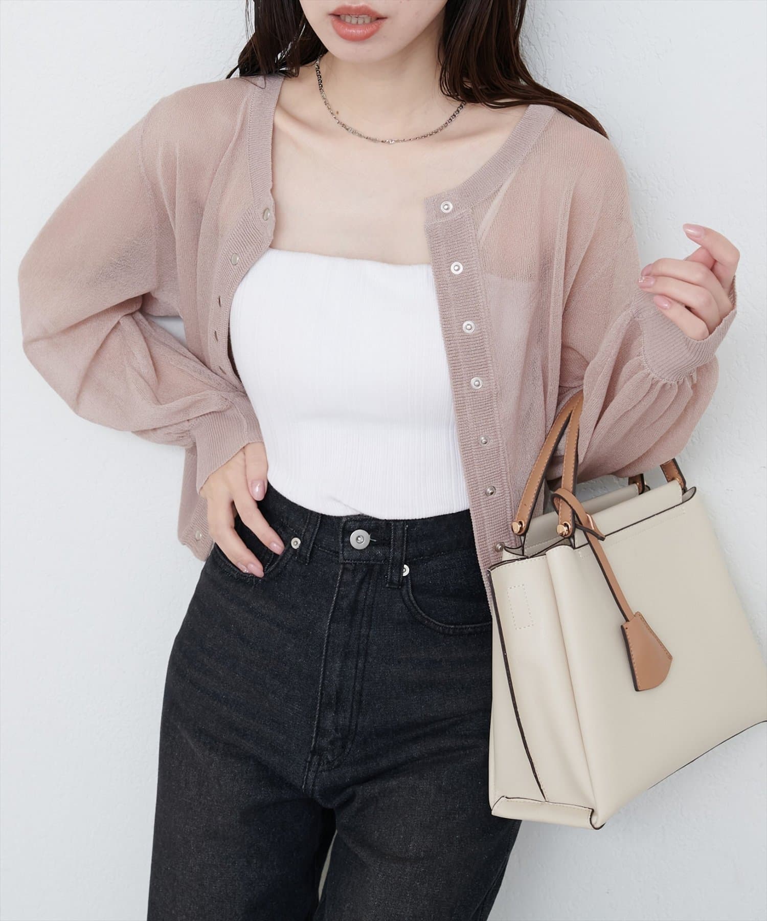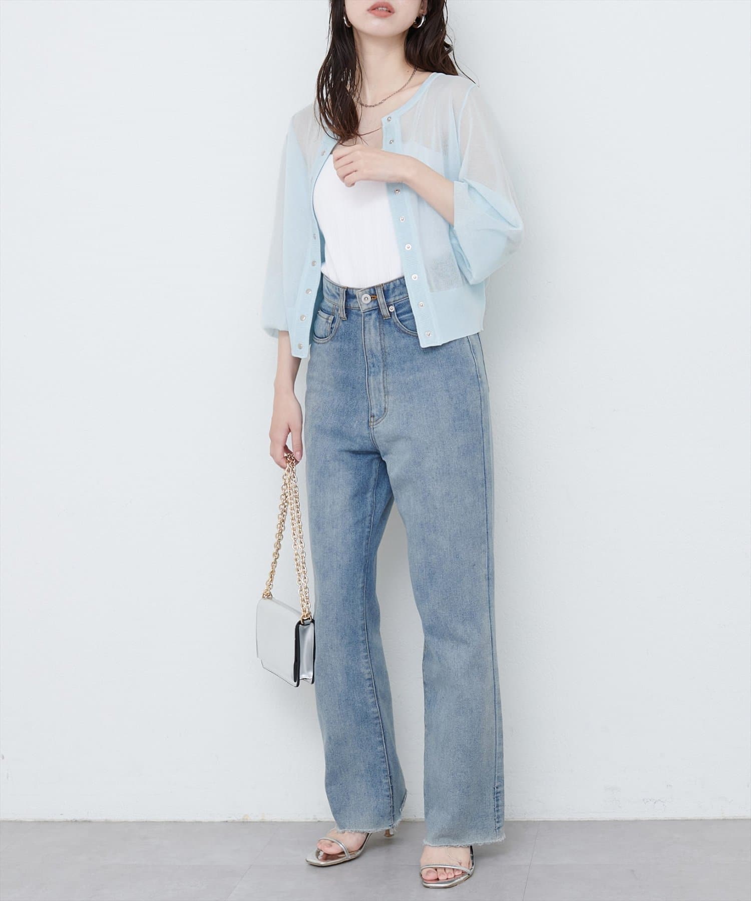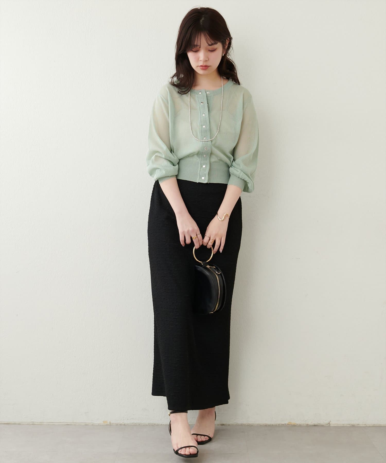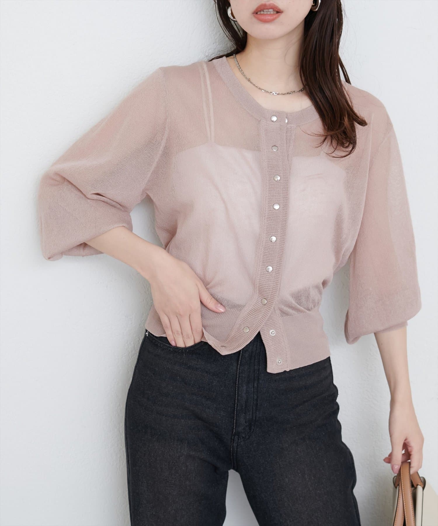 涼し気なシアー感とクリアな発色がポイントのクルーネックカーディガン