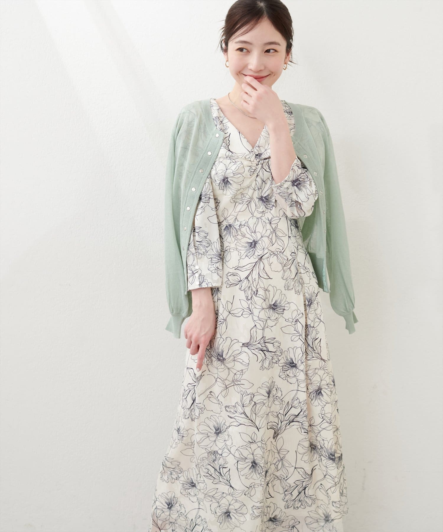 ベーシックなクルーネックカーディガンなので、ノースリーブや半袖の羽織にはもちろん、