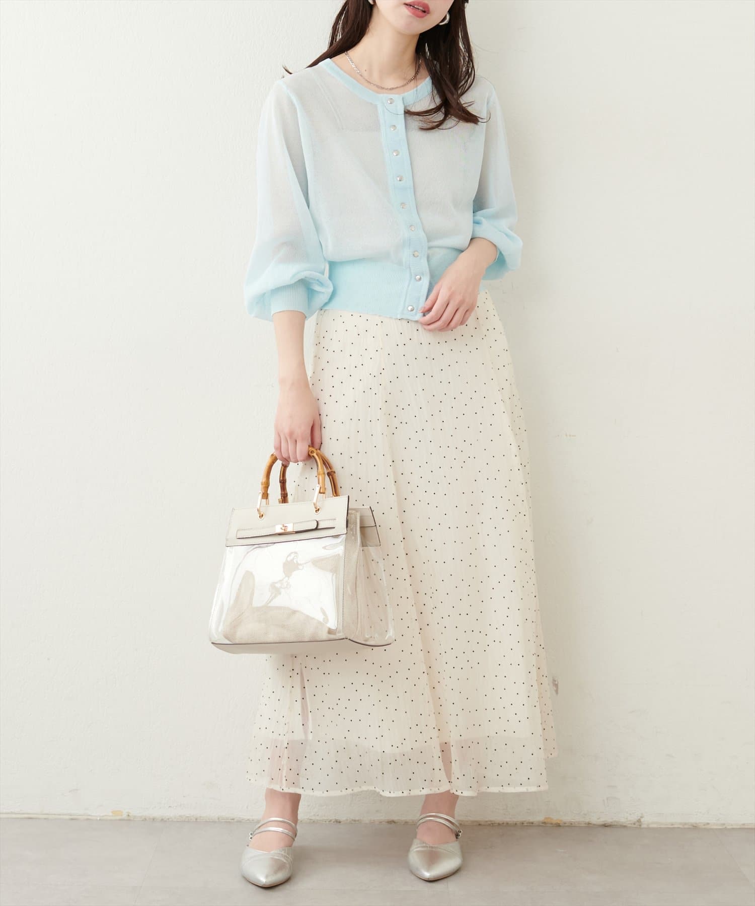 シアー感のある素材で、夏でも涼しげな印象を与えてくれます。