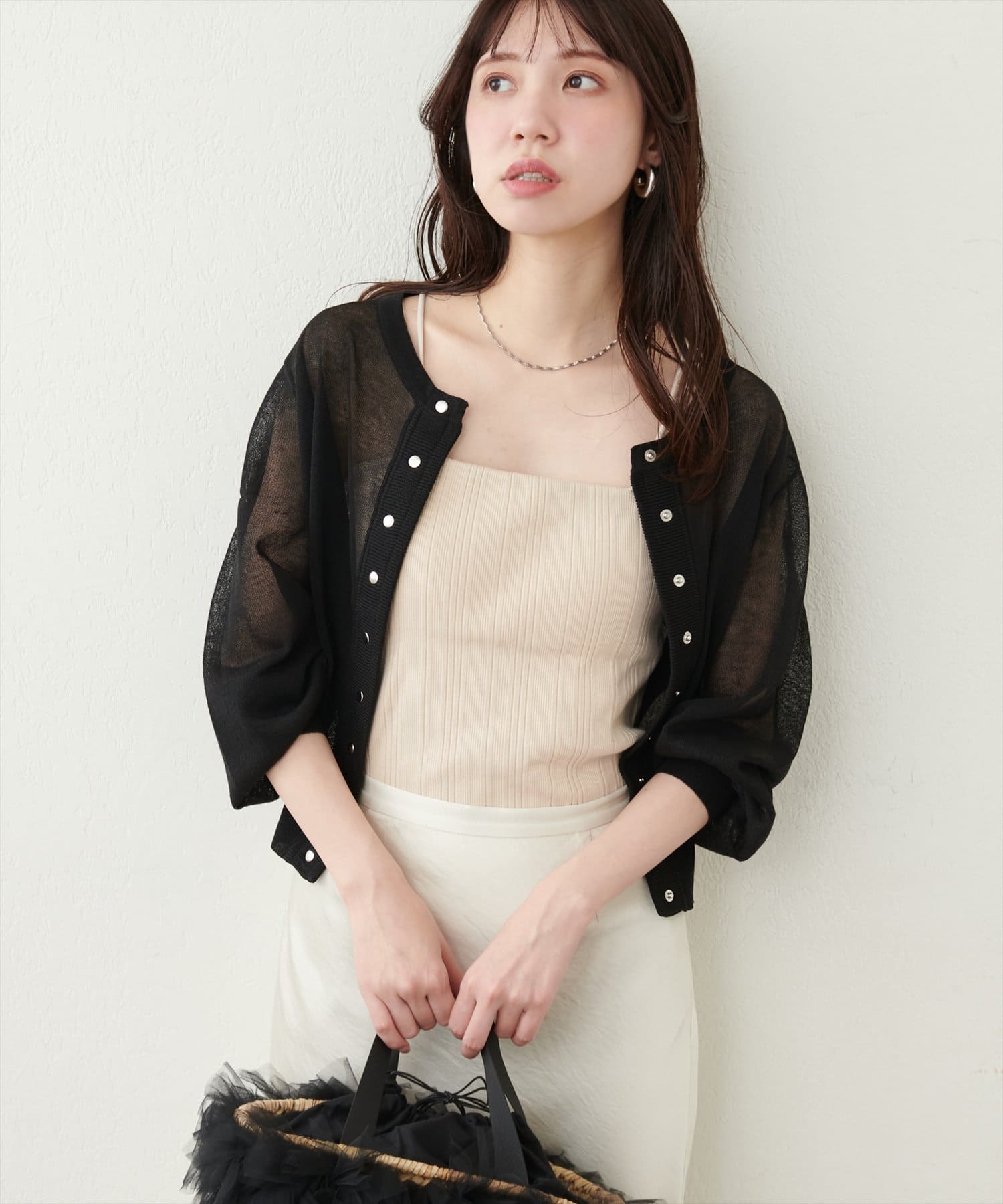 程よいシアー感とハリのある上品な大人のカーディガン。