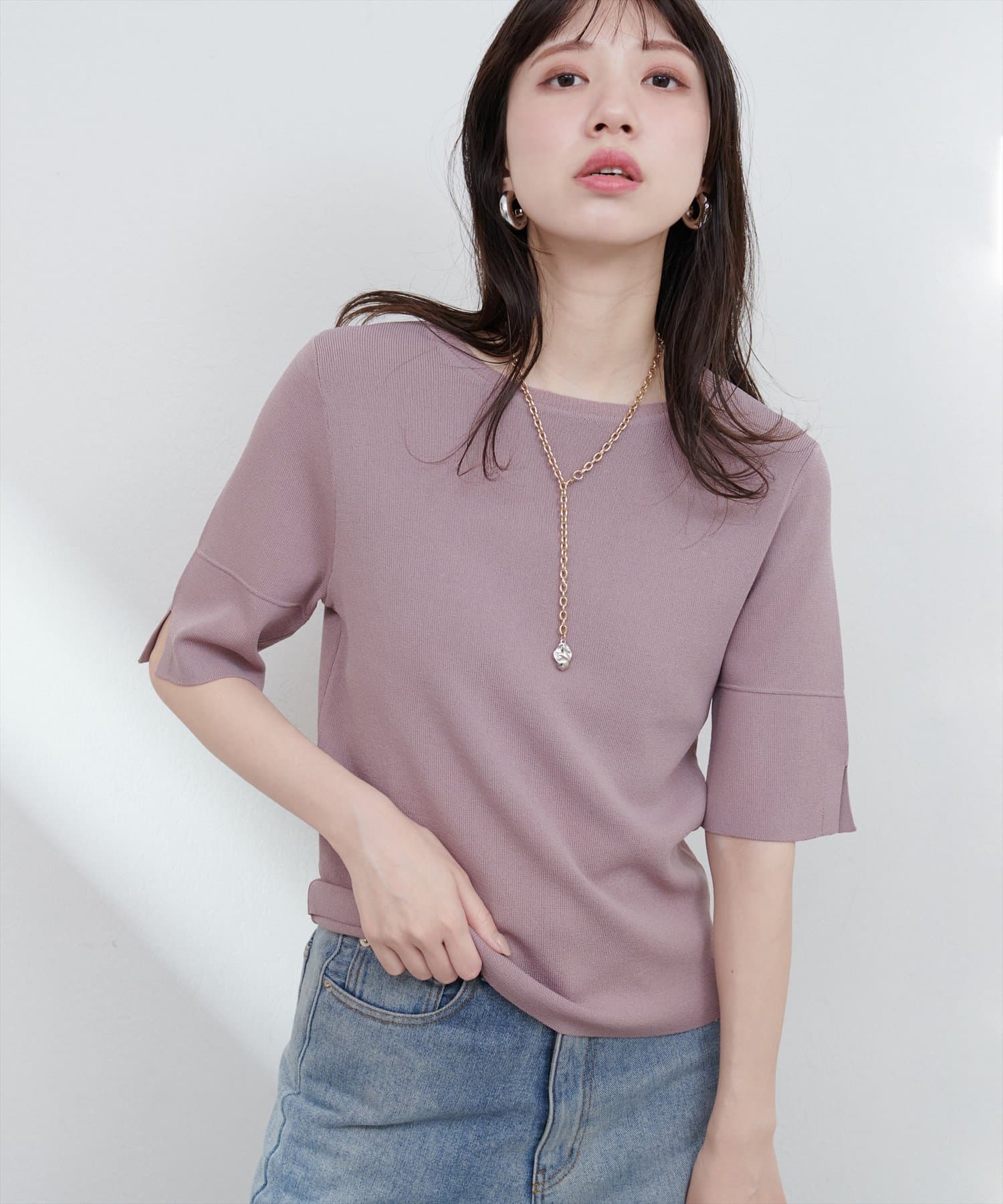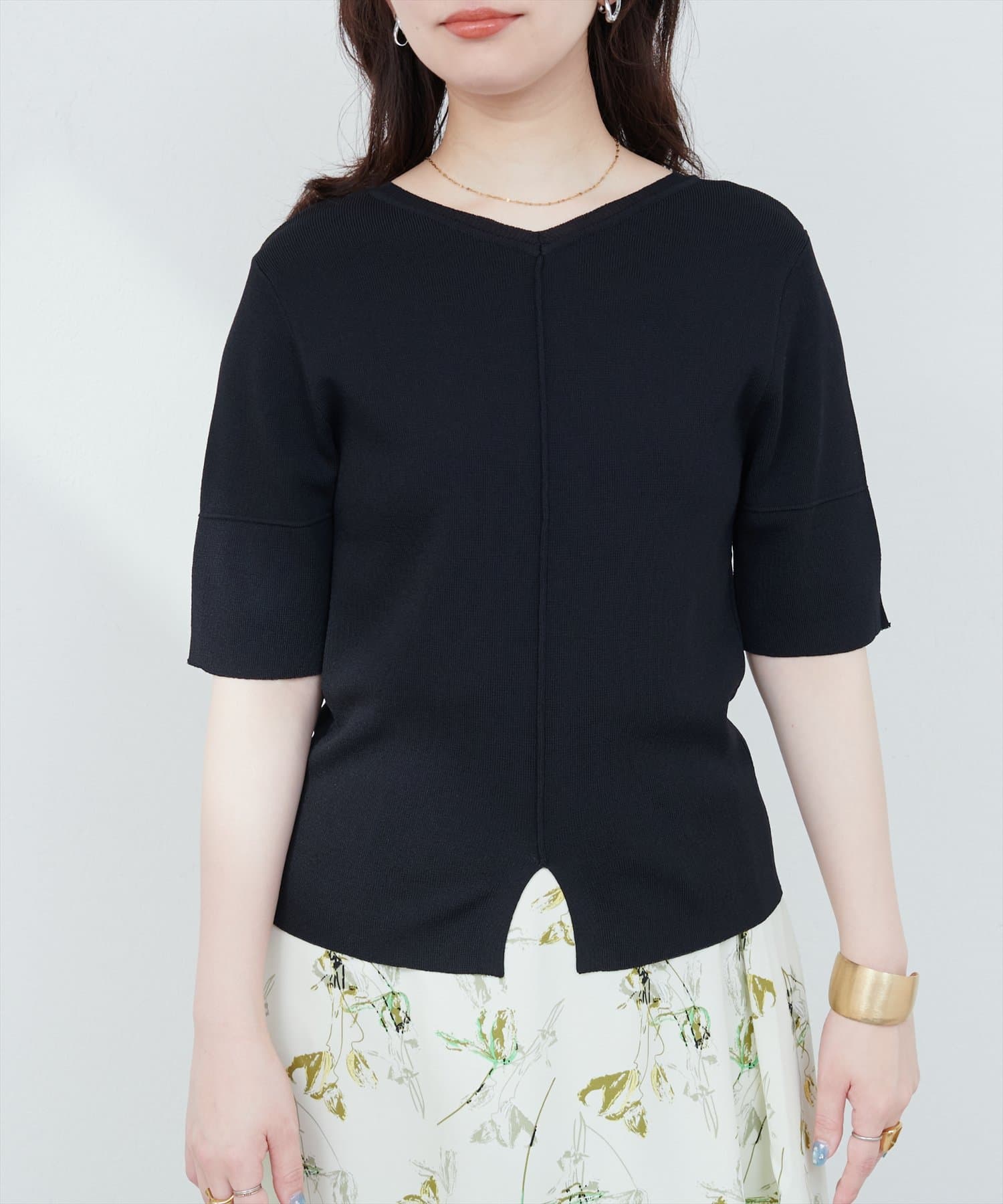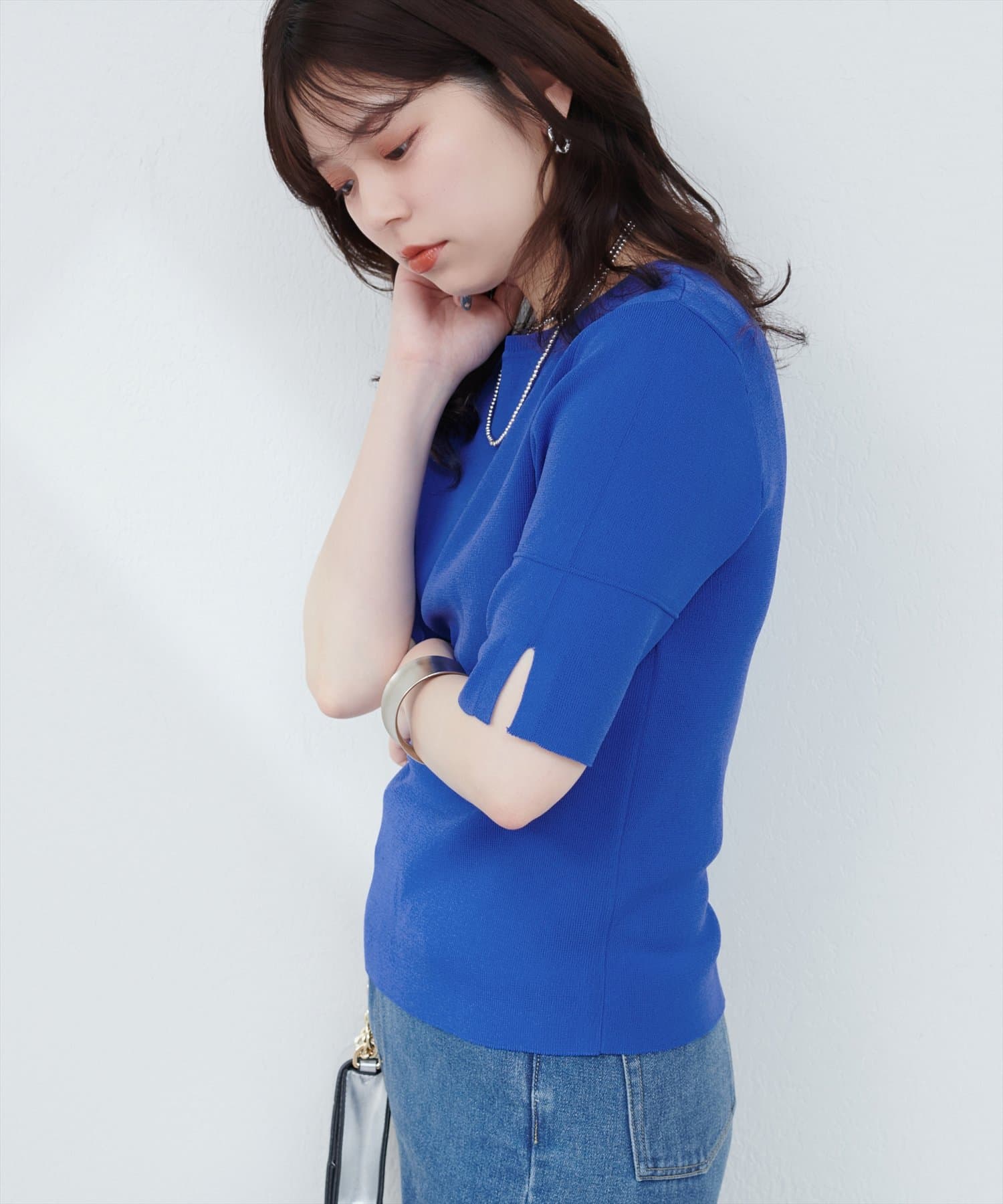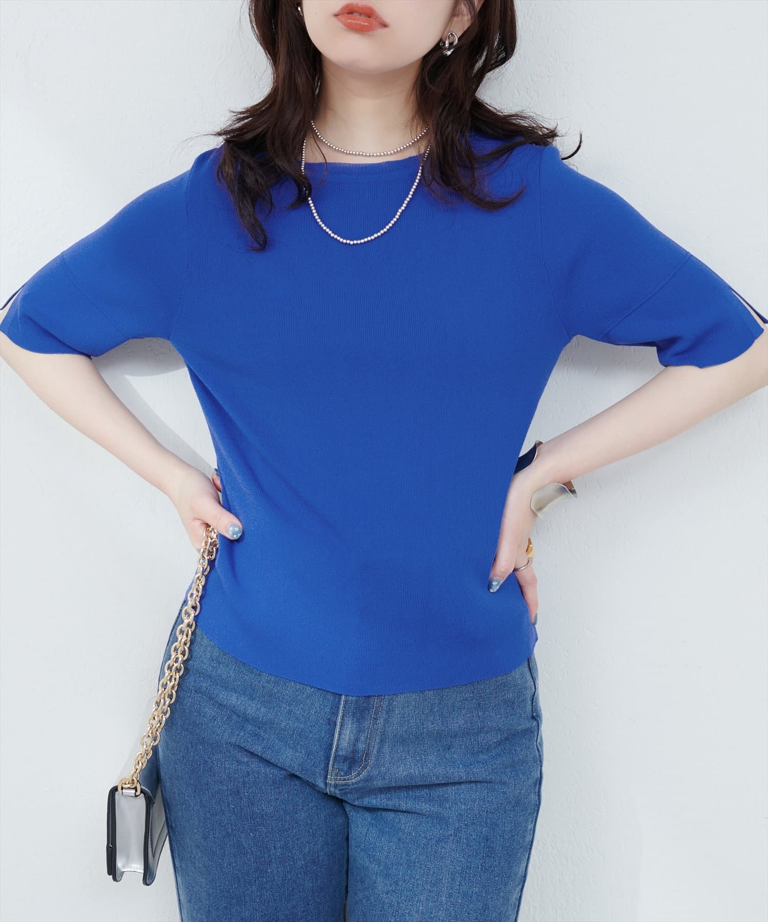 シンプルでどんなボトムスにも合わせやすいニットトップス。