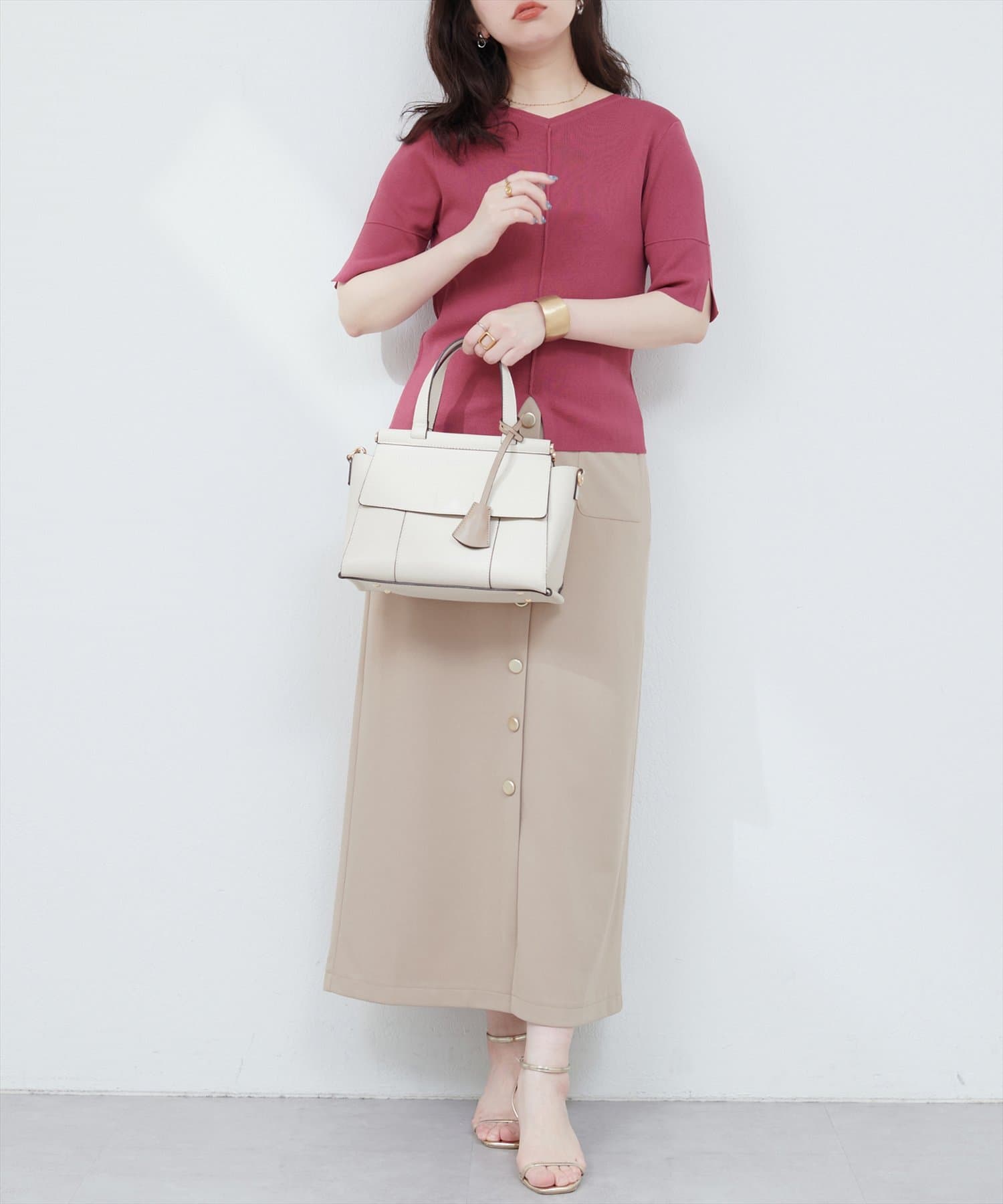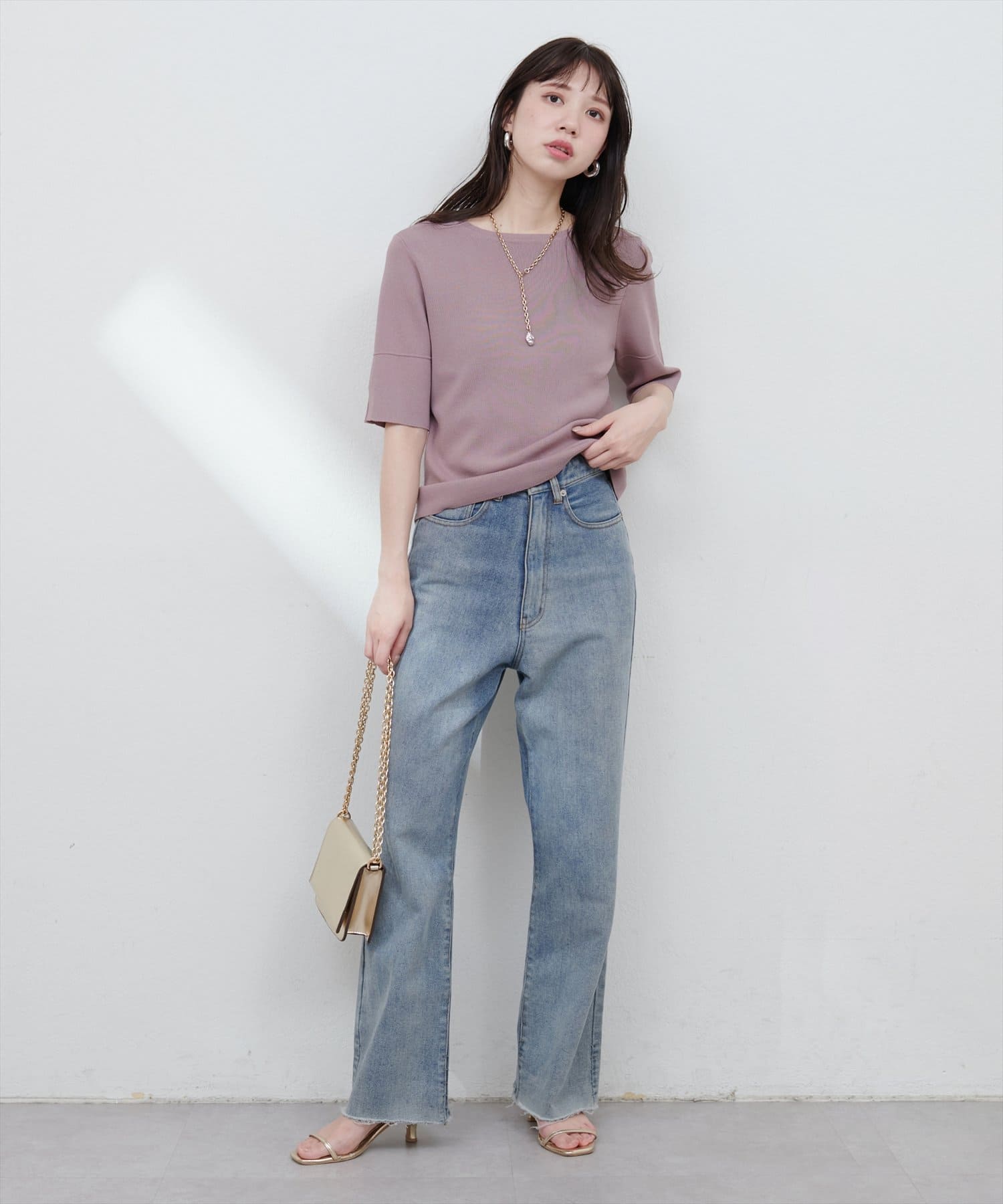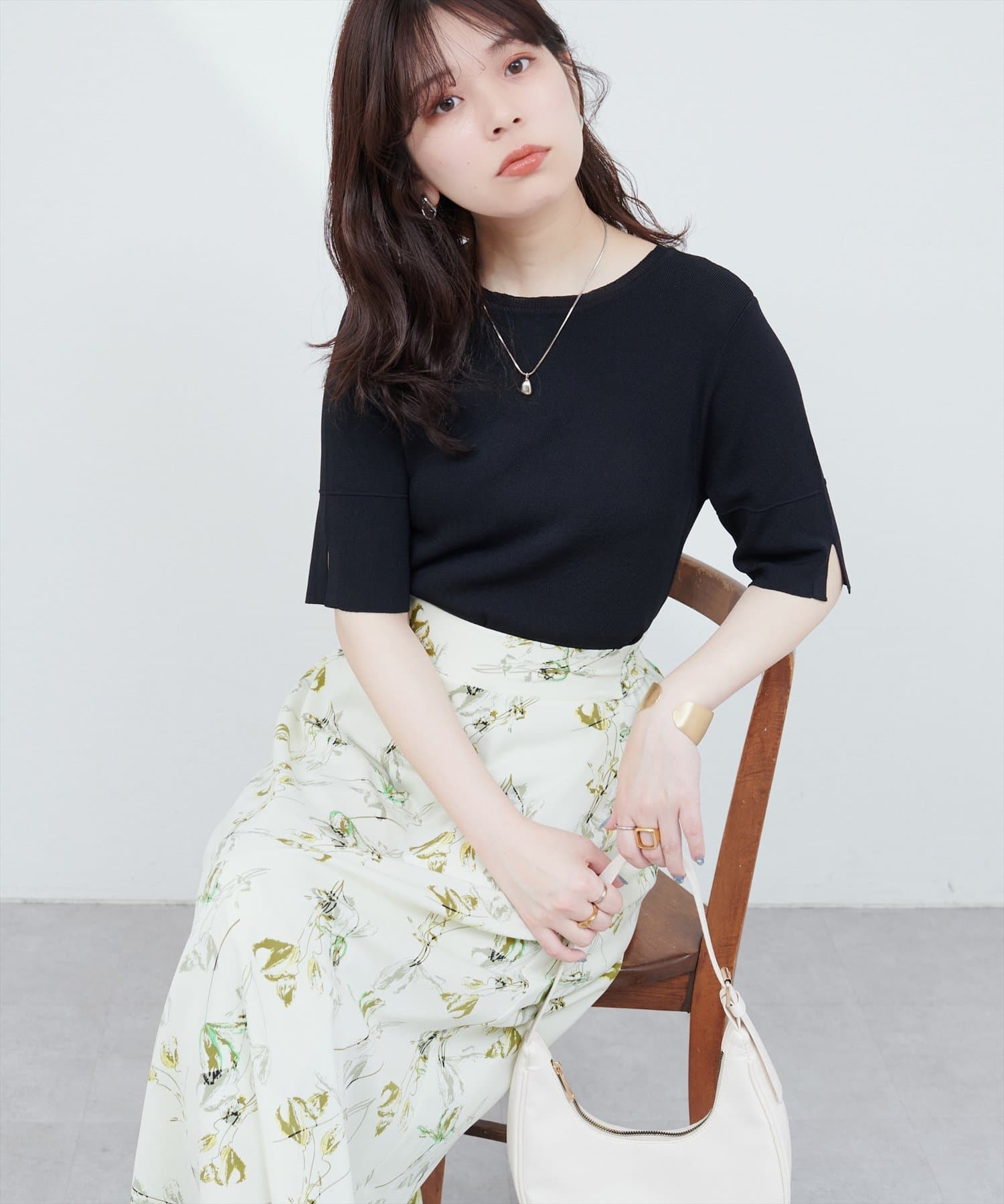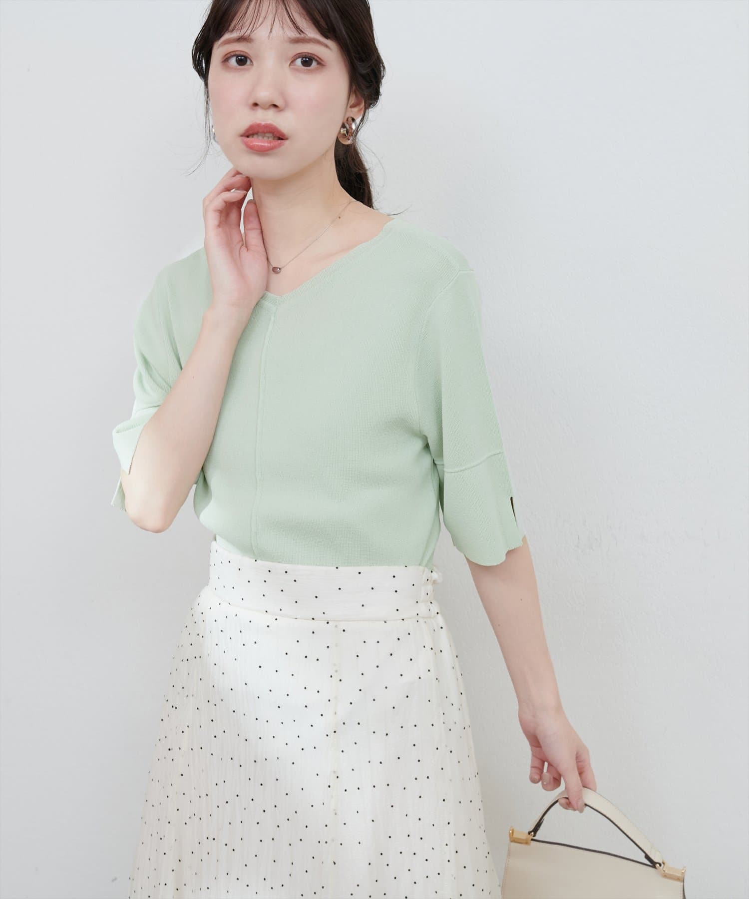 シンプルでどんなボトムスにも合わせやすいニットトップス。