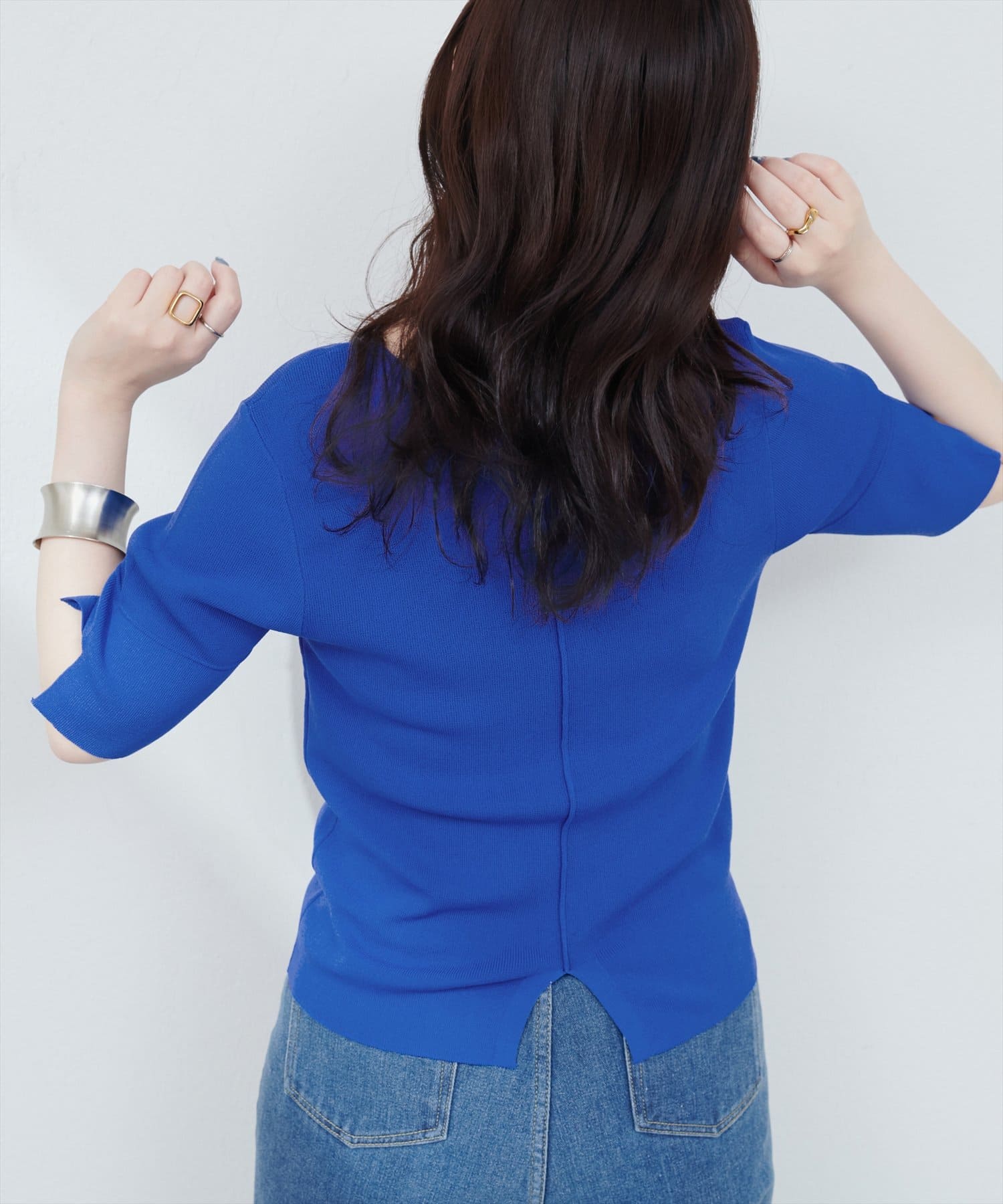 前後2WAYピンタック切替袖シンプルニット