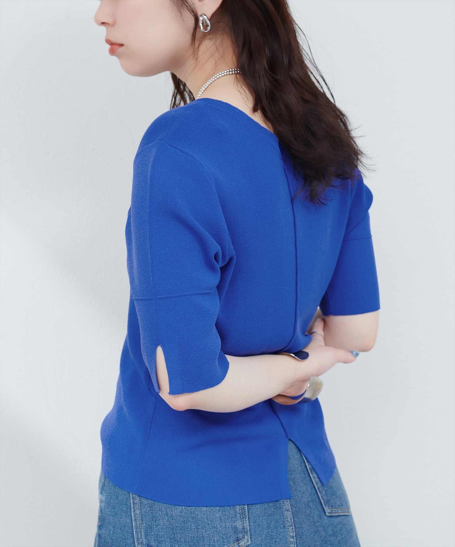 【WEB限定】前後2WAYピンタック切替袖シンプルニット