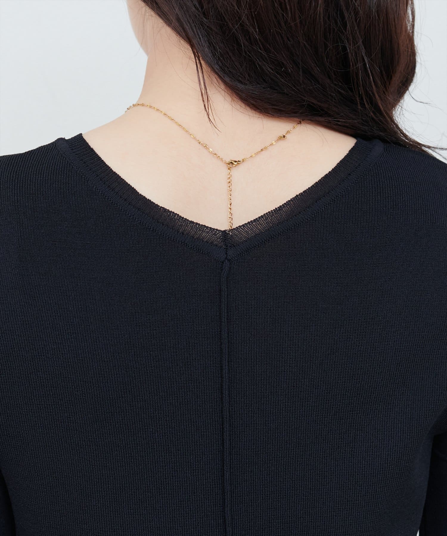 クルーネックでベーシックに、Vネック側には切替が入っており、シンプルな中にもアクセントをプラス。
