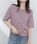 クルーネックでベーシックに、Vネック側には切替が入っており、シンプルな中にもアクセントをプラス。
