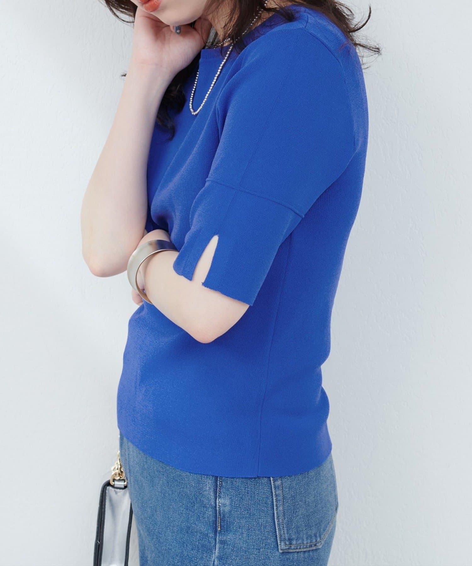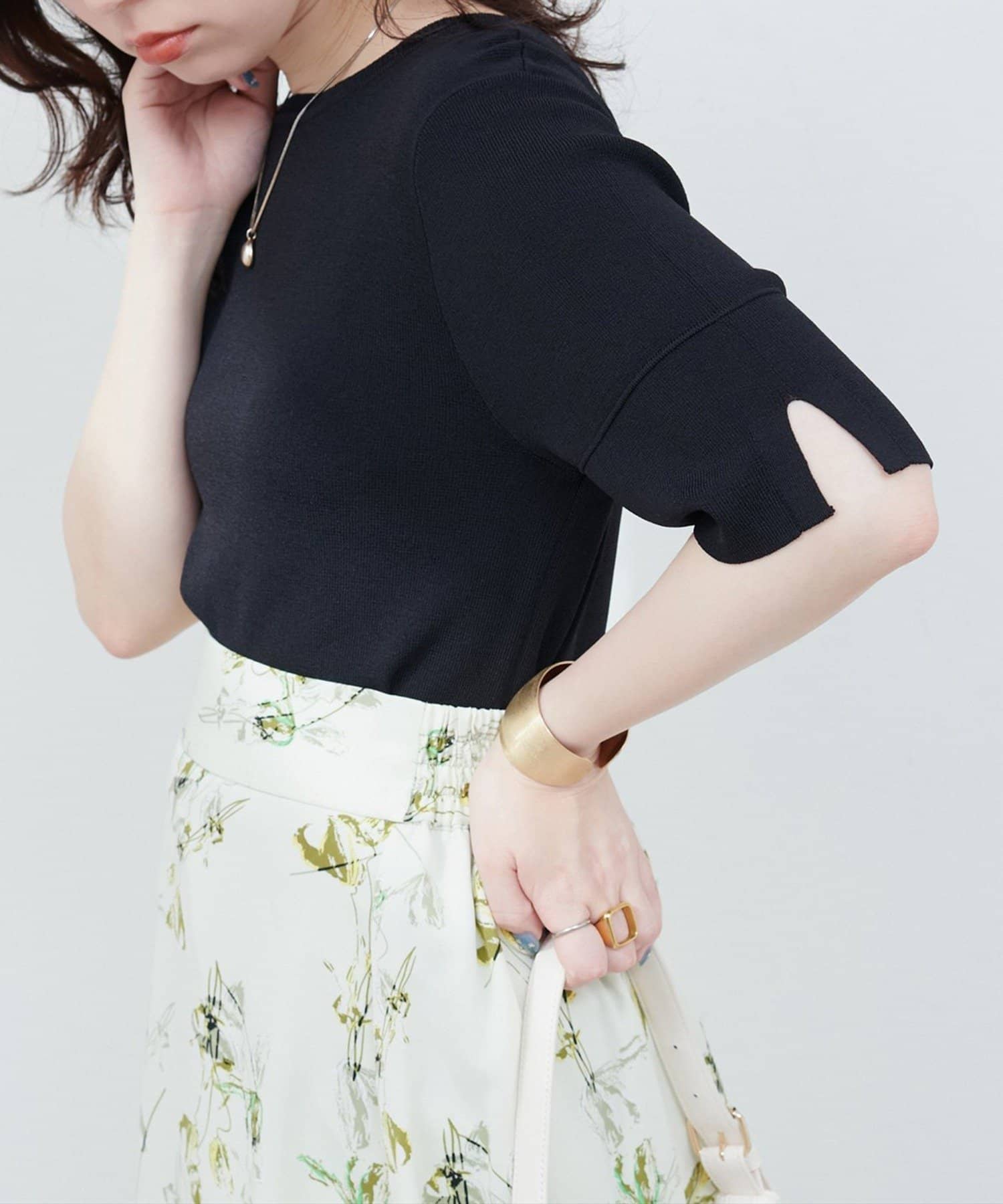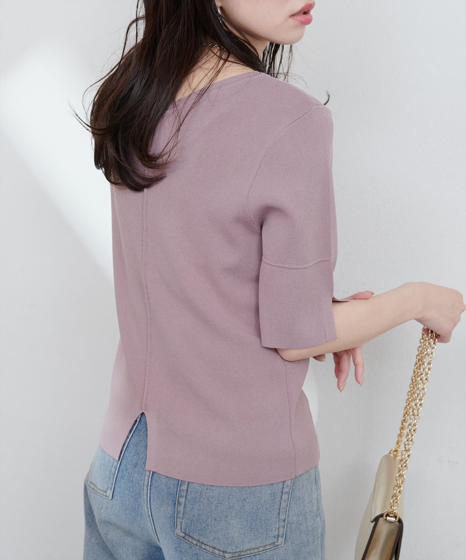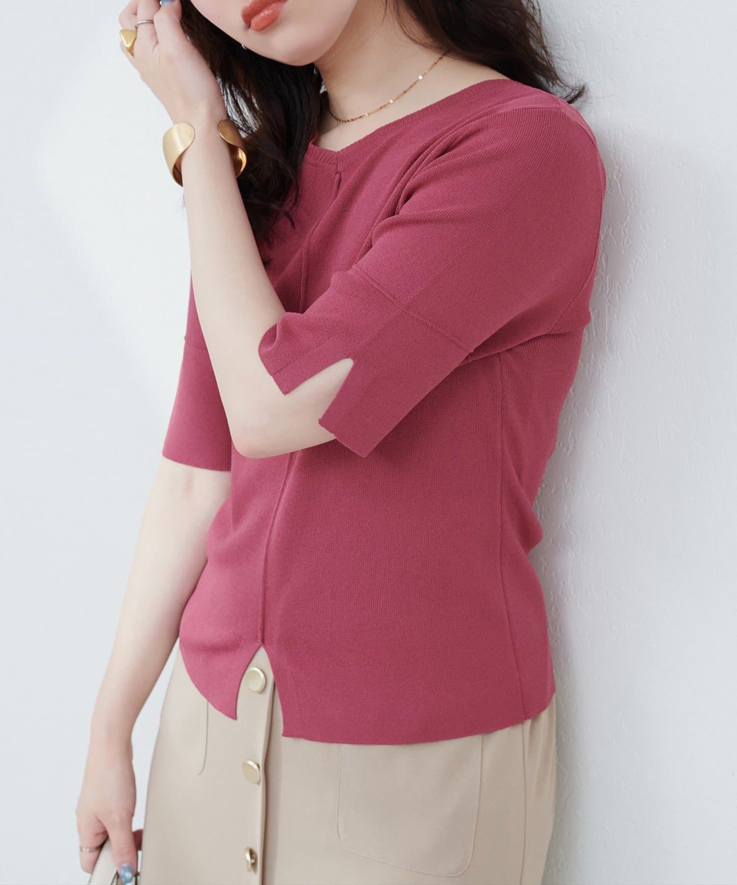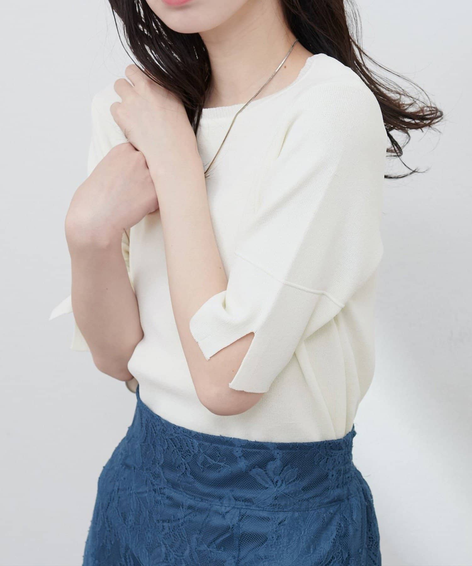 【natural couture】前後2WAYピンタック切替袖シンプルニット