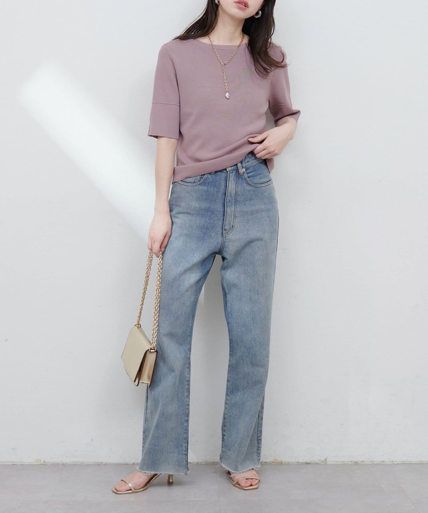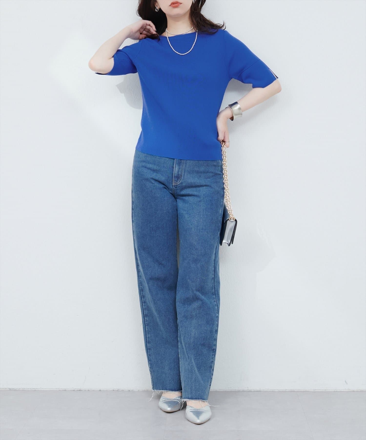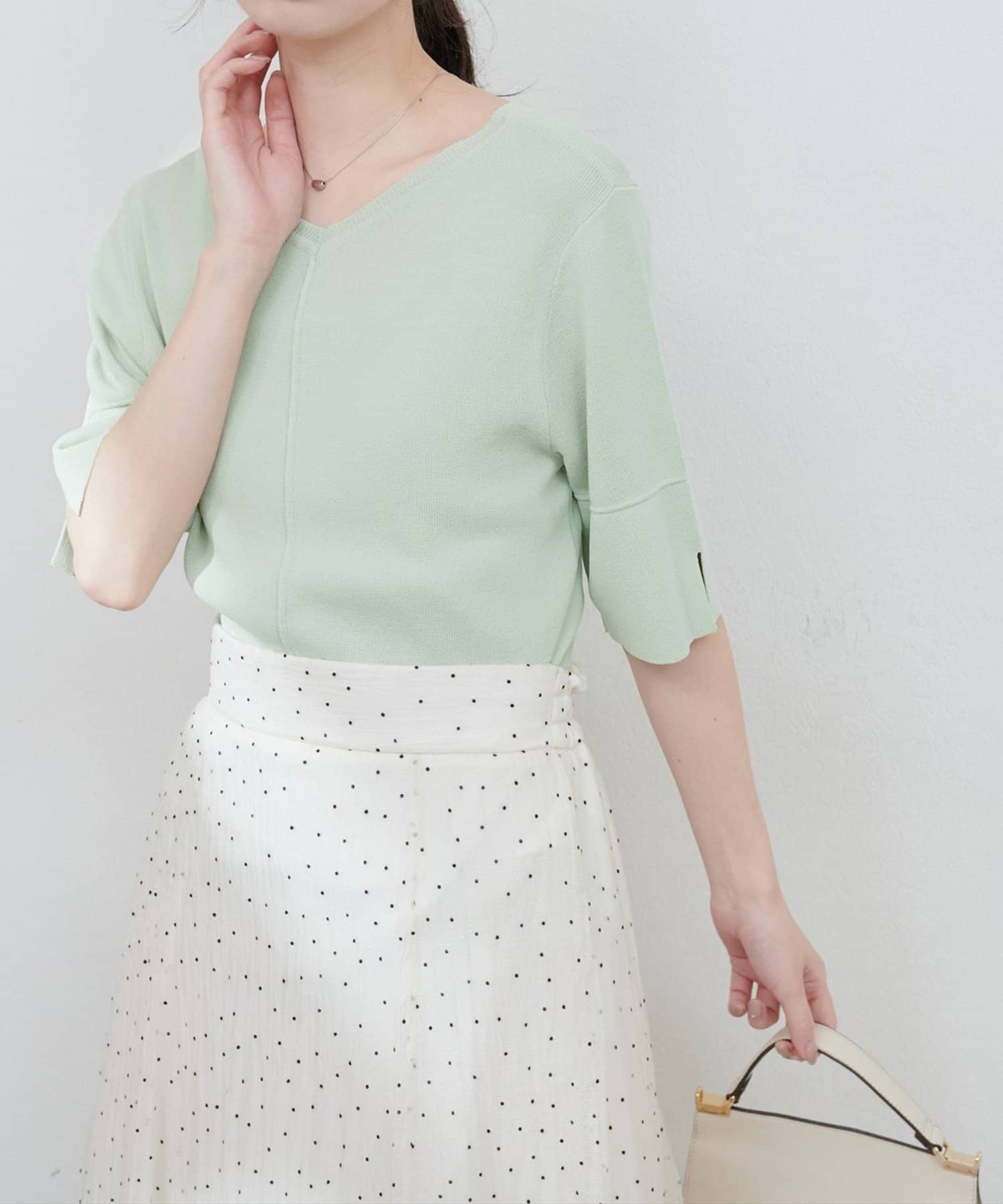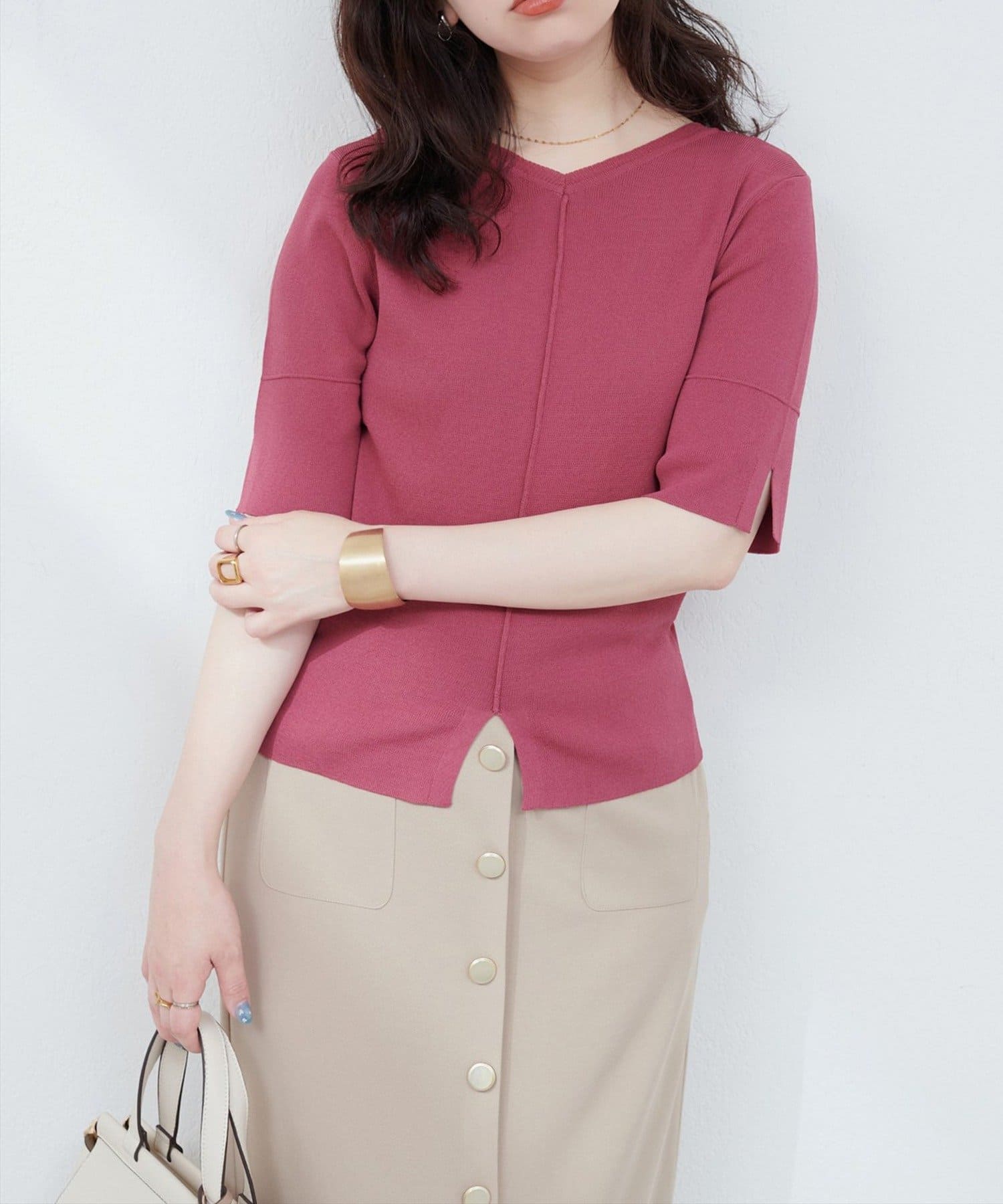 シンプルでどんなボトムスにも合わせやすいニットトップス。