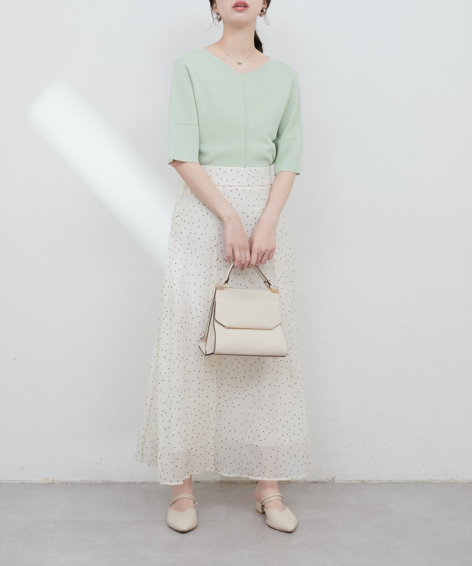 すっきりしたシルエットで、ワイドパンツやフレアスカートとの相性も抜群です。