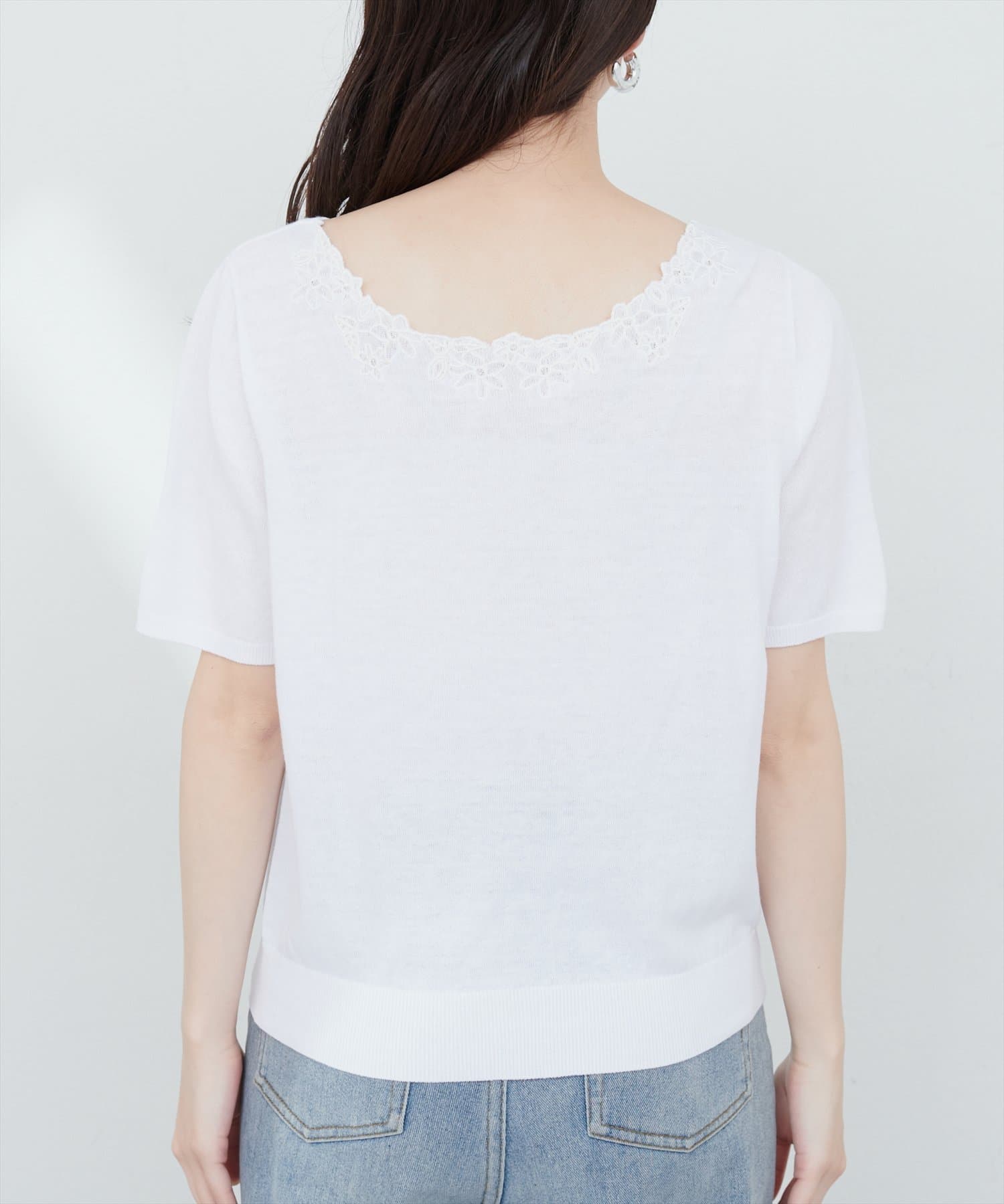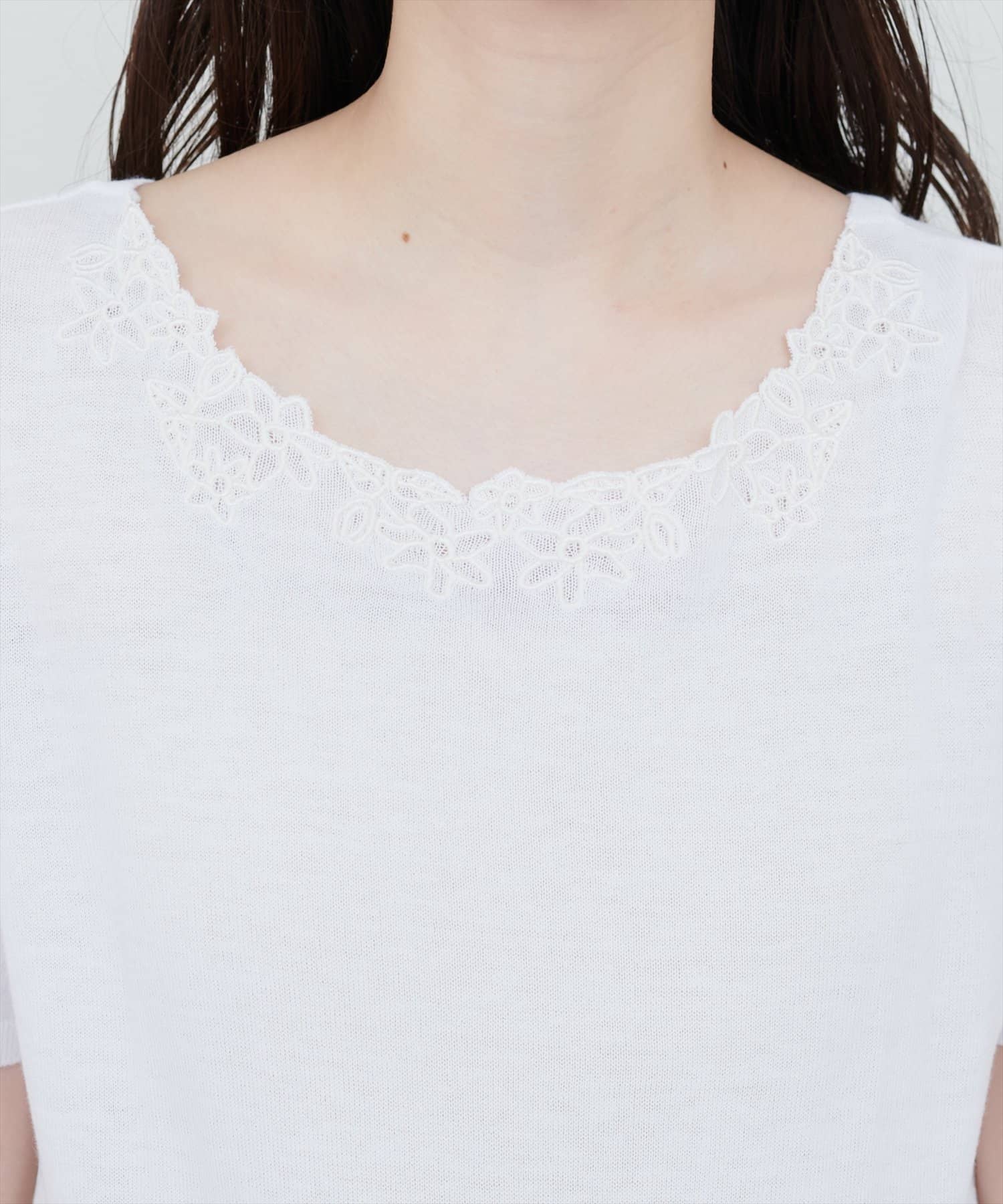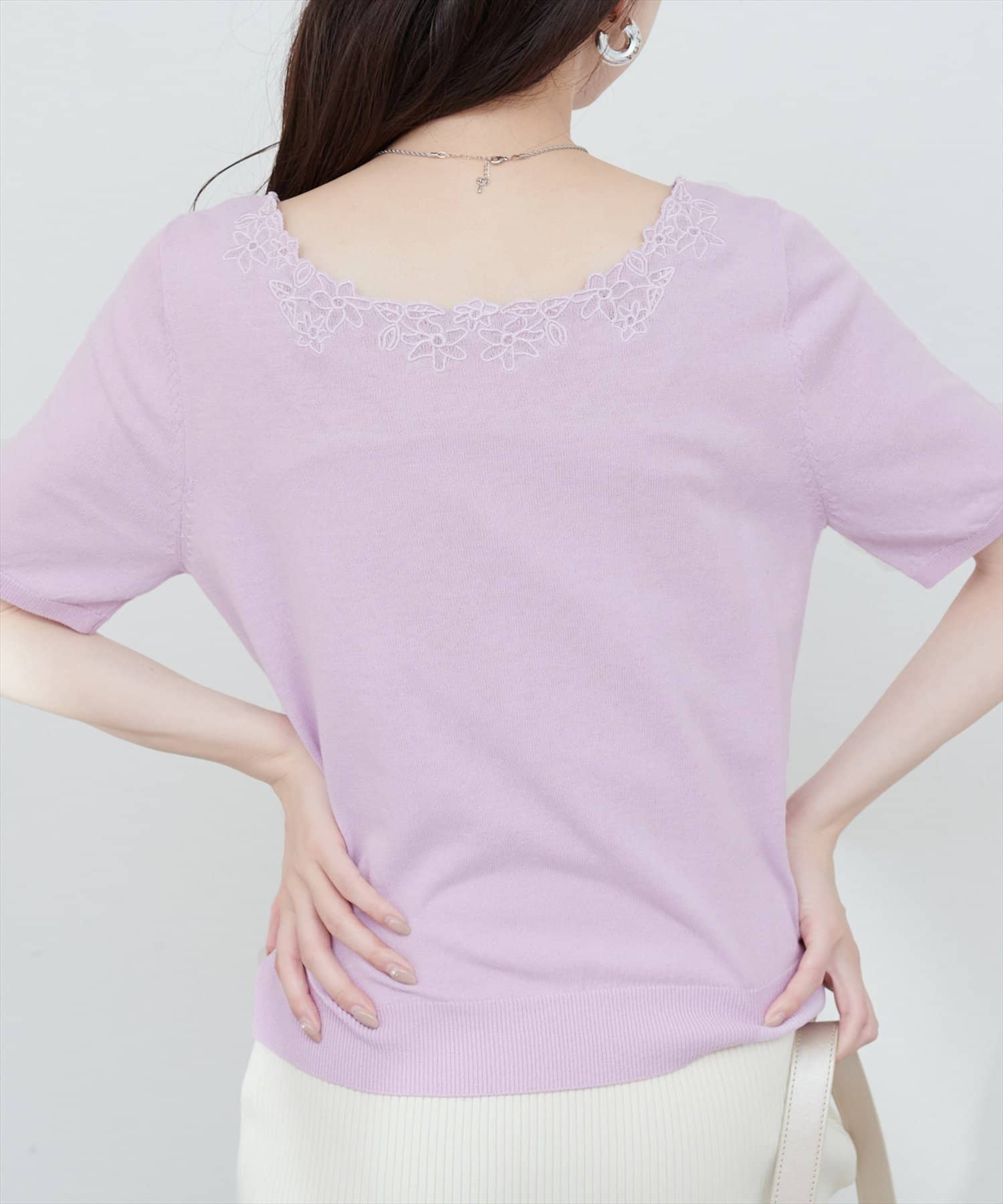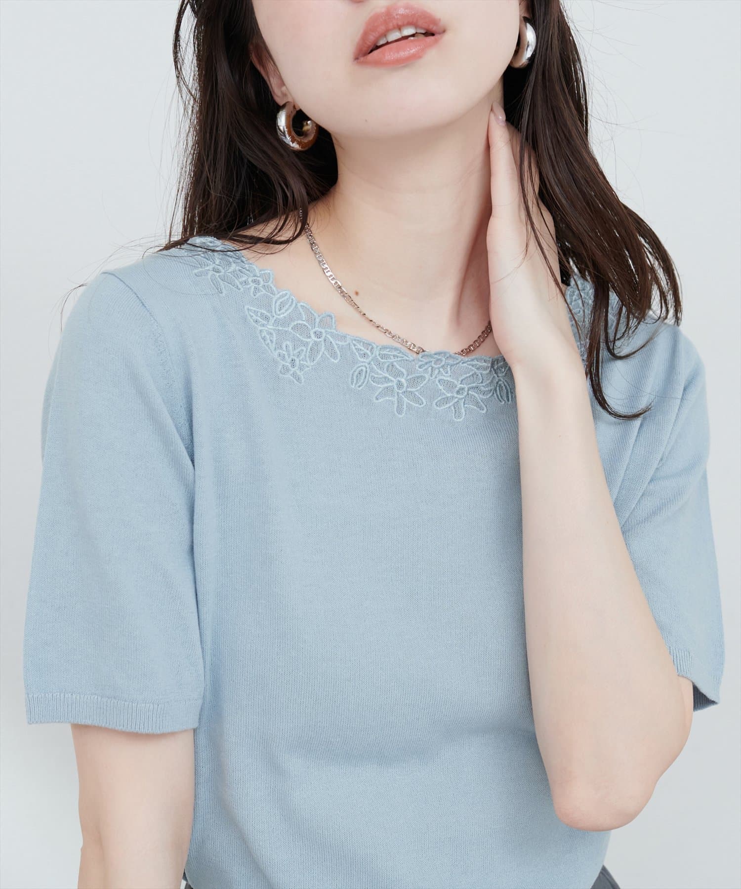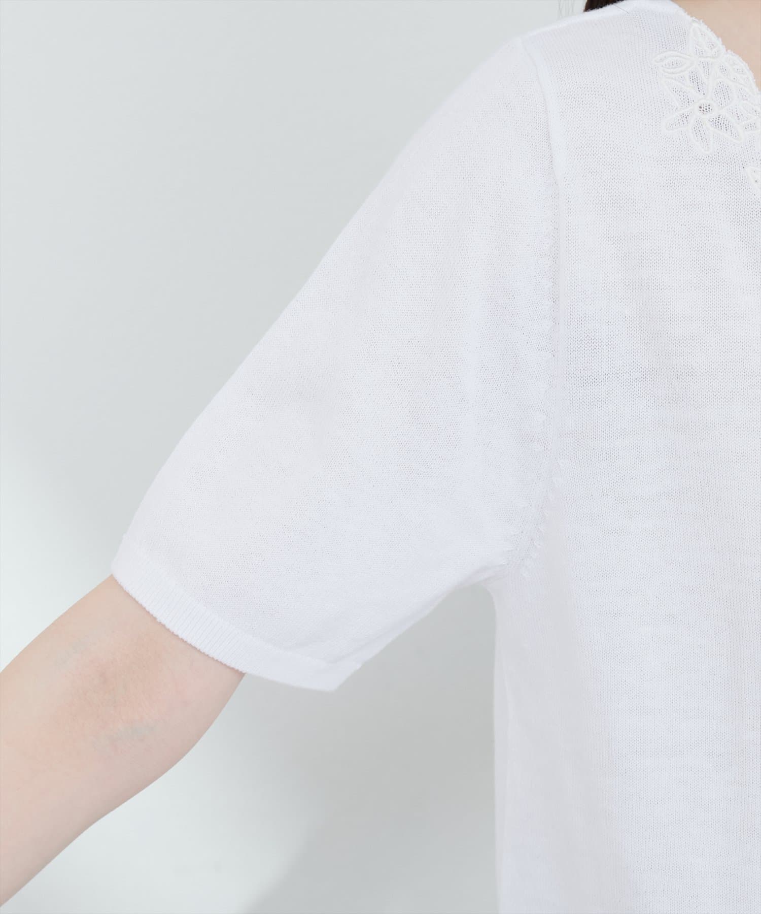 優雅な花刺繍がポイントの前後2WAYで着回し自在なニットプルオーバー。