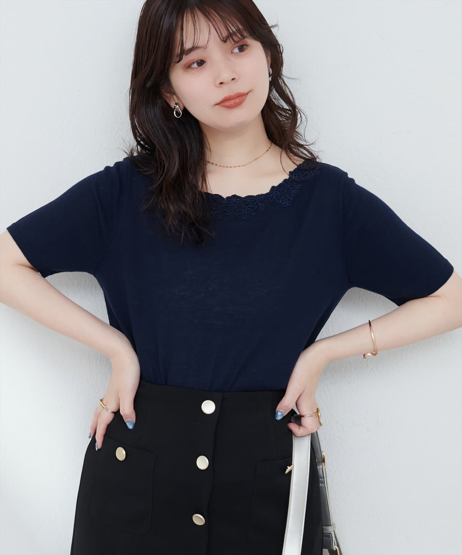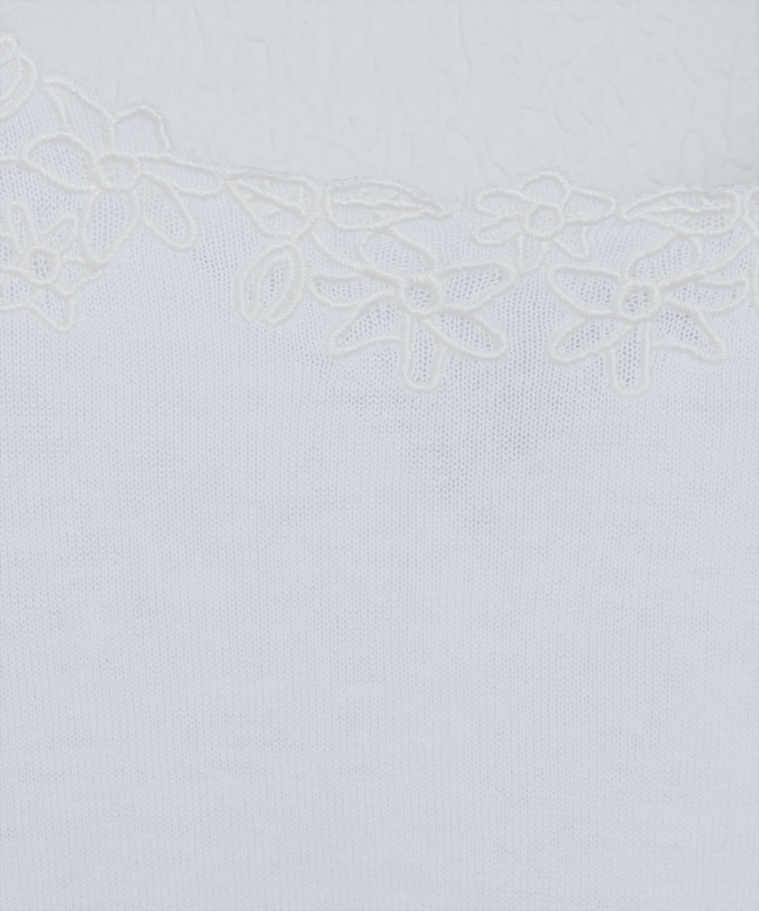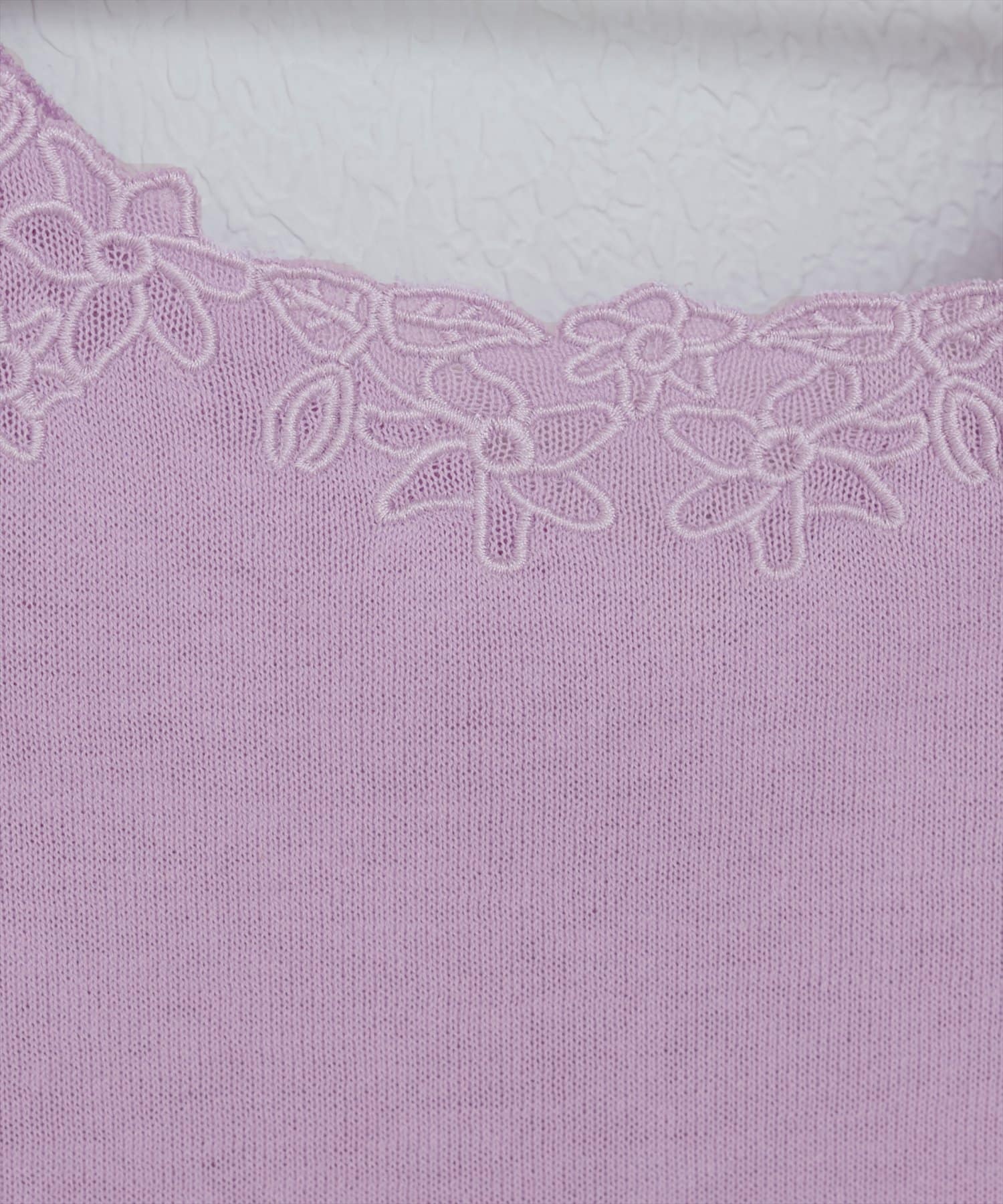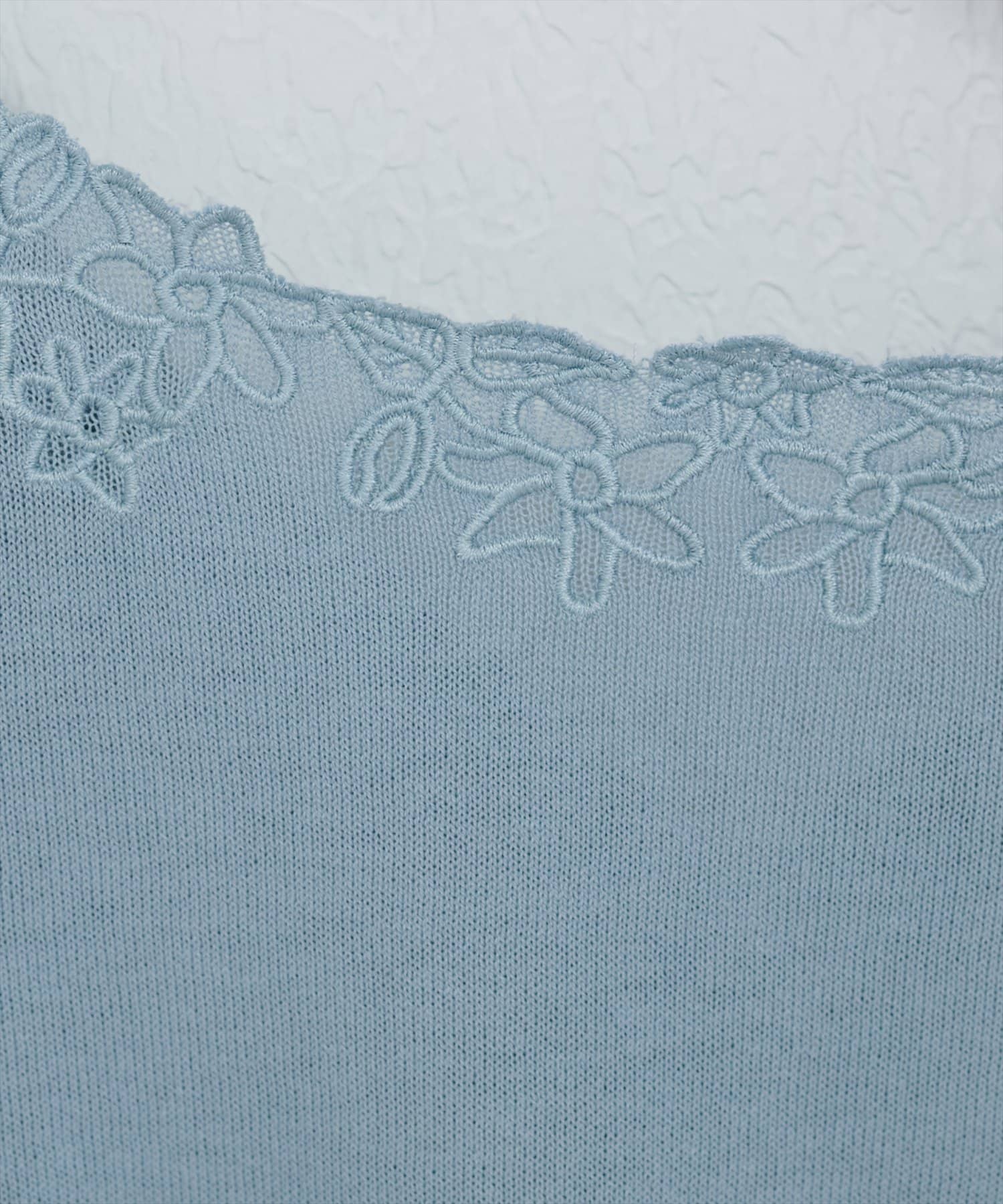 繊細な花柄の刺繍が胸元を彩り、着るだけで女性らしさを引き立ててくれます。