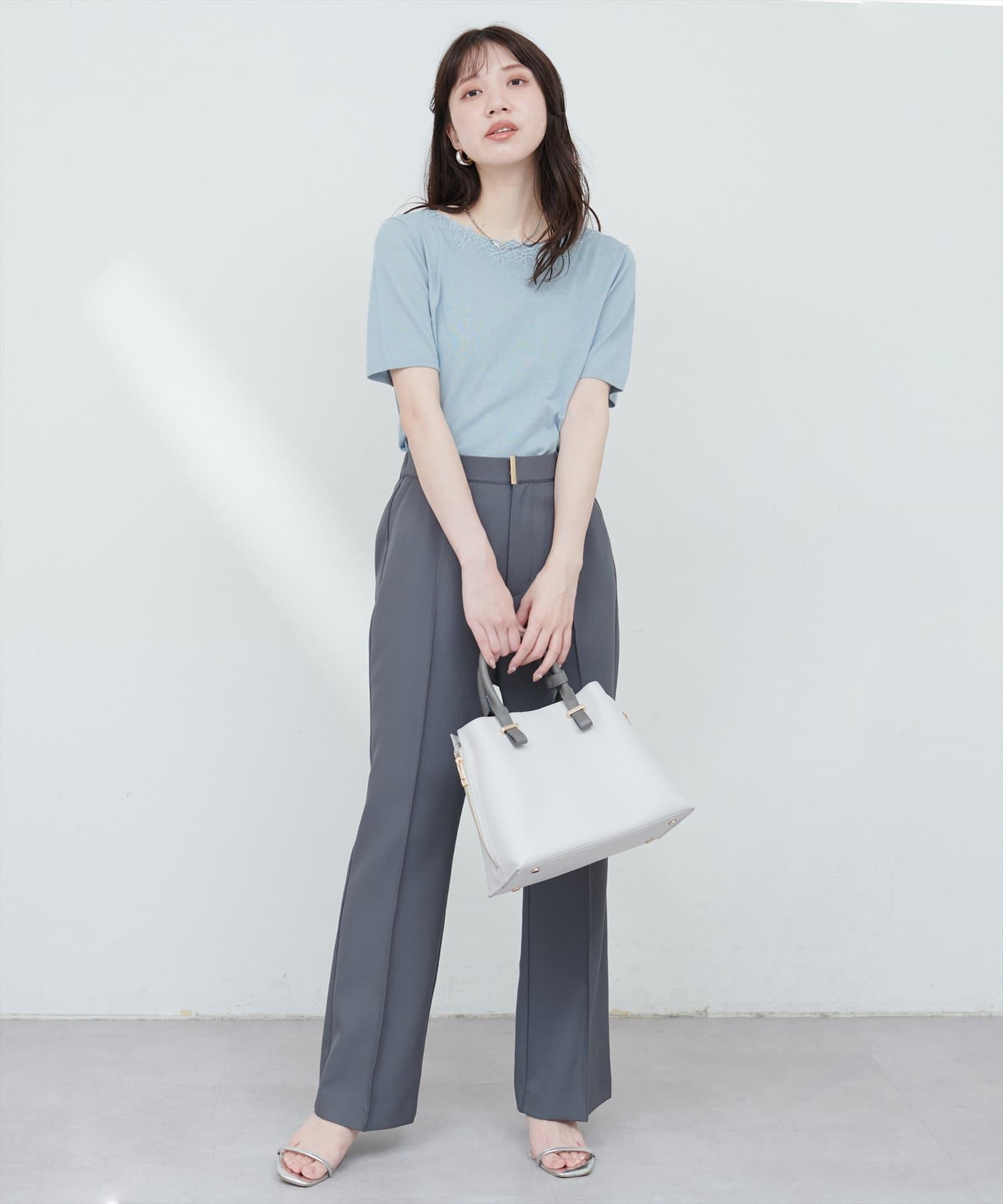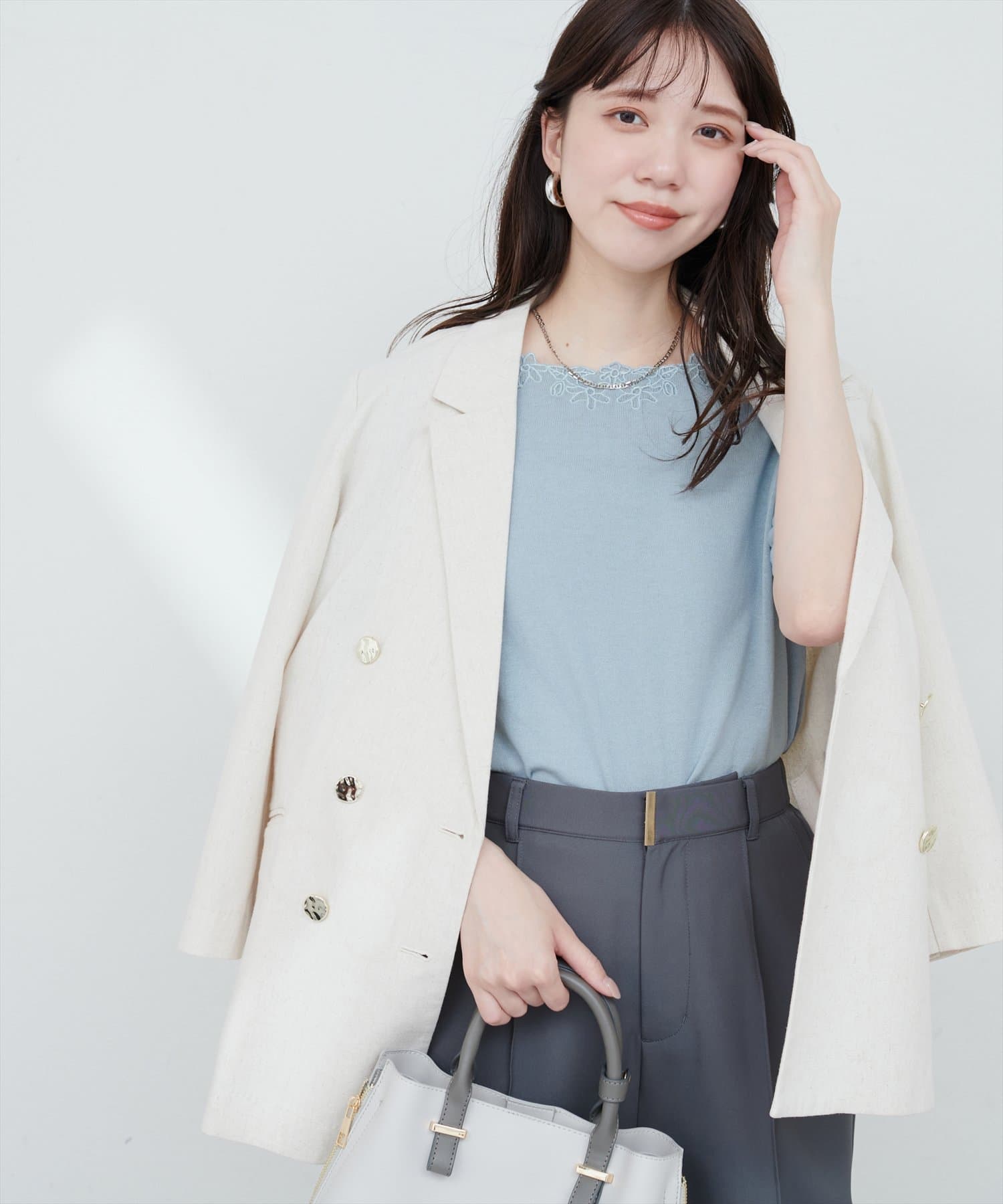 すっきりしたシルエットで、ワイドパンツやフレアスカートとの相性も抜群です。