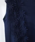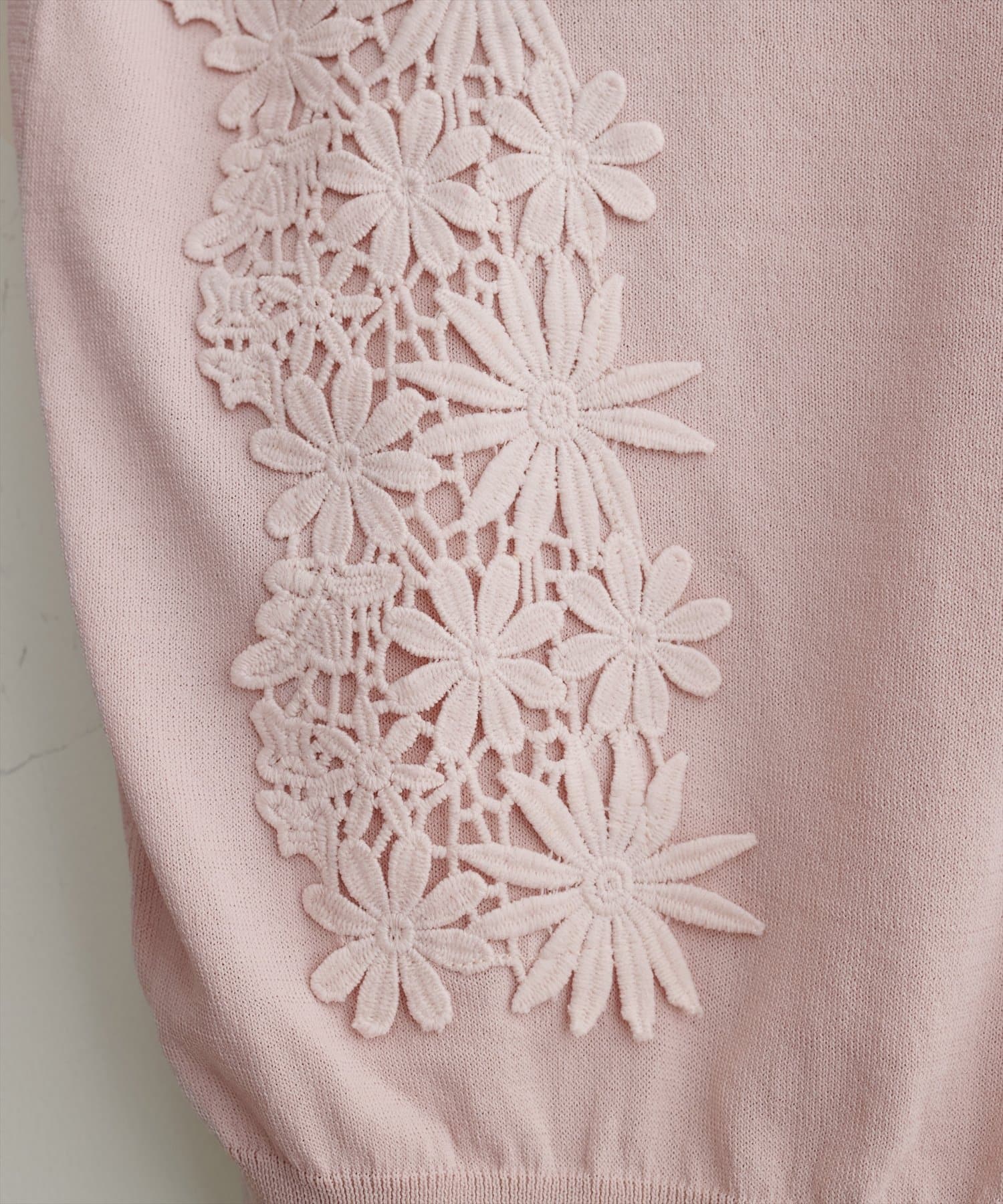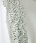 袖口からウエストまでデザインされたレースは縦ラインを強調し、首元が開いていなくてもすっきりした着こなしが叶います。