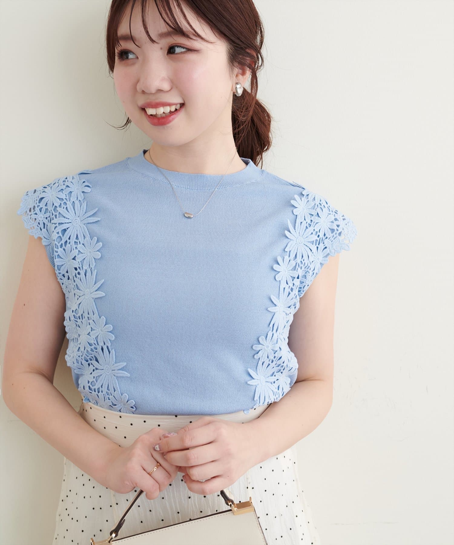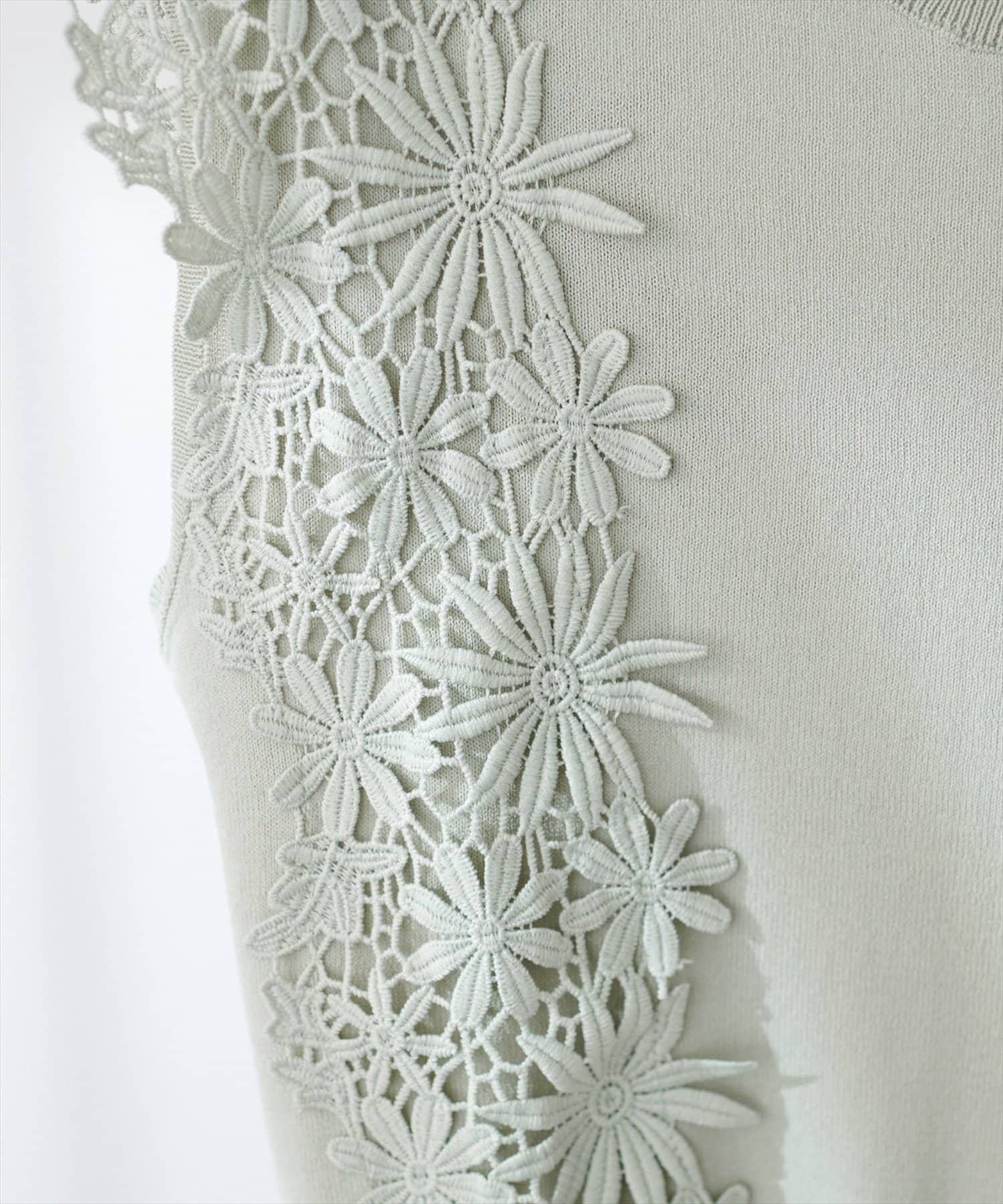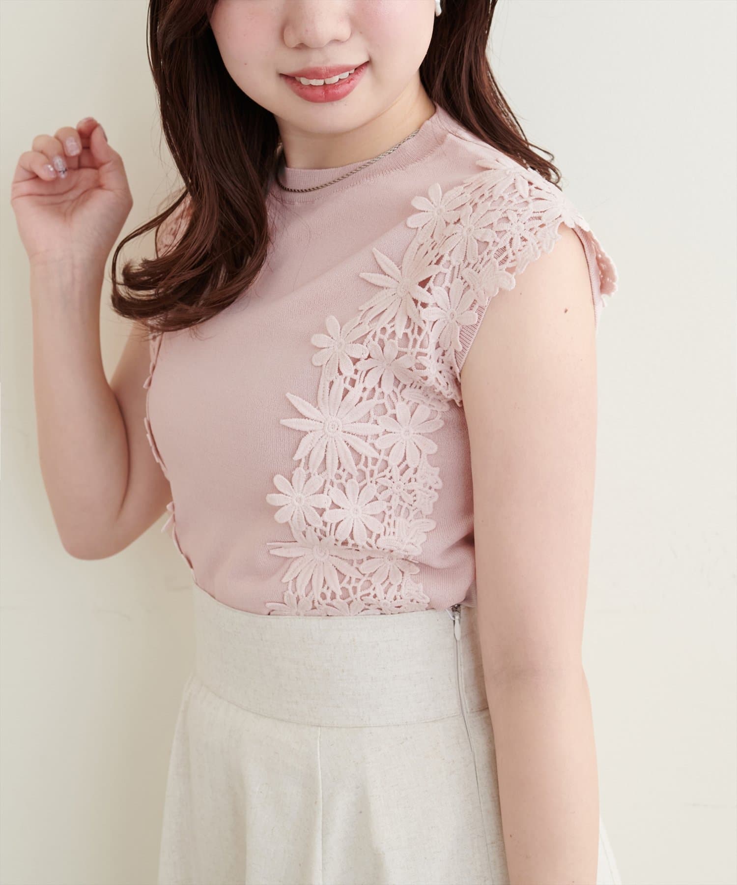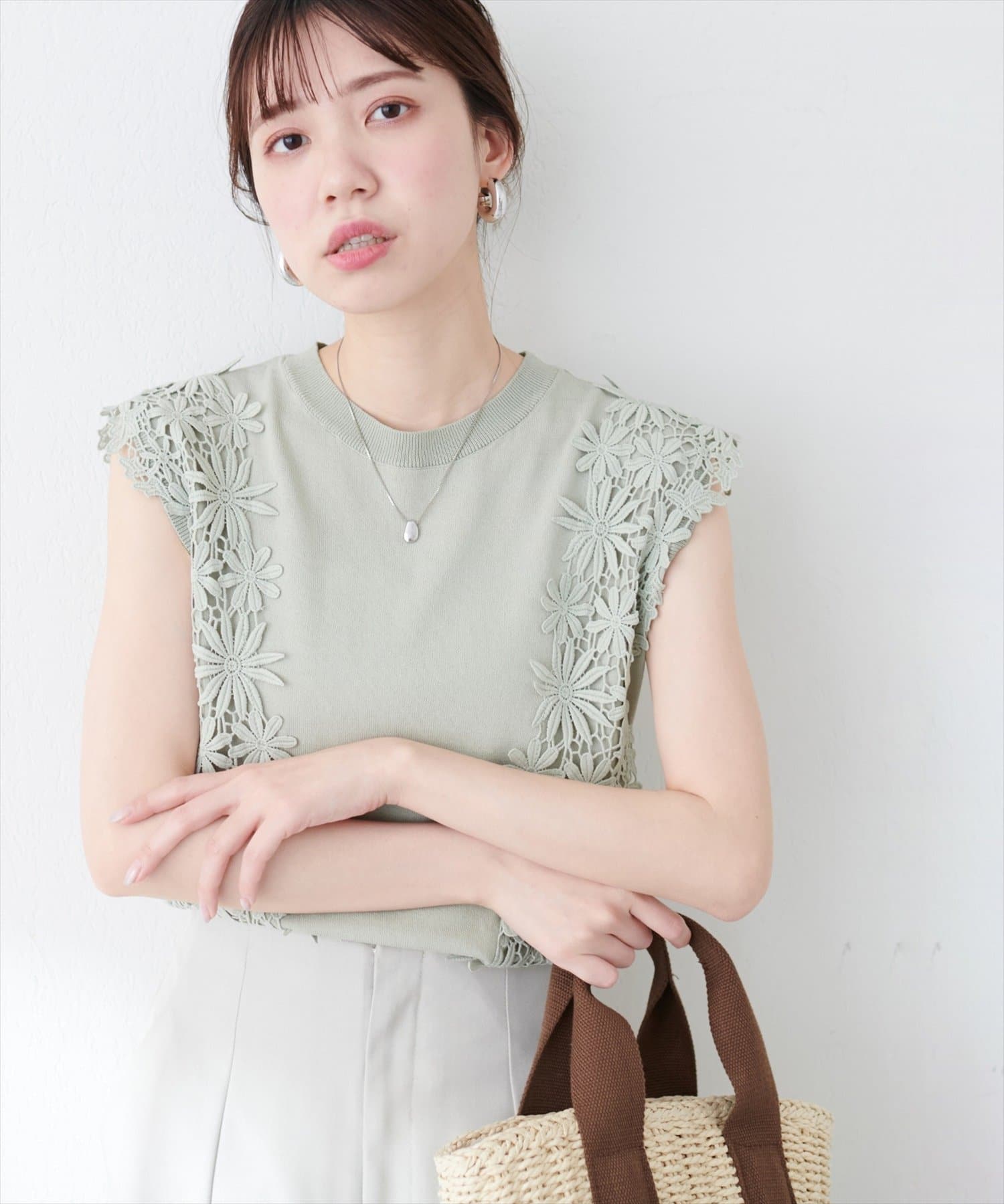 0341050650 canamiレース×ニットコンビノースリTOPS