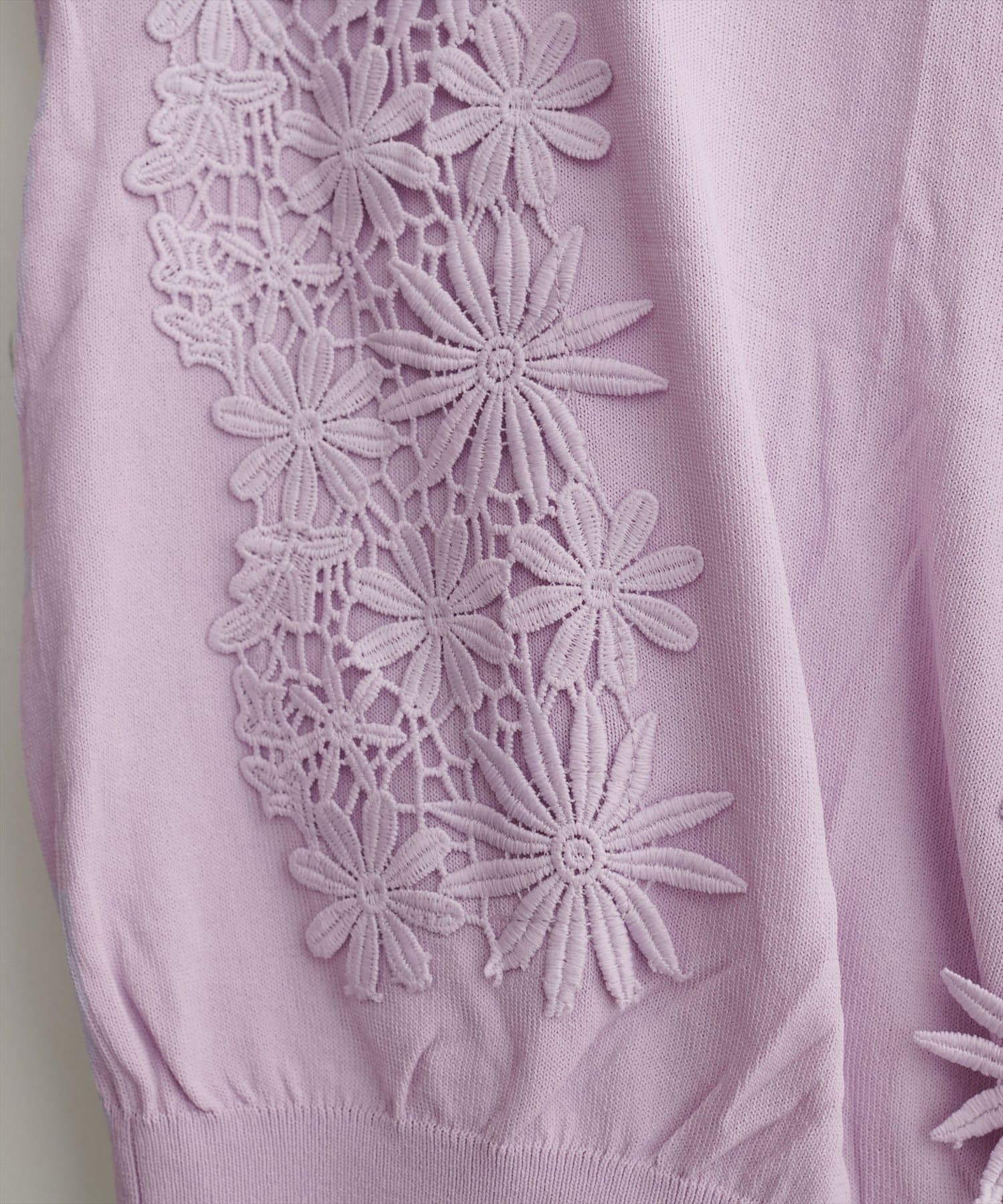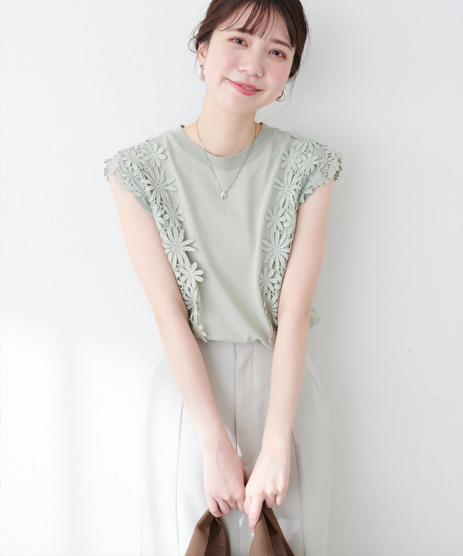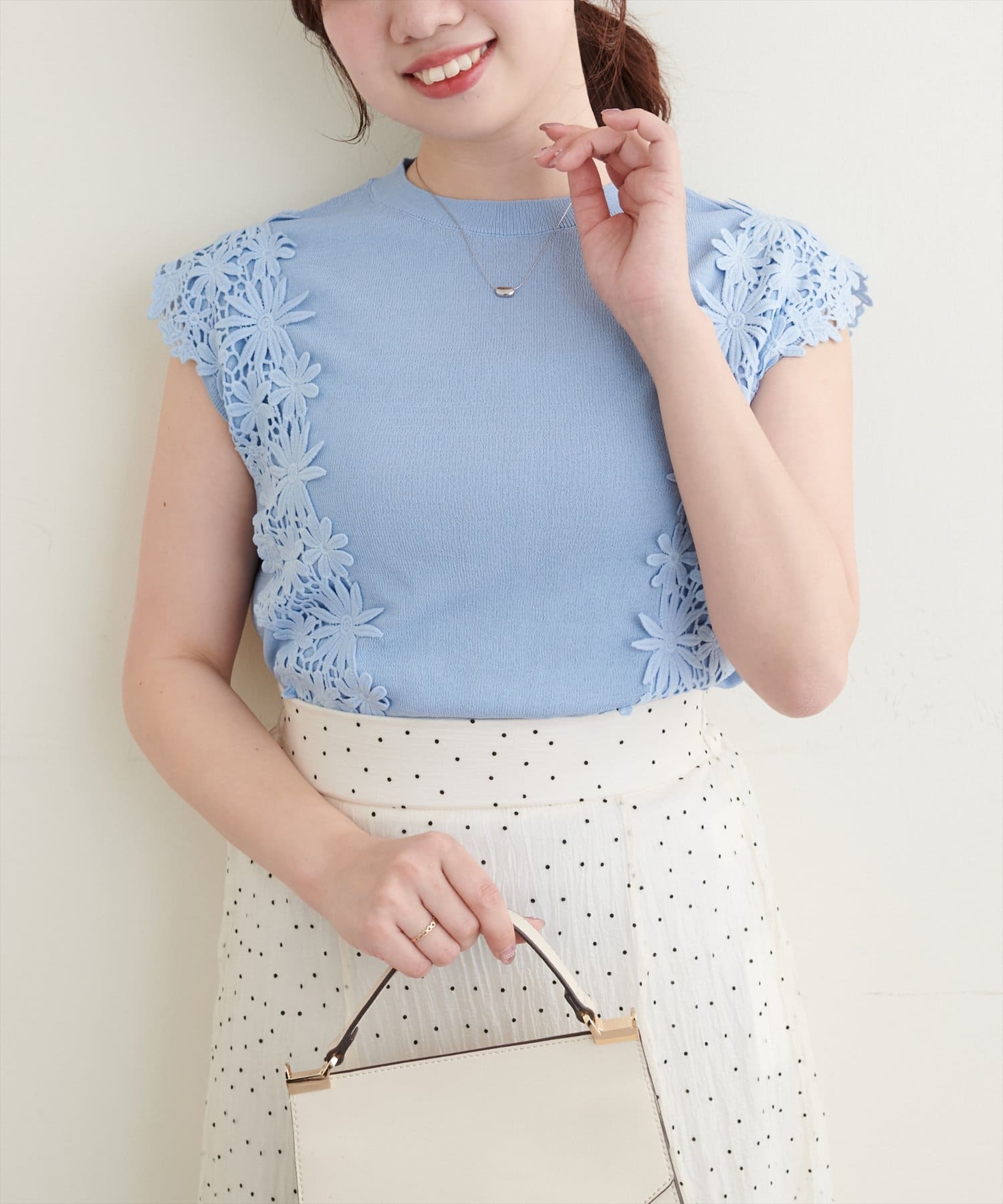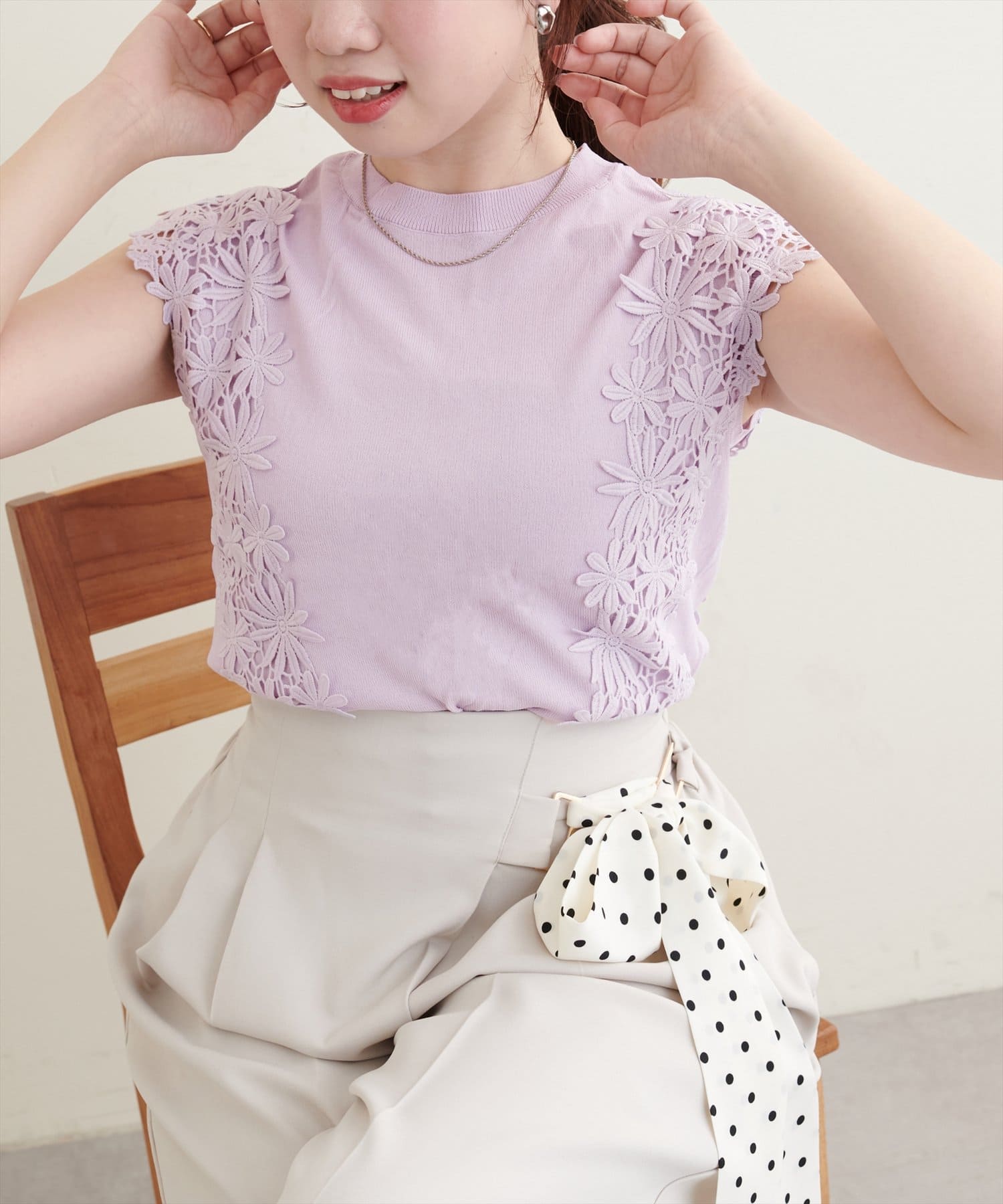 0341050650 canamiレース×ニットコンビノースリTOPS