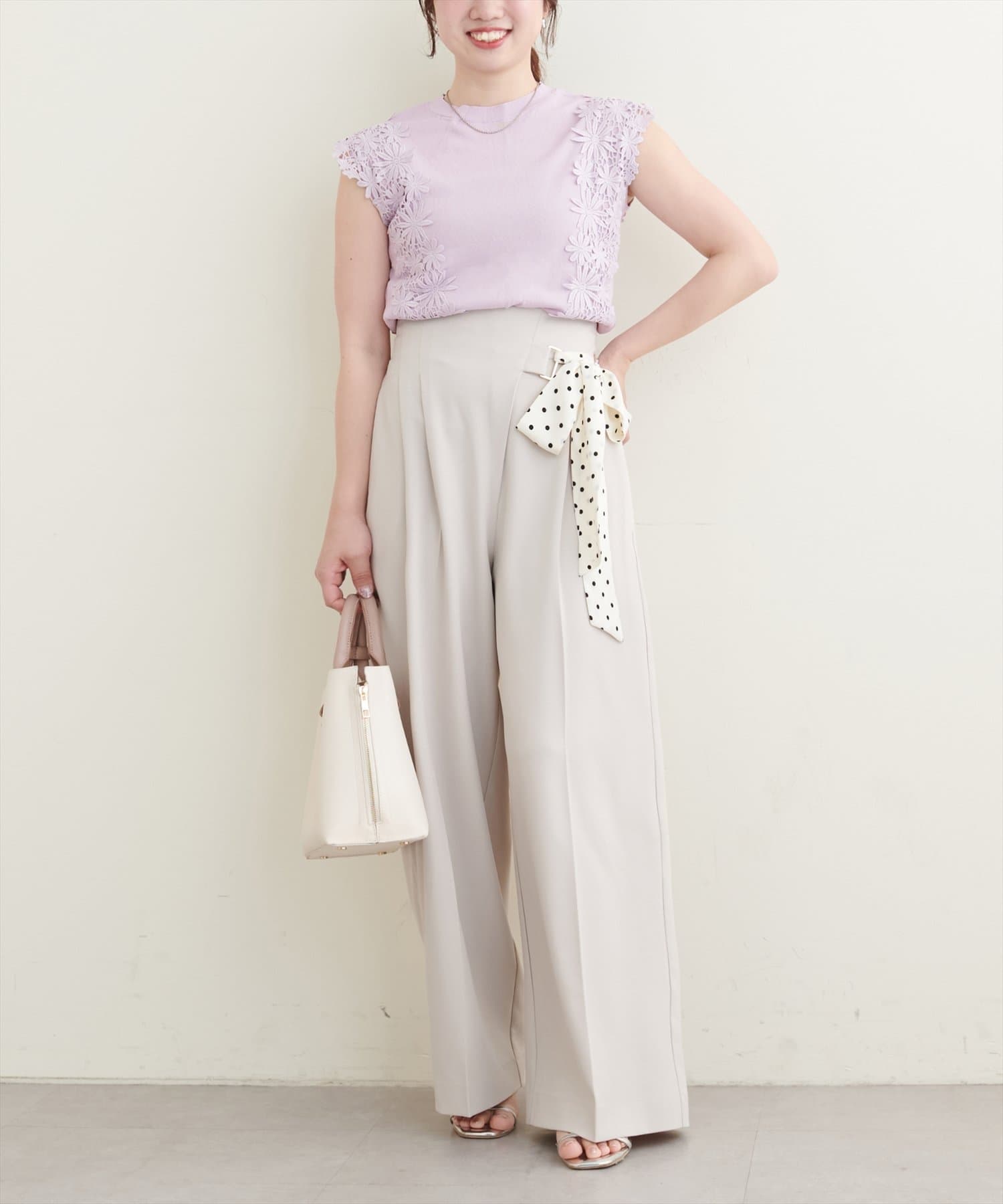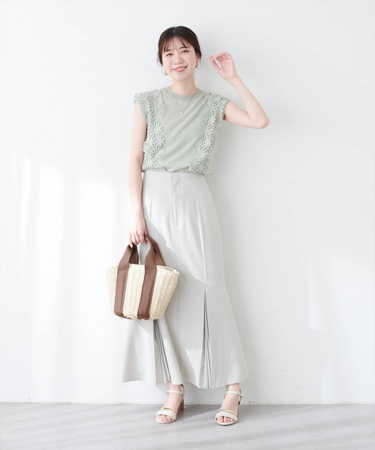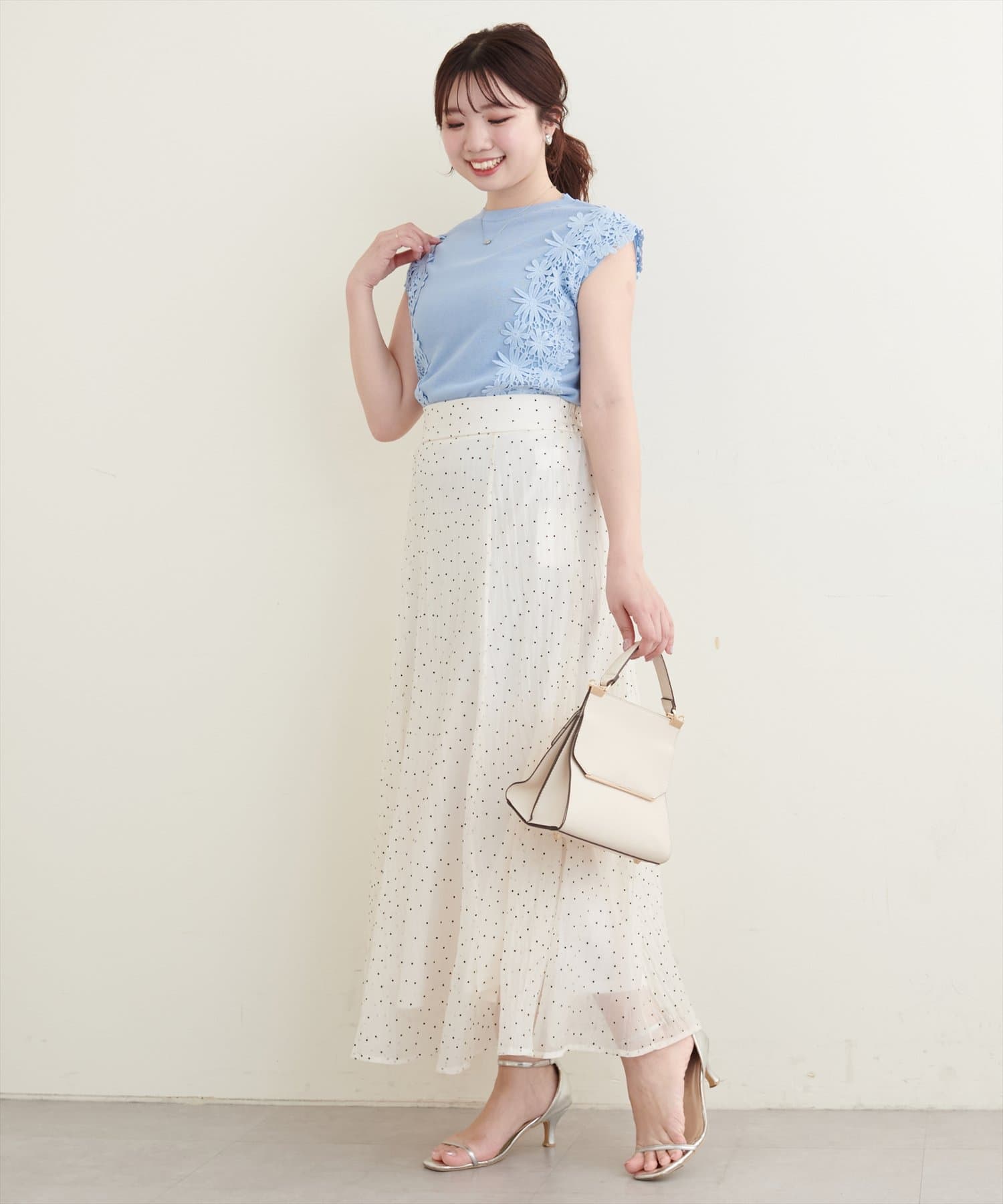 着回し力のある同色レースで甘さを抑えつつ、華やかな印象に。