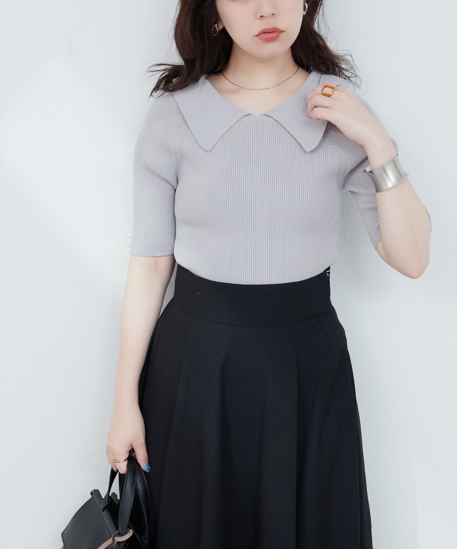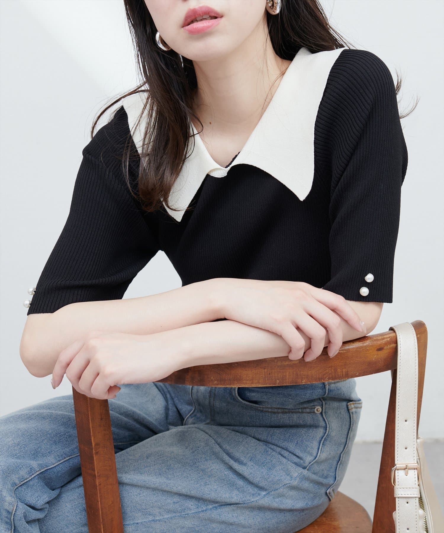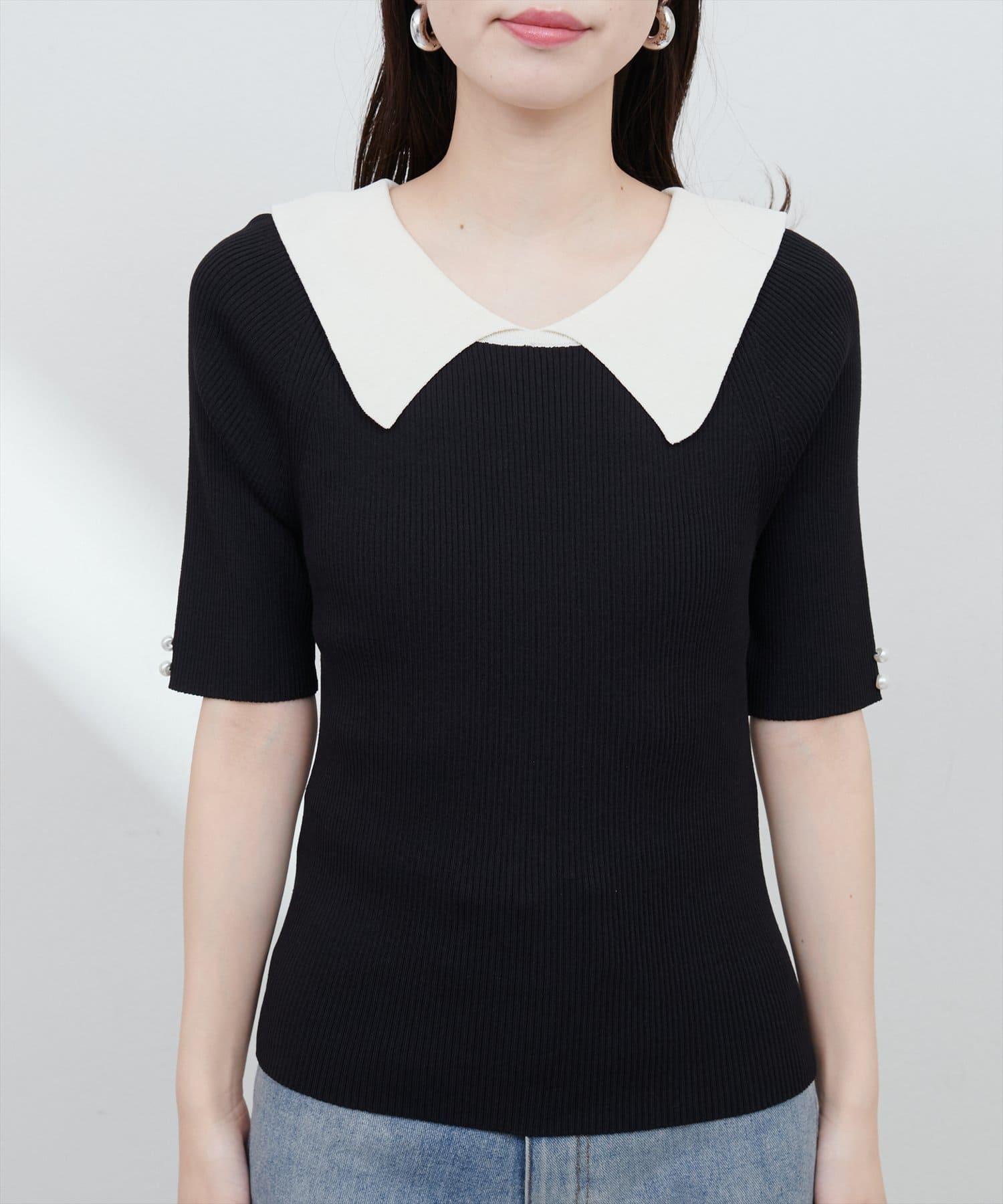 【WEB限定】衿付きシンプルリブニットプルーバー