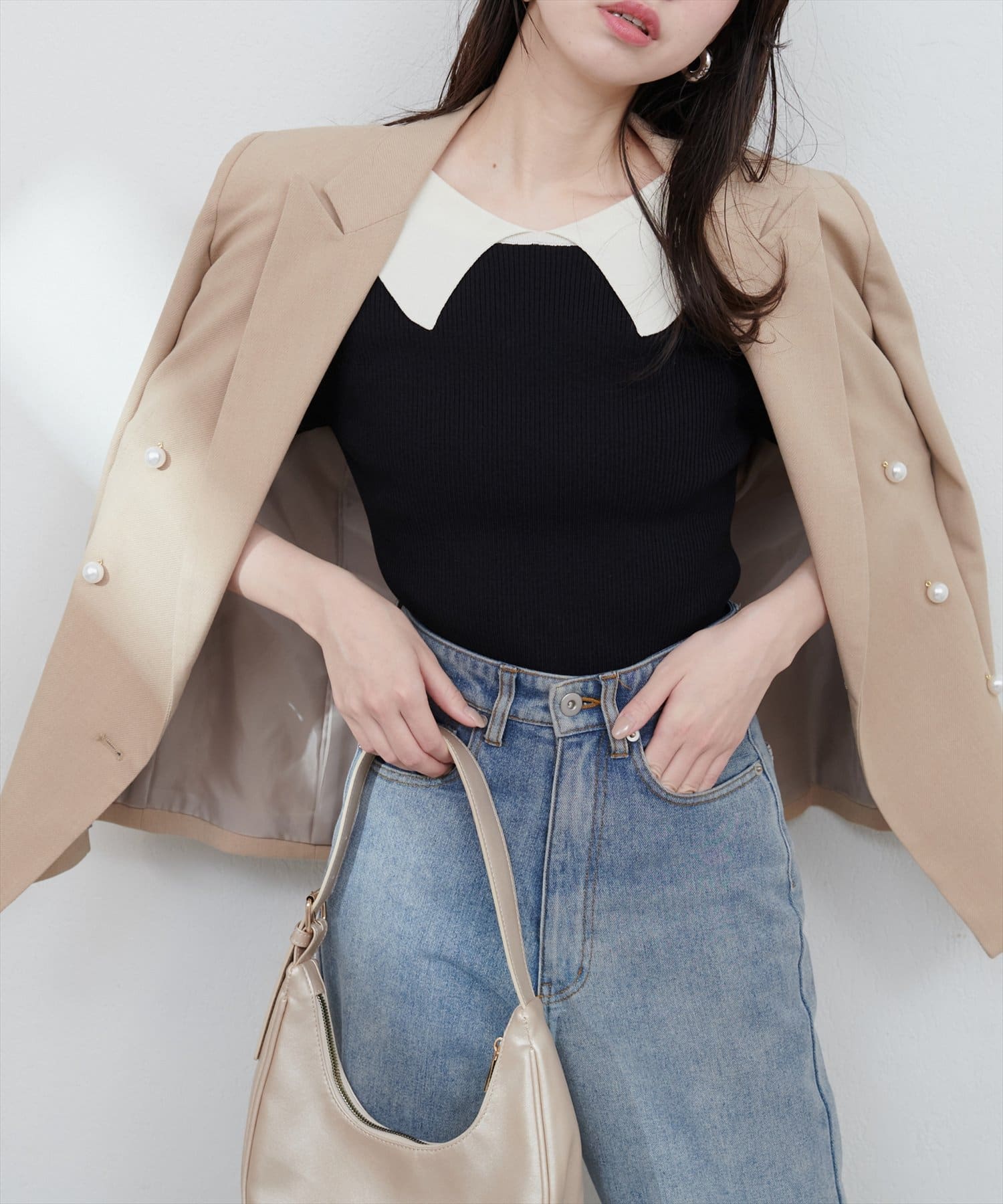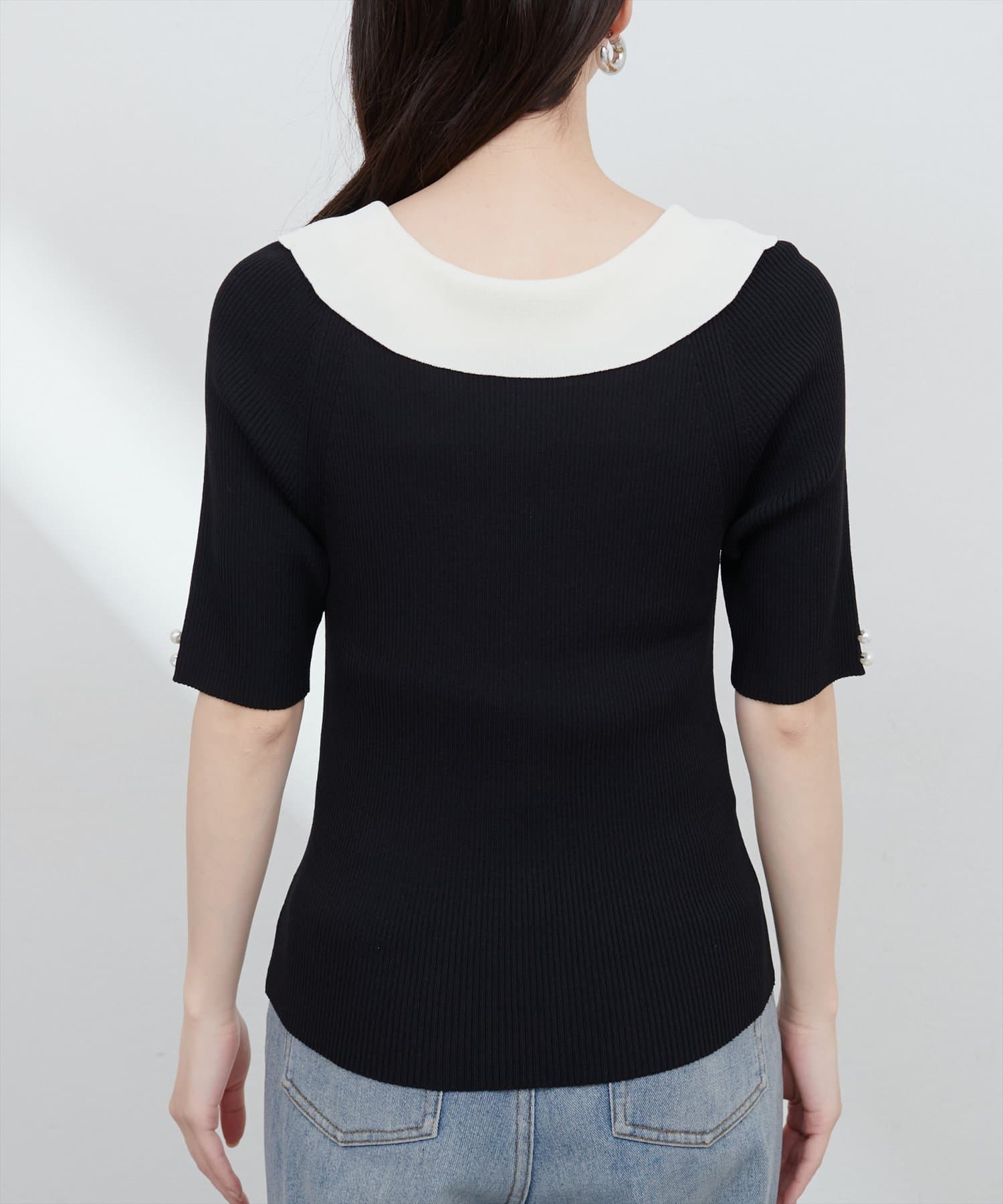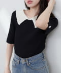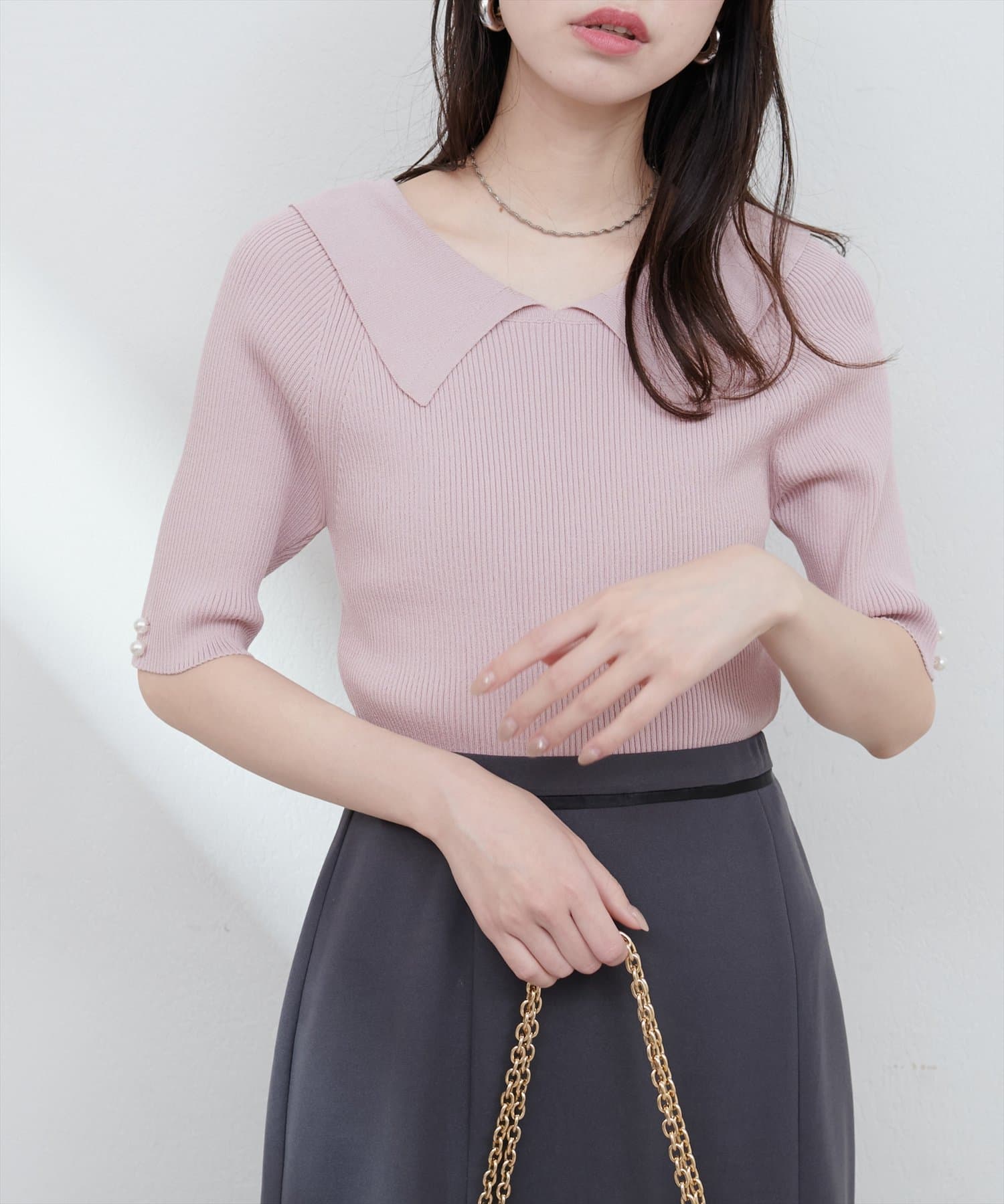 【WEB限定】衿付きシンプルリブニットプルーバー