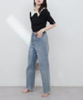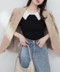 えり付きですが、ネックラインにややゆとりがあるので、カジュアルになりすぎずきれいめにお召頂けます。