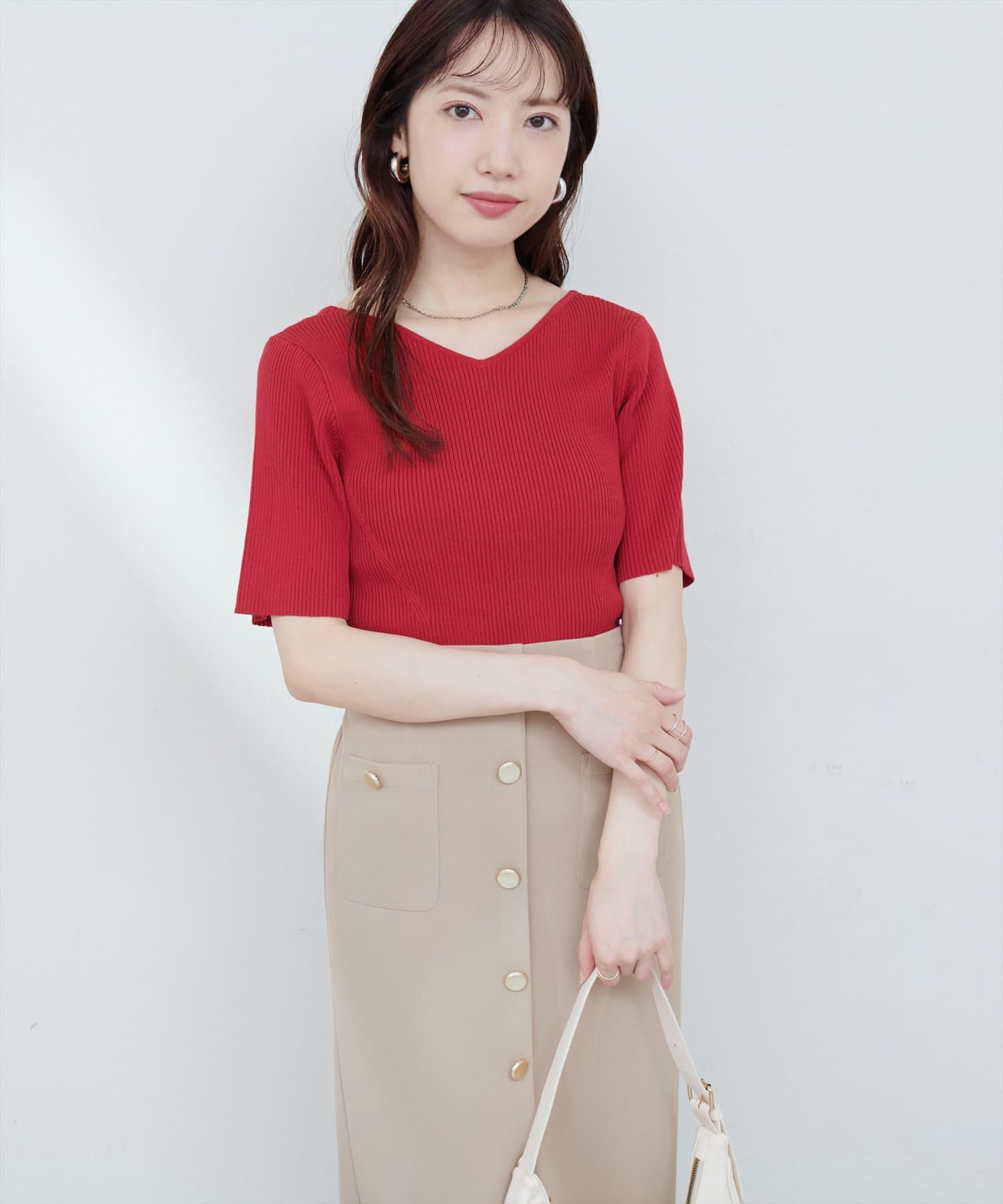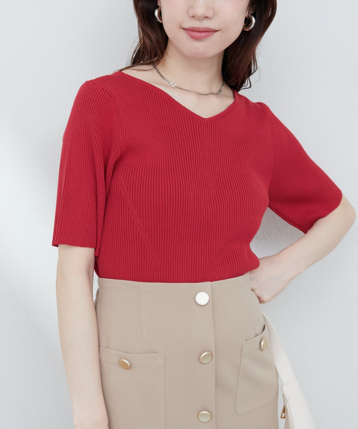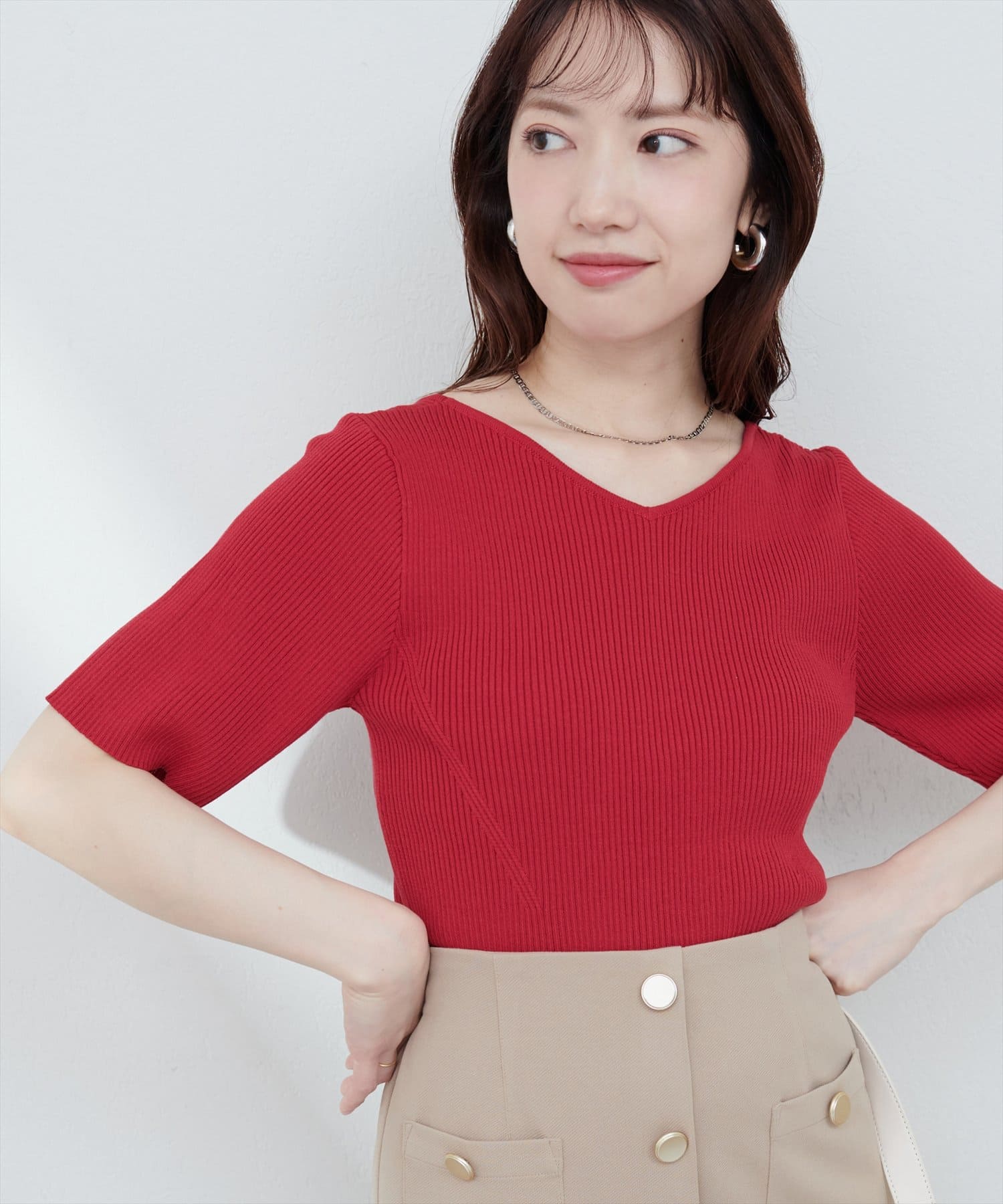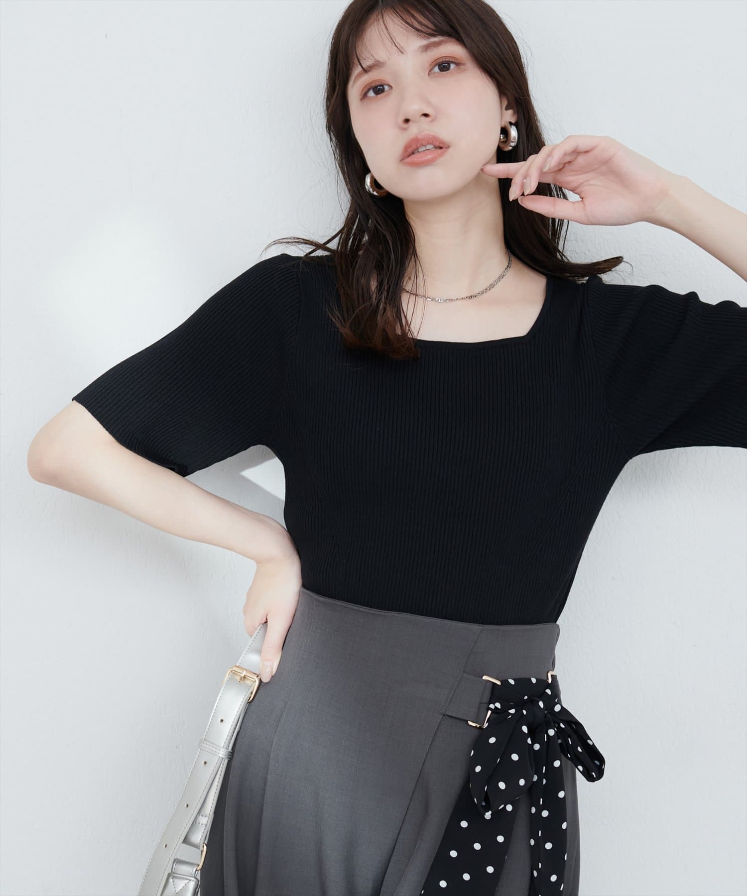 リブニットが苦手な方でも着やすいように身幅を広めにしたり袖の幅もゆとりを持たせ、
