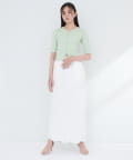 スカートでもパンツでも幅広いアイテムとマッチする1枚持っておくと重宝するトップスです。