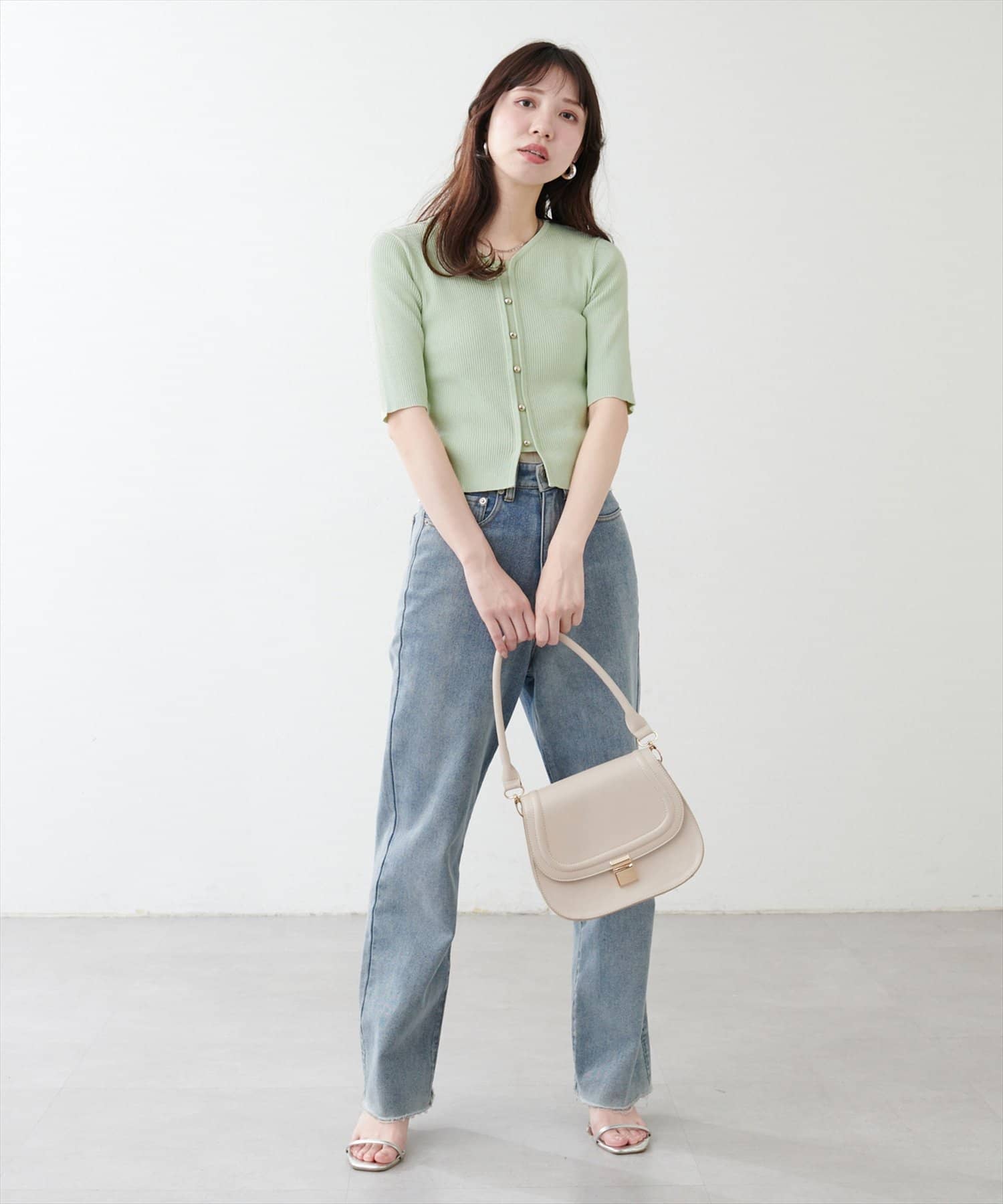 シンプルなデニムにさっと合わせるだけで程良いカジュアルダウンのコーデが決まります。