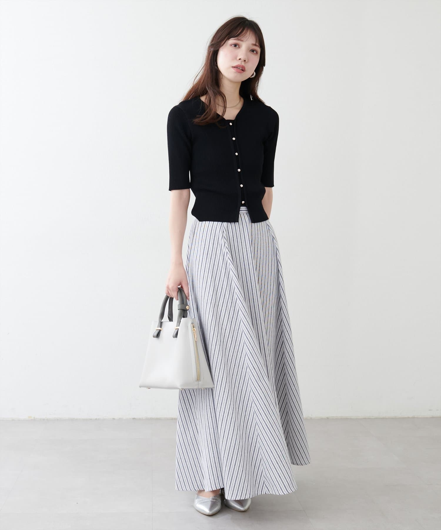 ハイウエストデザインやフレアラインのスカートにウエストアウトで上品な大人レディなコーデに仕上げて頂いたり、