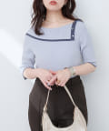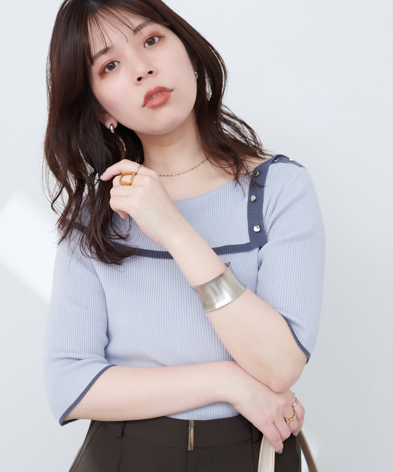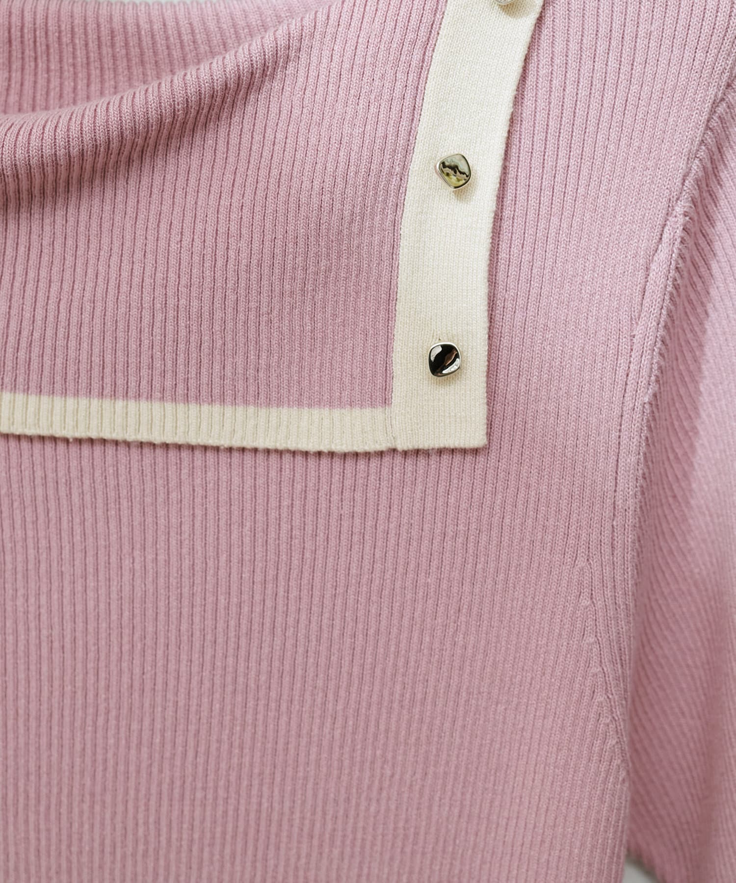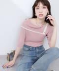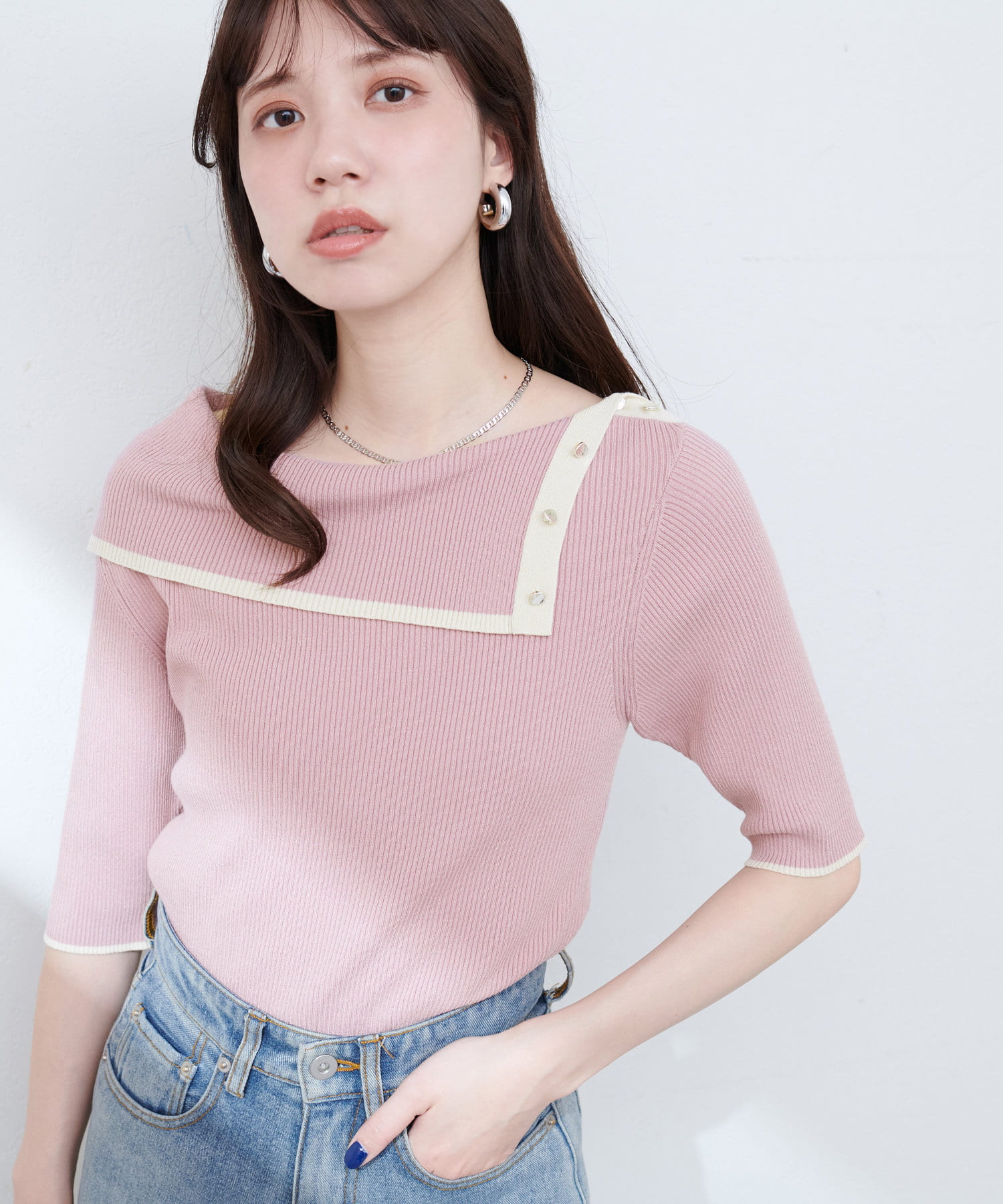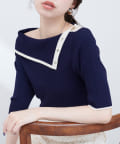 大人の女性らしさを引き立てる、アシメネックデザインのリブニットトップス。
