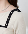 配色ラインのさりげないアクセントで、おしゃれ度をアップし、ボタン装飾で洗練された印象に。