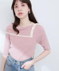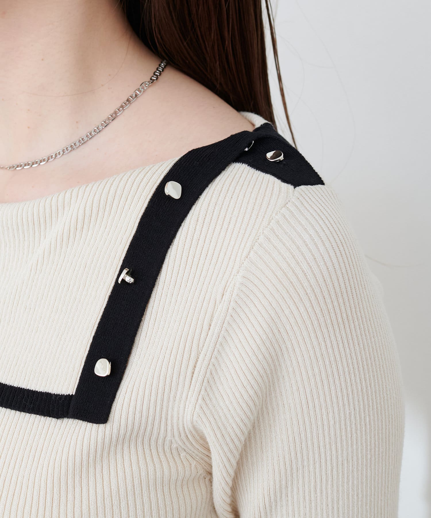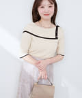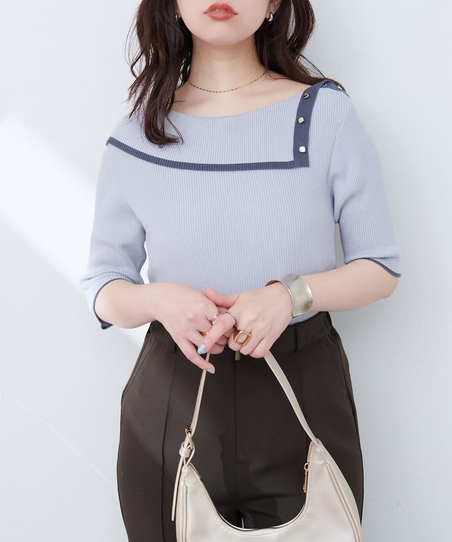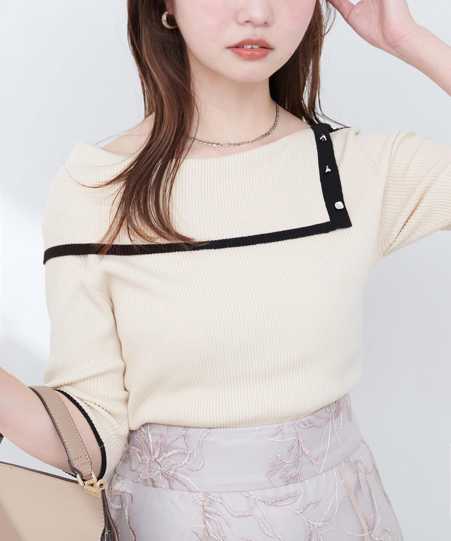 • natural couture(ナチュラルクチュール) 【WEB限定】オフショルアシメネックリブニット