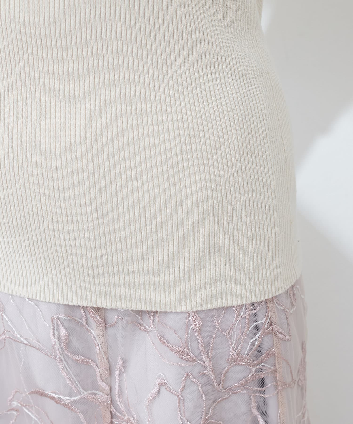 伸縮性のある柔らかなリブニット素材で着心地◎
