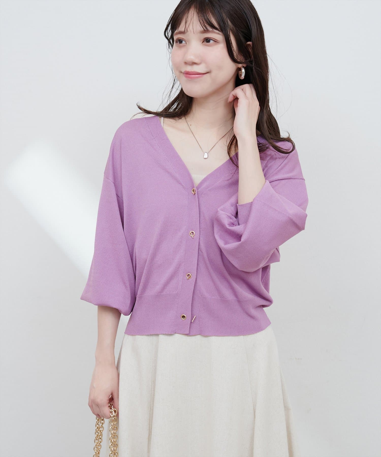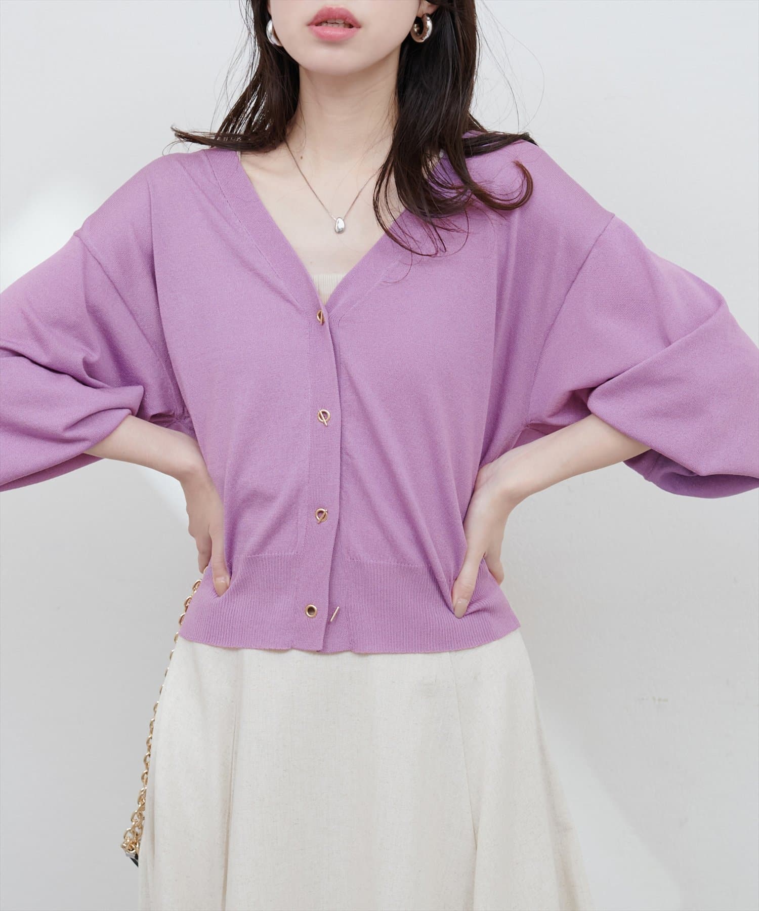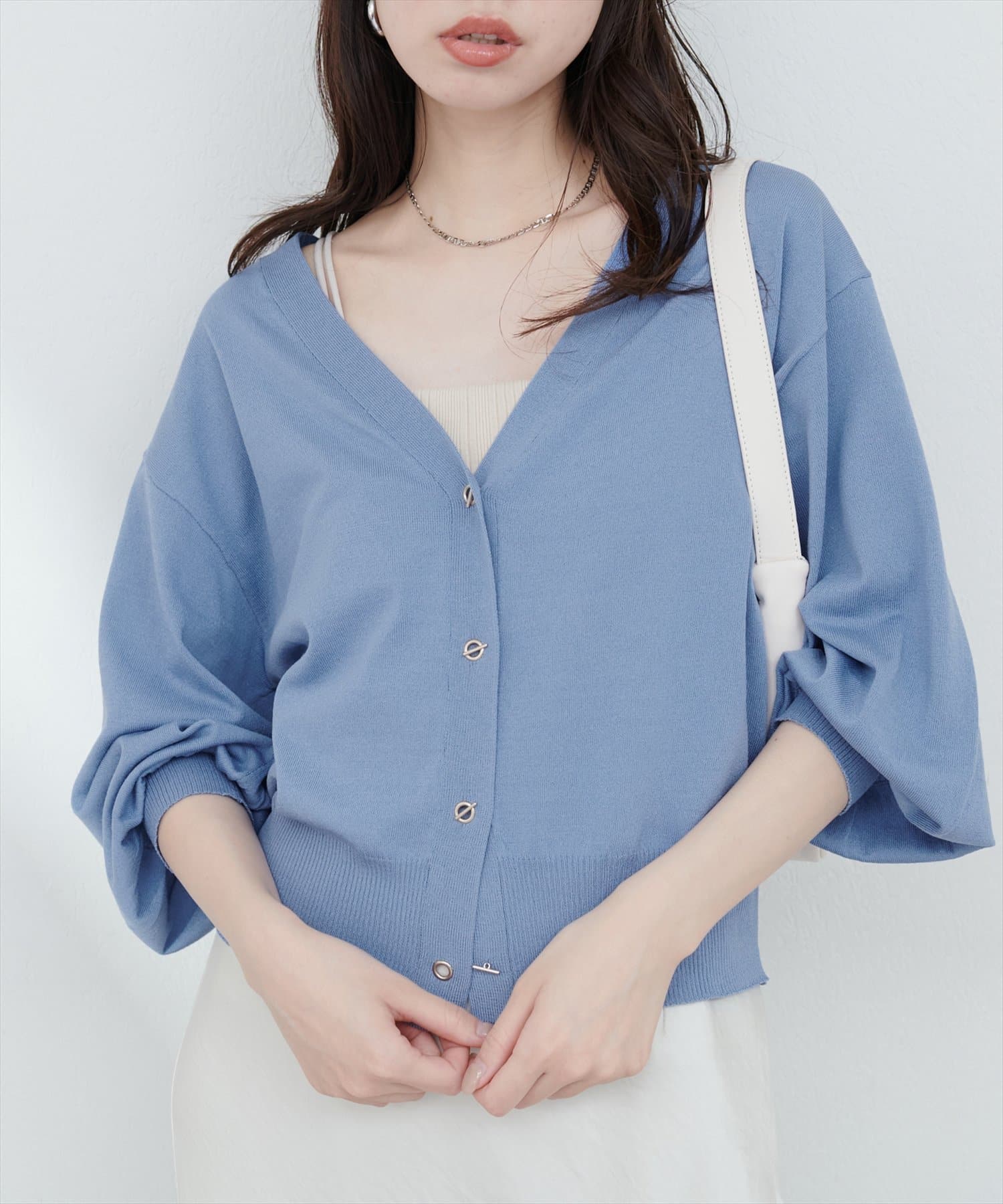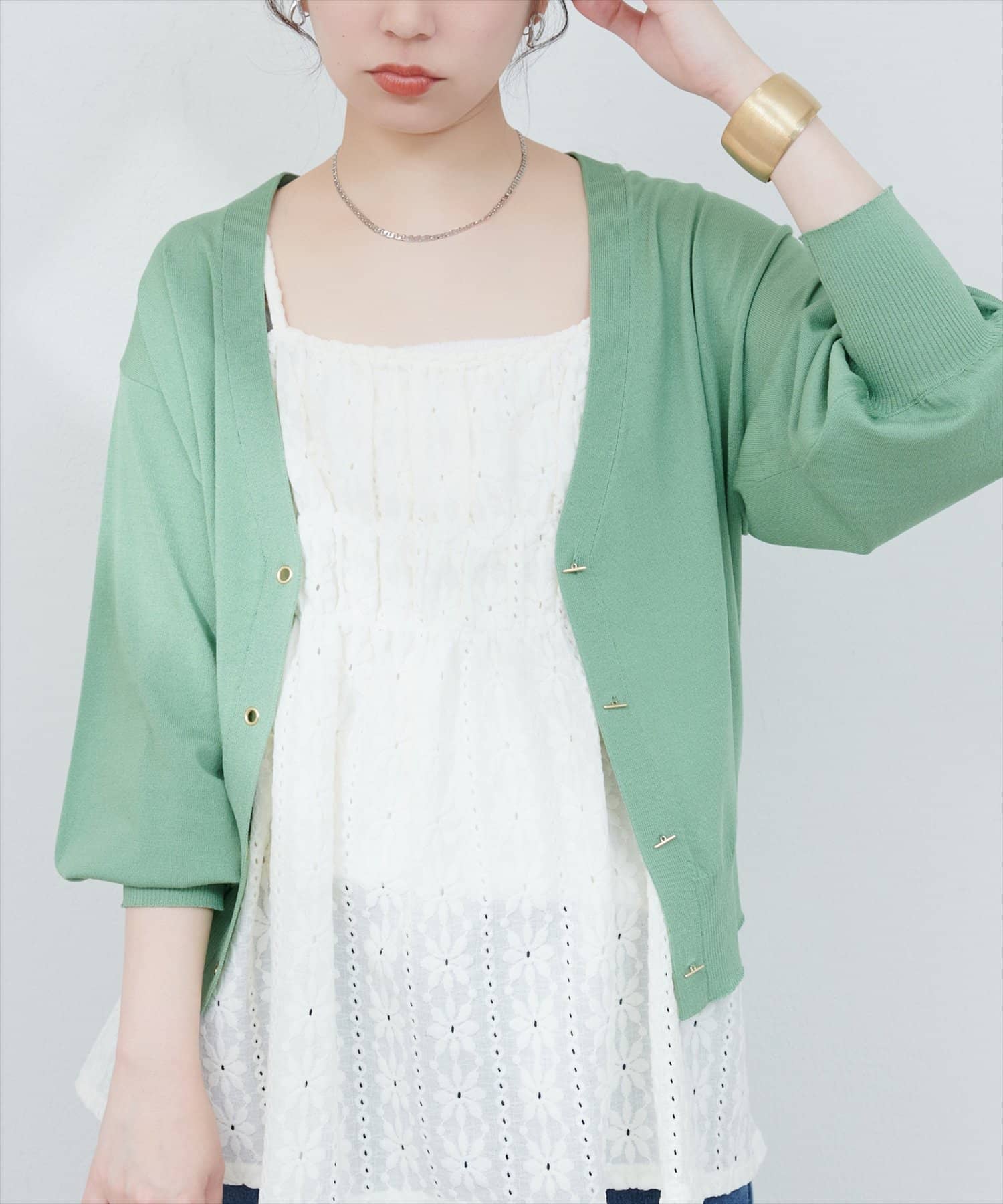 ハトメバー釦カーディガンに春夏バージョンが登場しました。