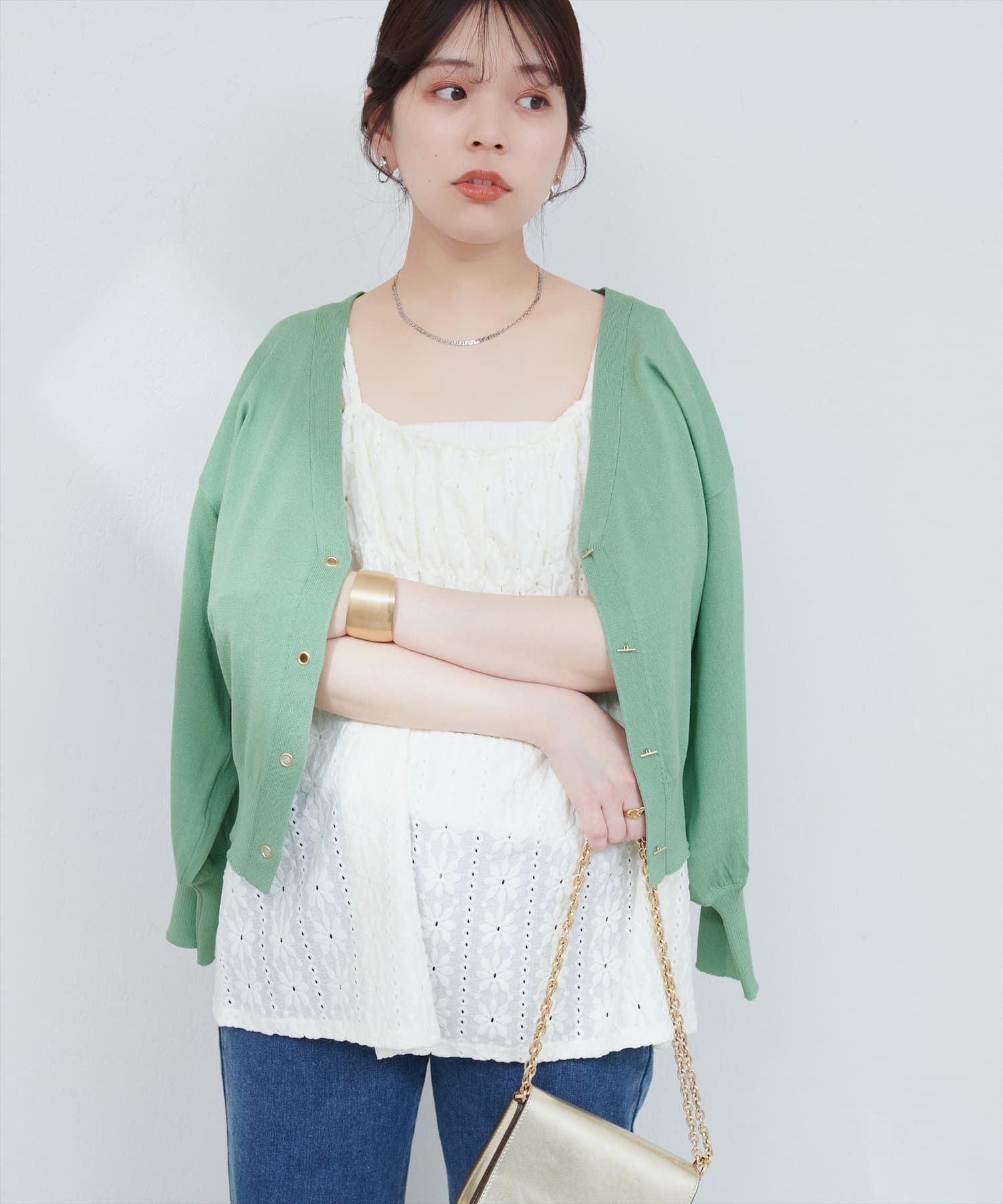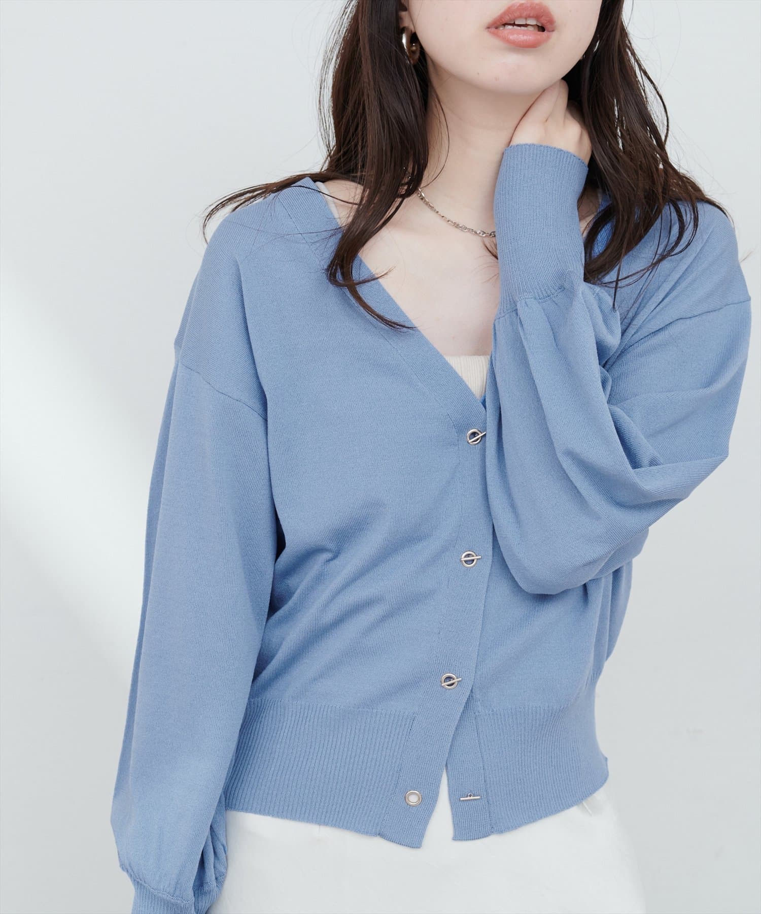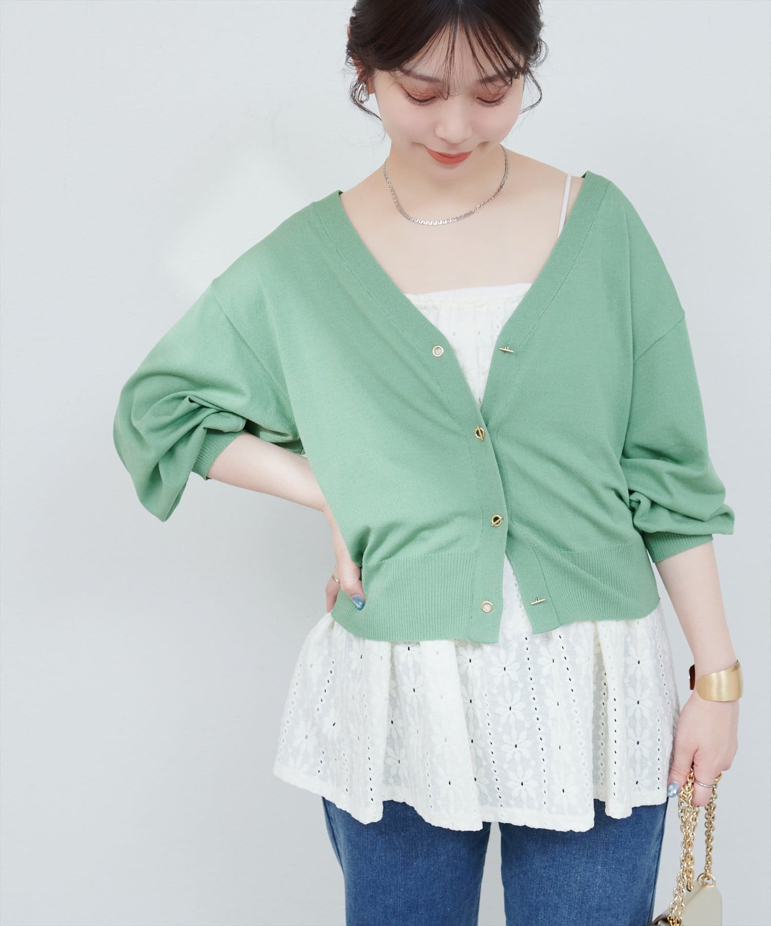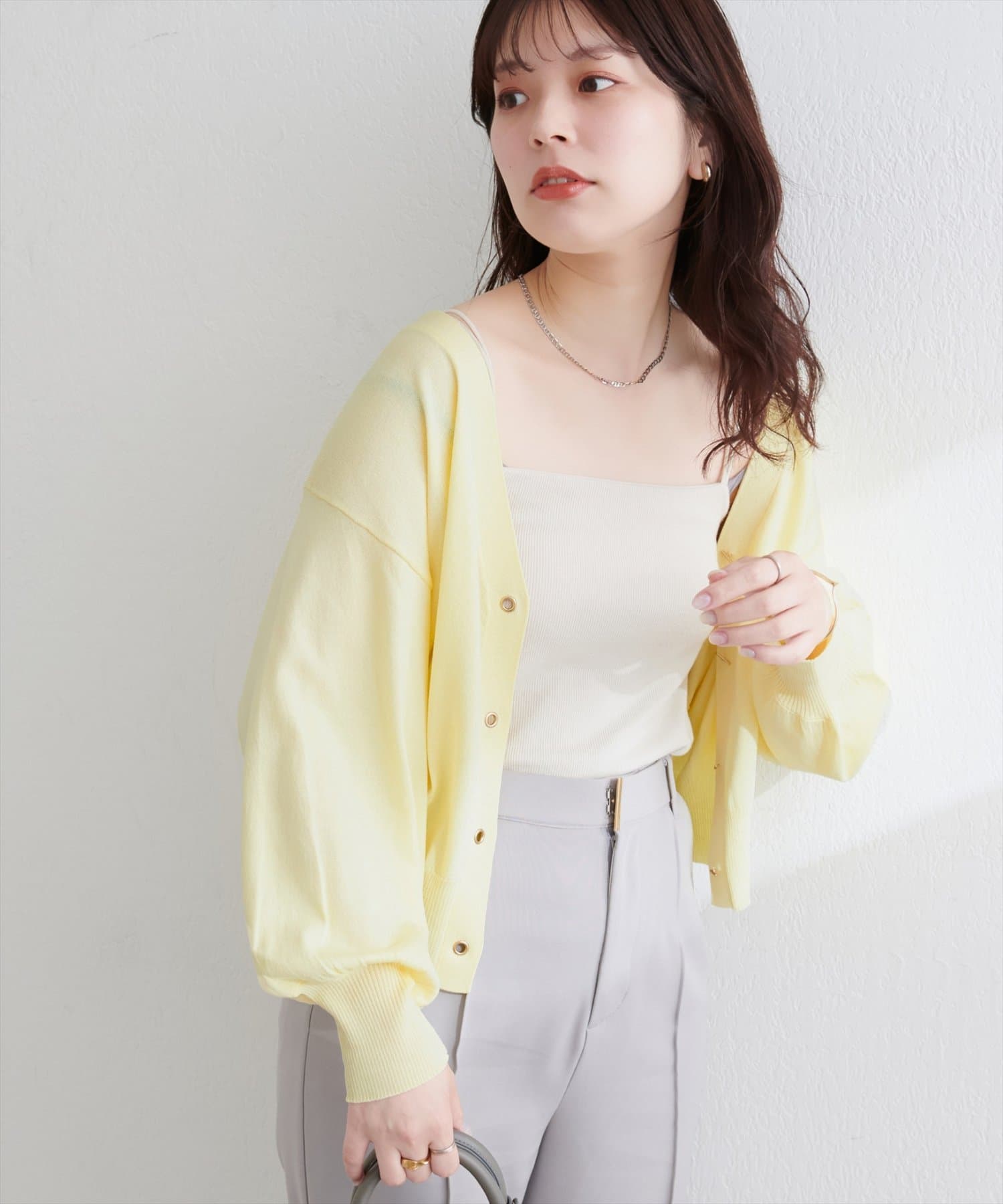 ハトメバー釦カーディガンに春夏バージョンが登場しました。